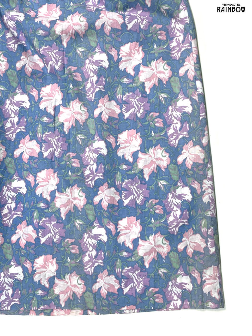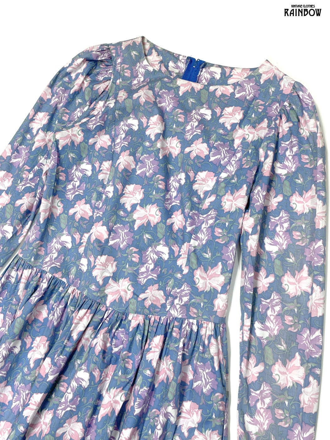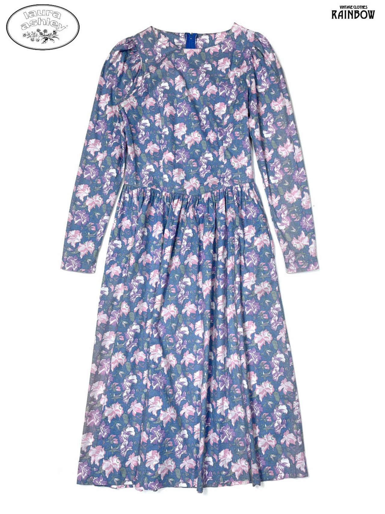 #ワンピース #ロングスリーブ #ロング丈 #ウエスト切り替え #紫 #水色 #花柄 #イギリス製 #ガーリー #コットン #長袖花柄ワンピース