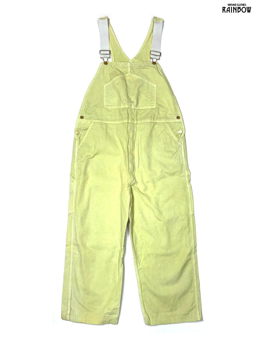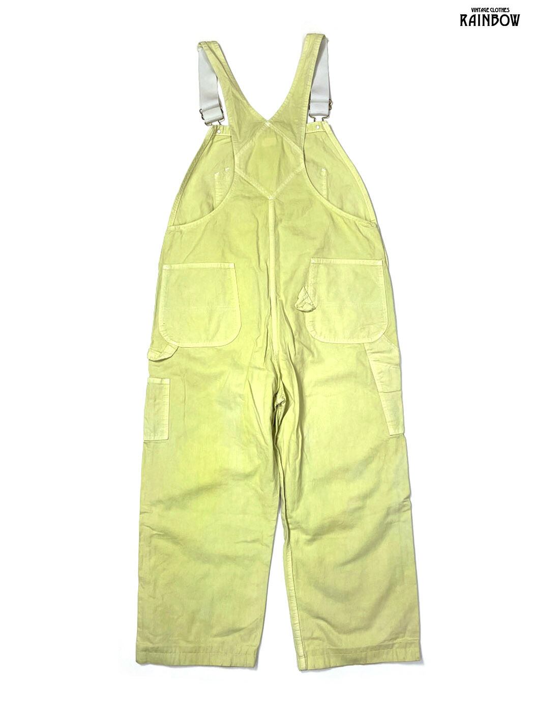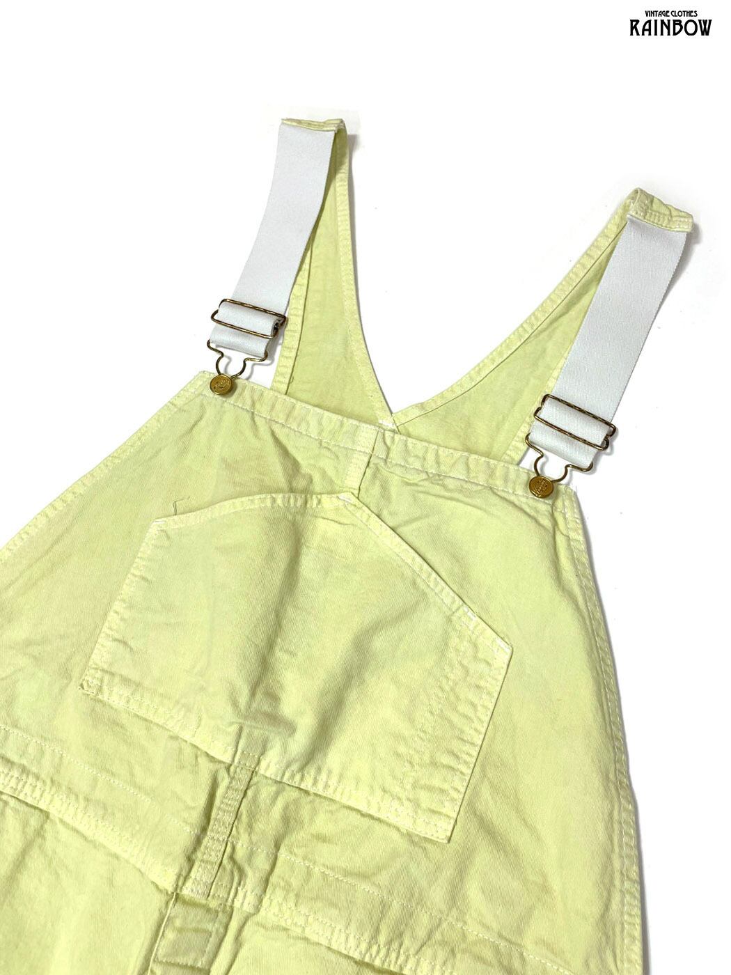 古着 無地 コットン100% ロング丈 キャミソール オーバーオール 黄 ライトグリーン (otu2601005)