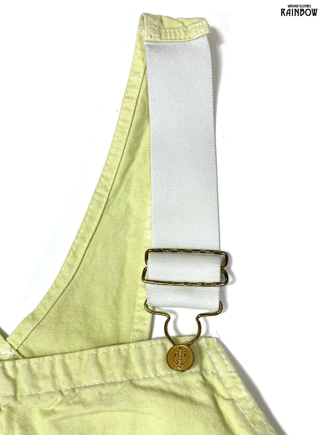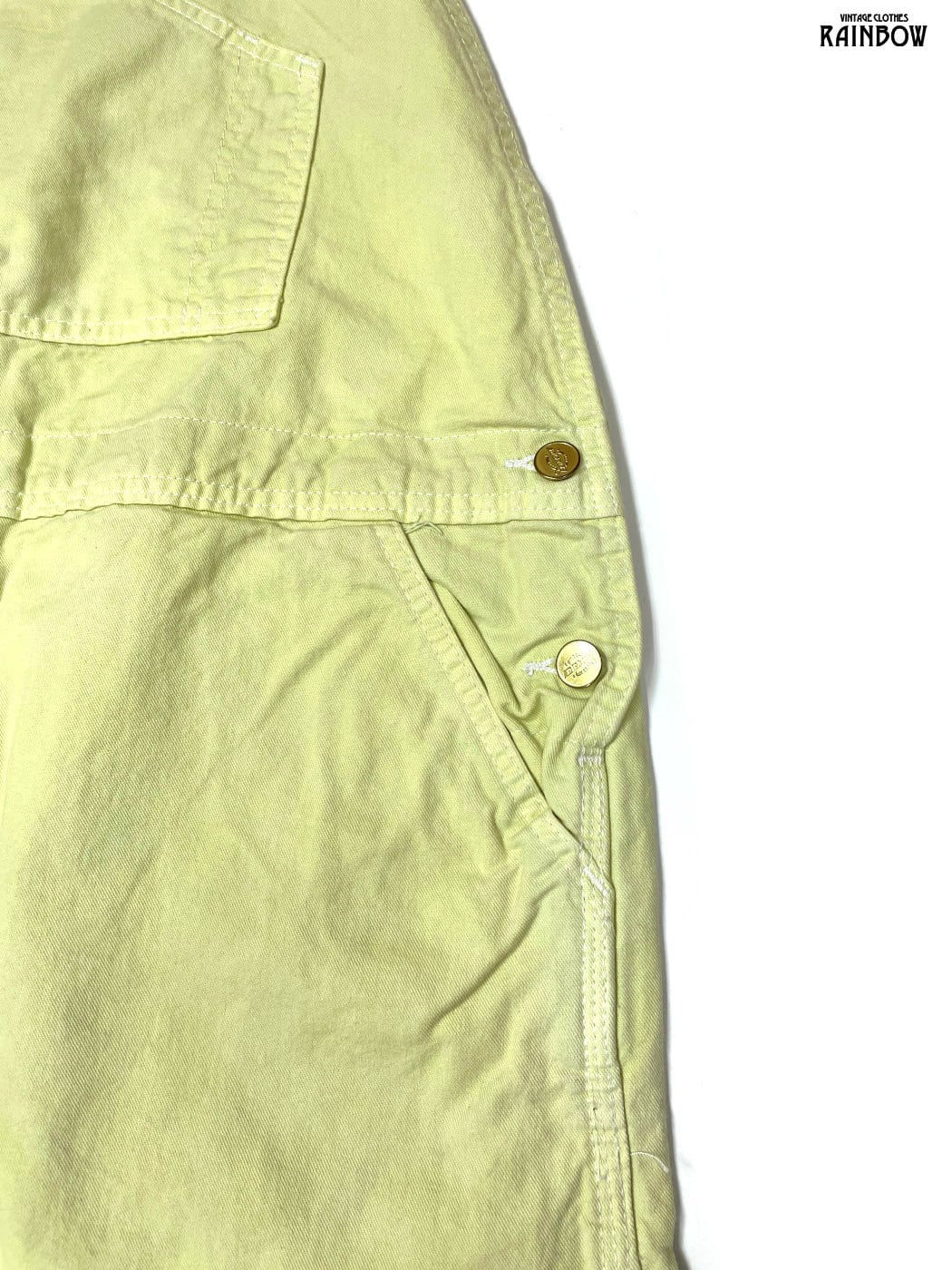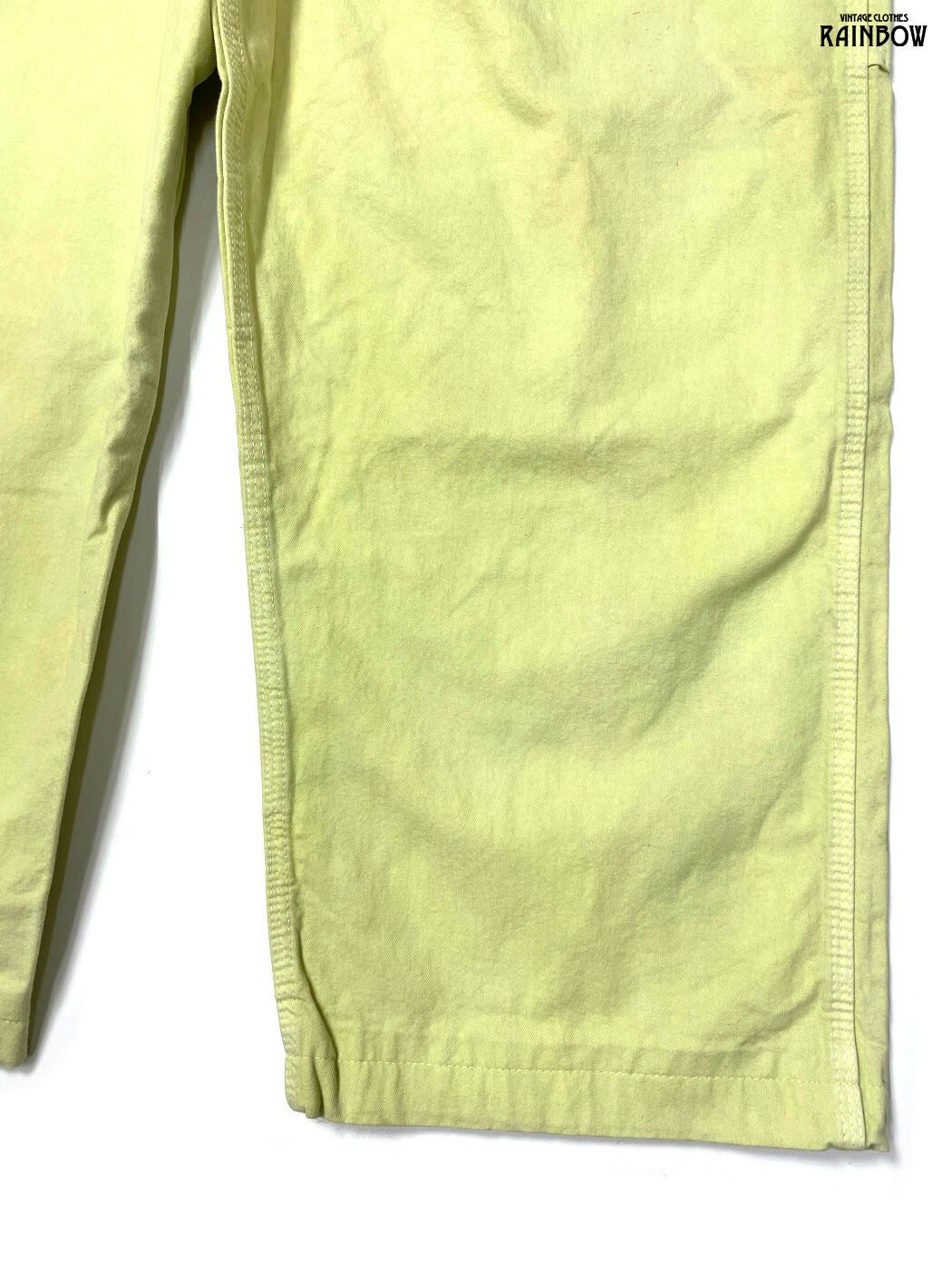 古着 無地 コットン100% ロング丈 キャミソール オーバーオール 黄 ライトグリーン (otu2601005)