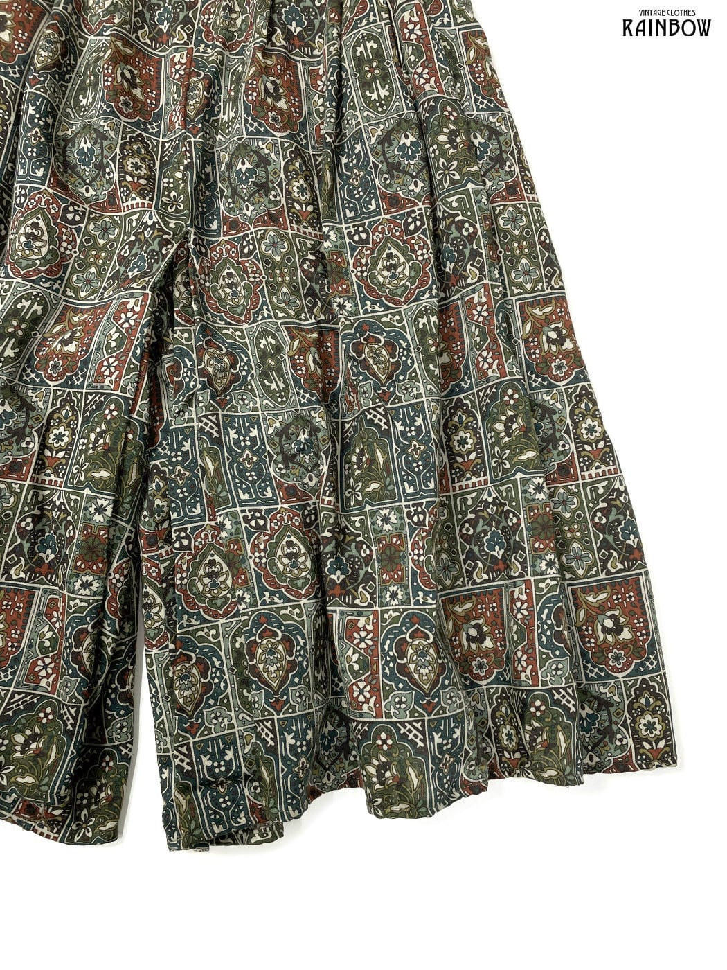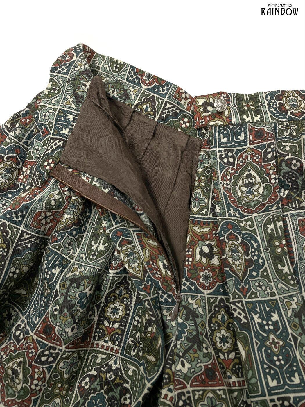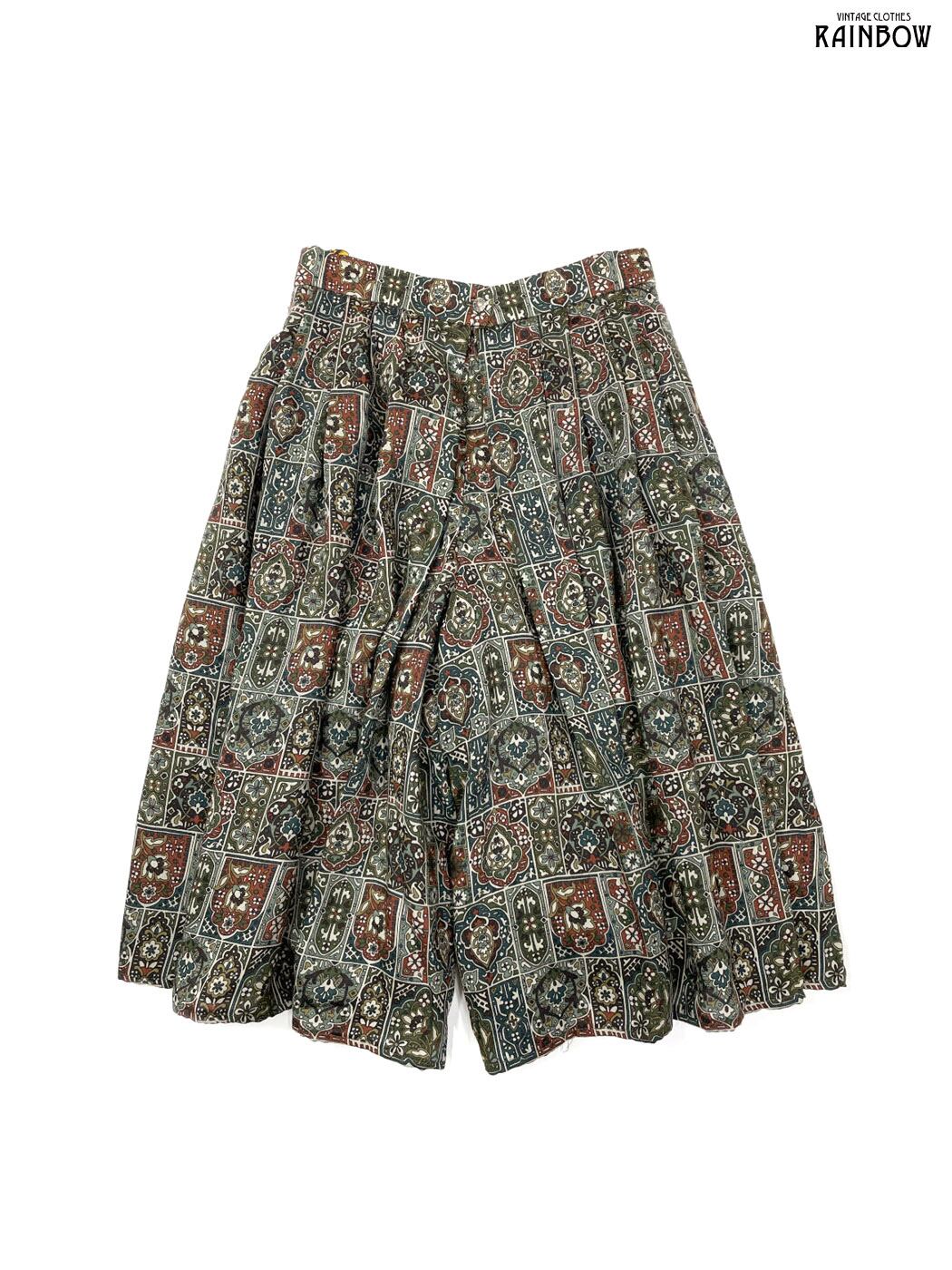 #パンツ #ミニ丈 #茶 #緑 #総柄 #エスニック柄 #オーストリア製 #エスニック #ウール #柄ショートパンツ