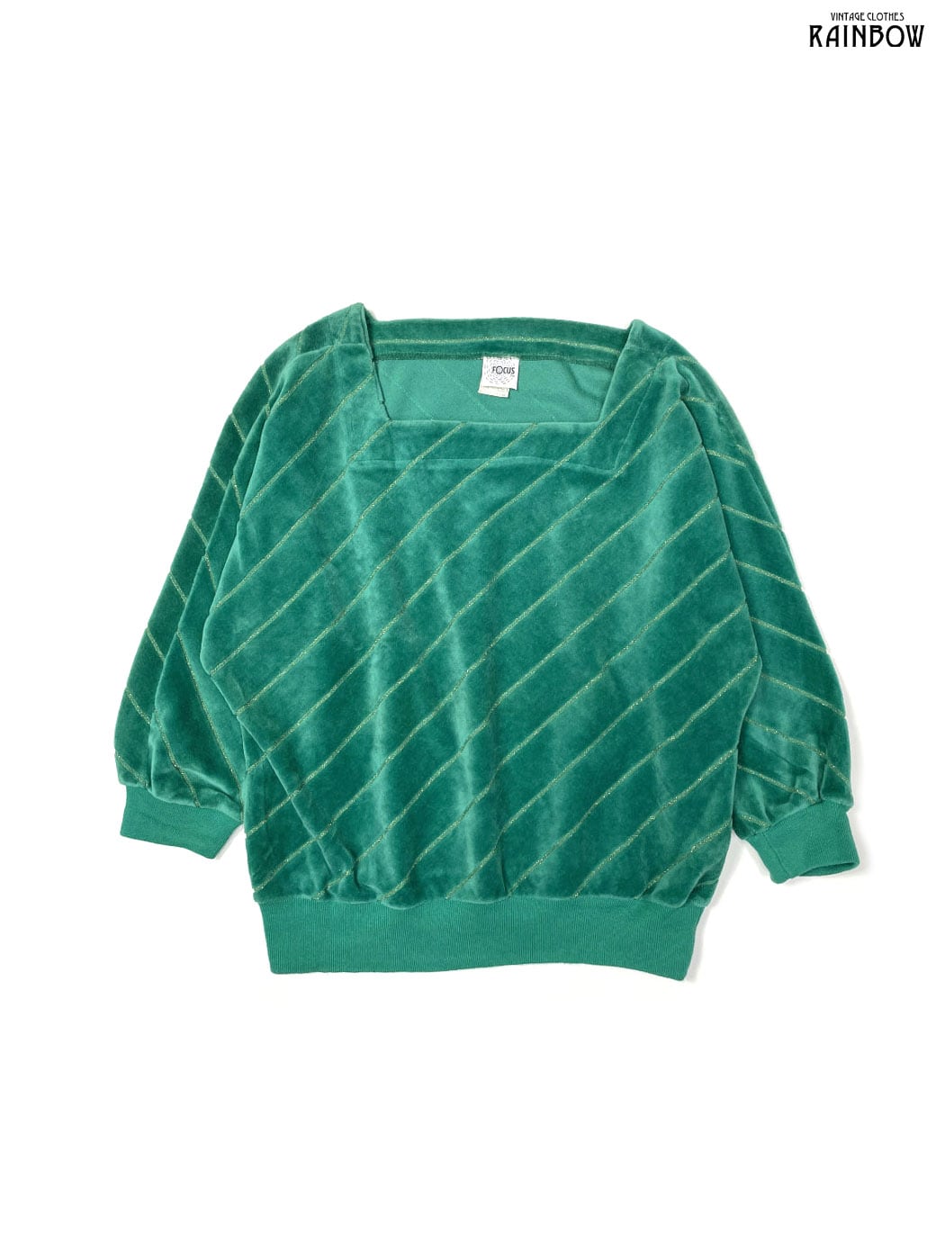 #トップス #プルオーバー #ロングスリーブ #緑 #ストライプ柄 #ベロア風 #ヴィンテージ #長袖柄プルオーバー #フリース