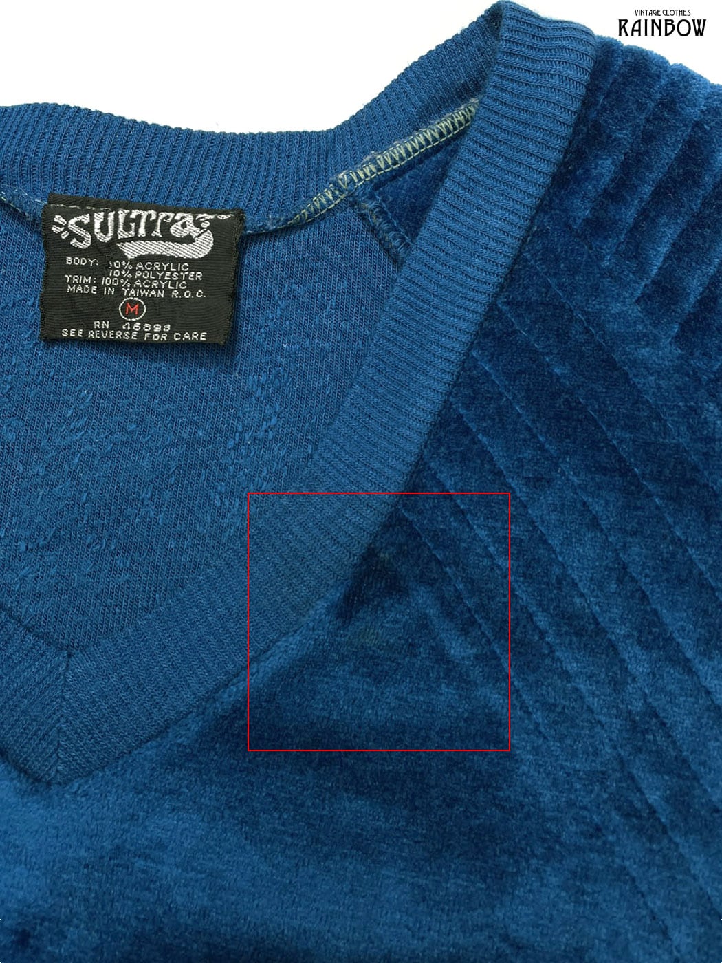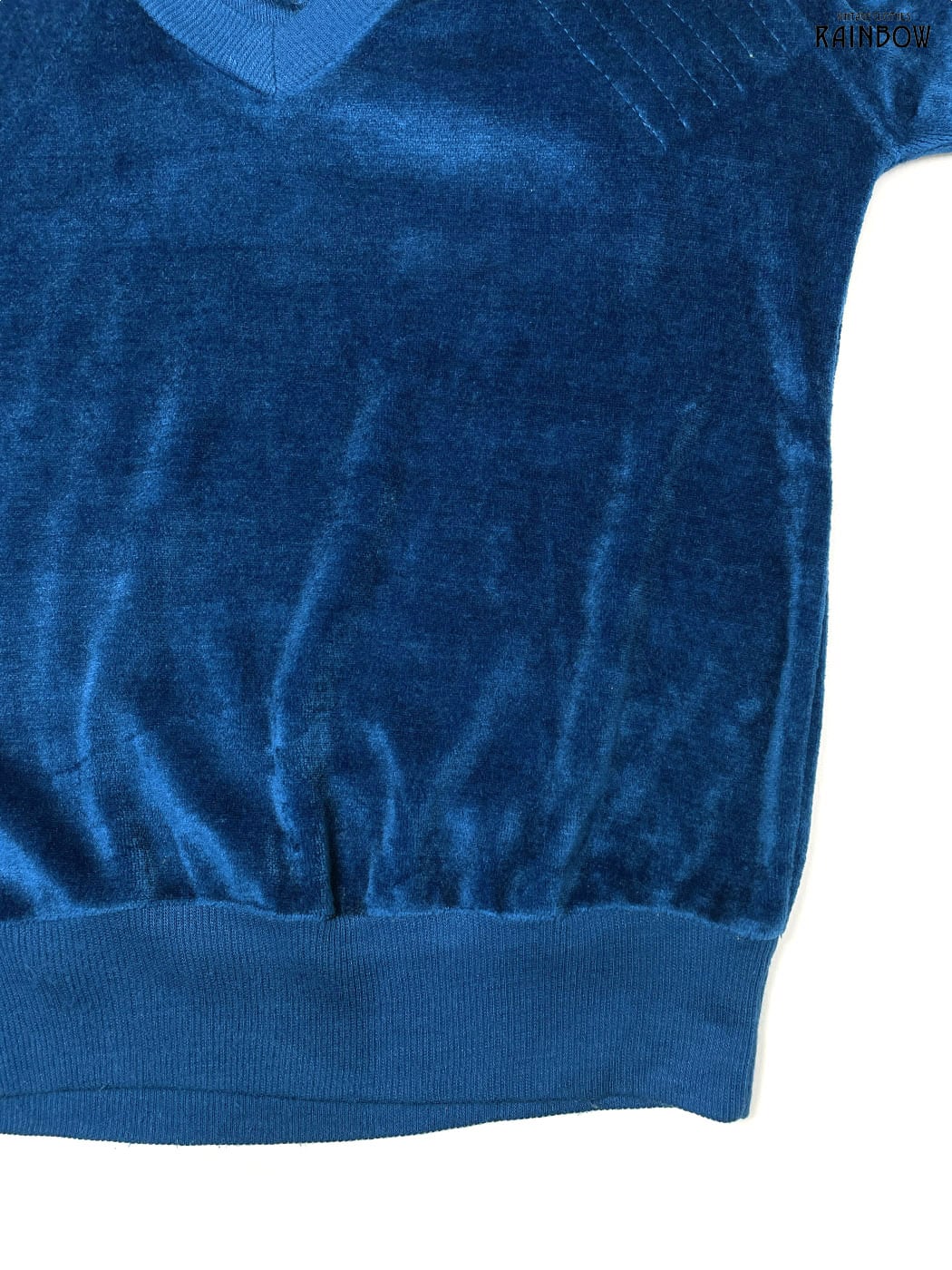 #トップス #プルオーバー #ロングスリーブ #青 #無地 #ベロア風 #ヴィンテージ #長袖無地プルオーバー