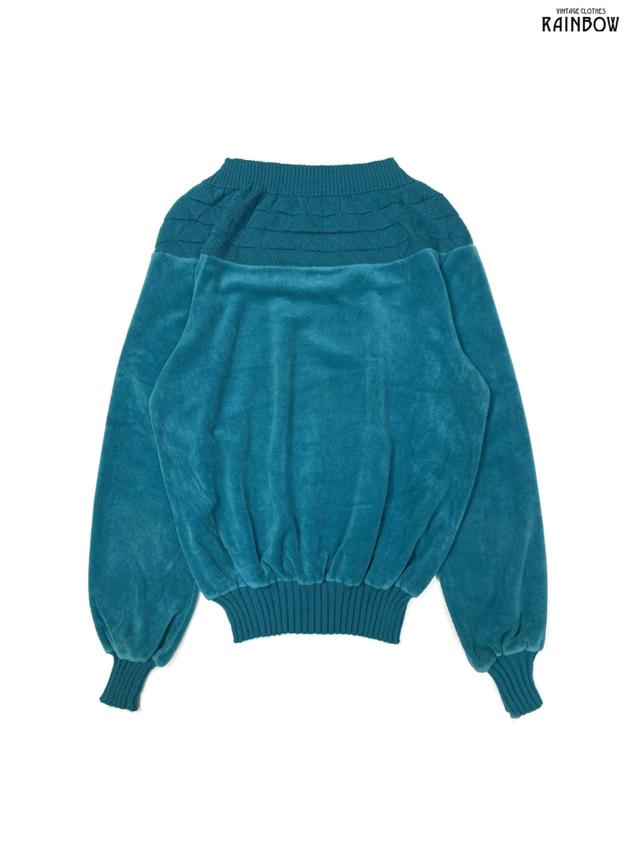 #トップス #プルオーバー #ロングスリーブ #緑 #無地 #ニット切替 #ヴィンテージ #長袖無地プルオーバー