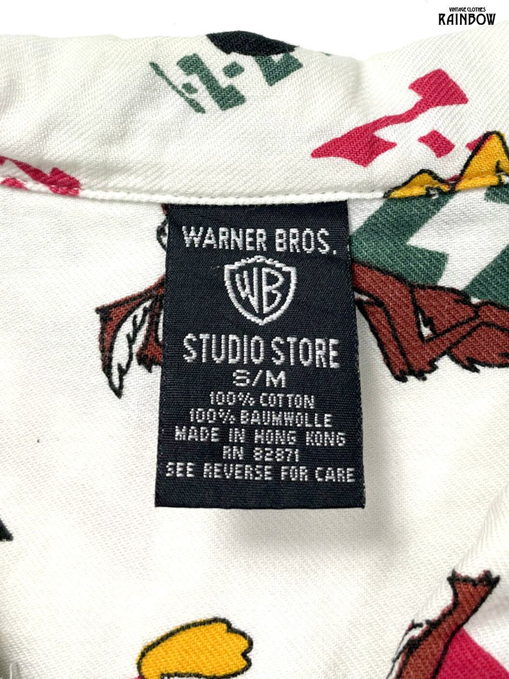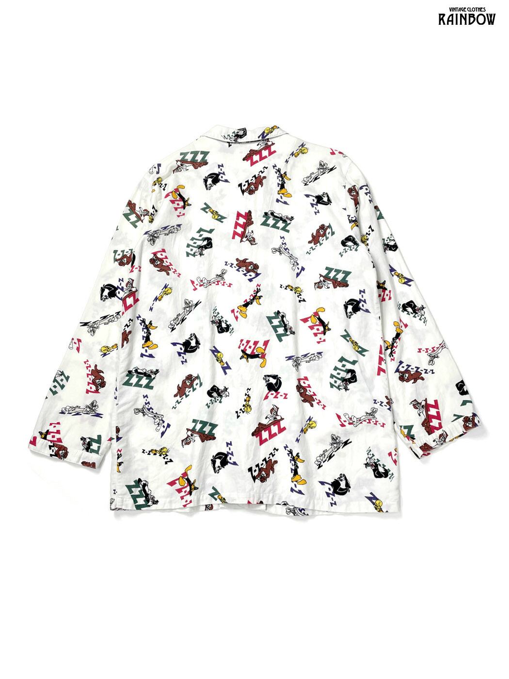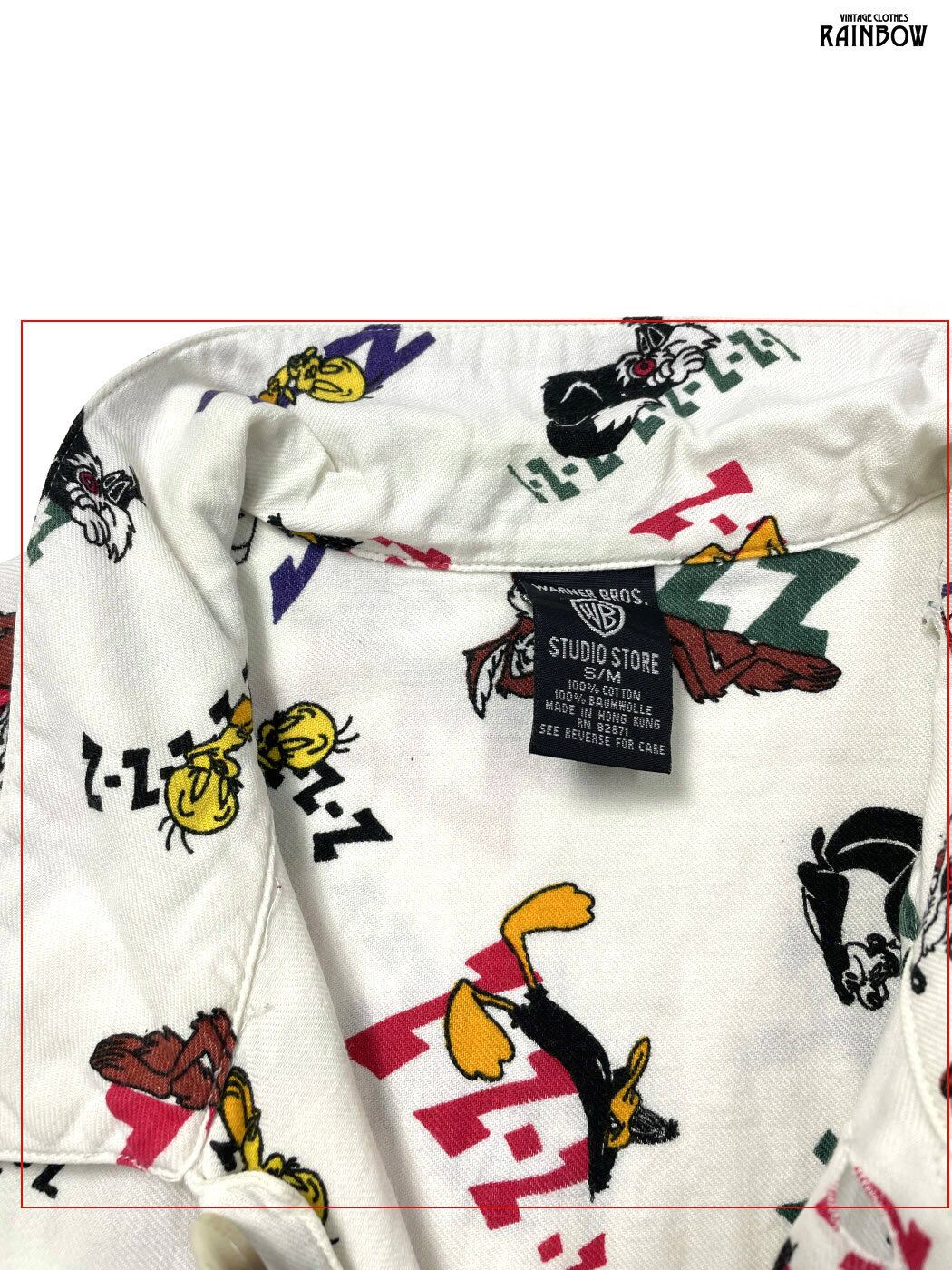 古着 WARNAER BROS ワーナーブラザーズ LOONEY TUNES ルーニーテューンズ 総柄 コットン100% 長袖 シャツ 白 (ttu2601033)