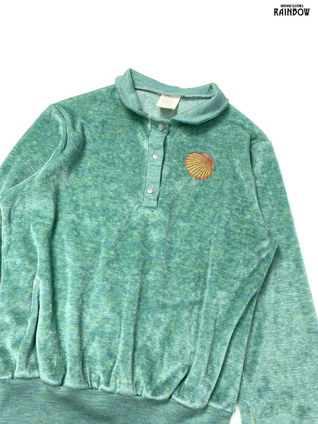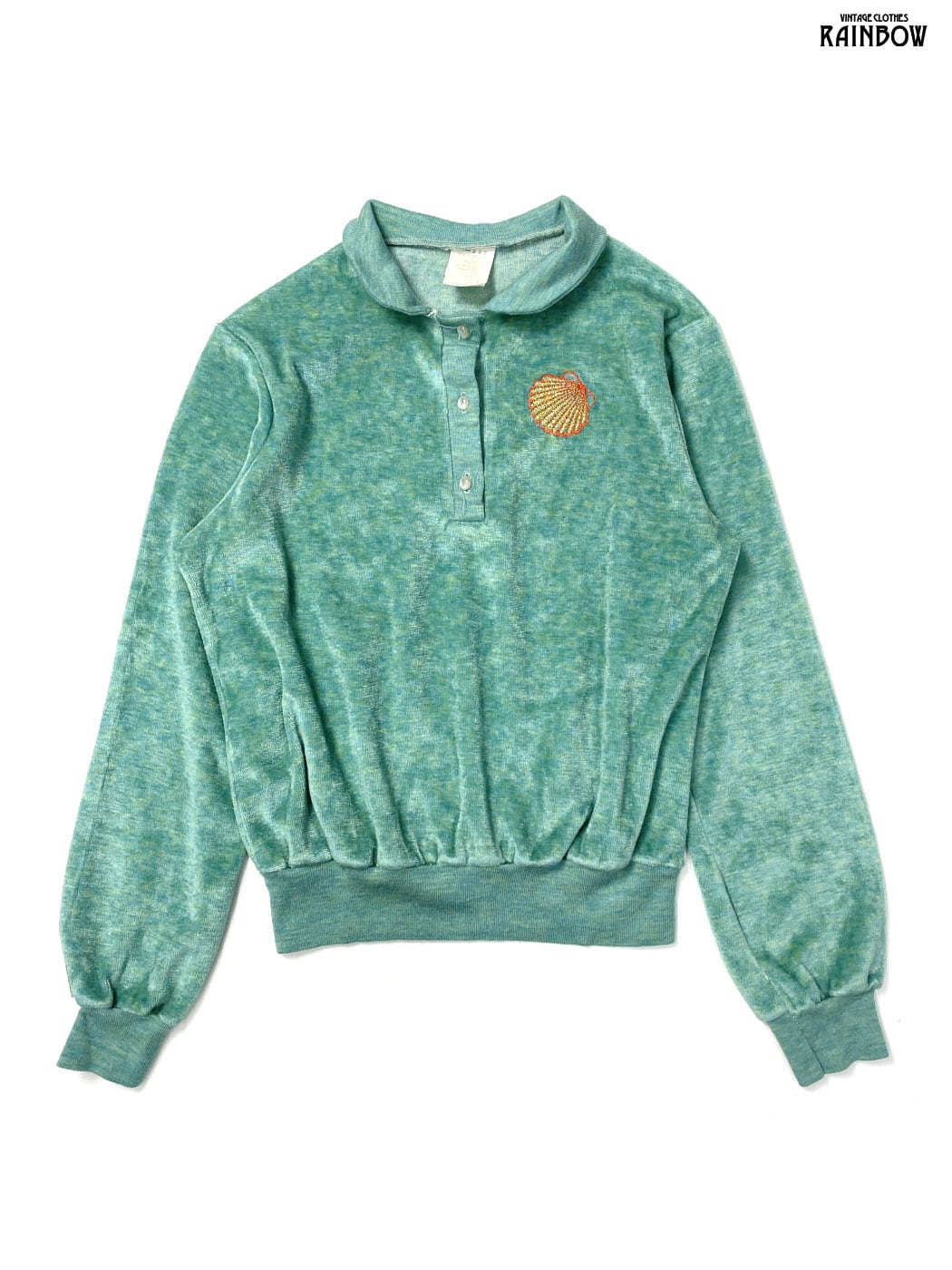 #トップス #プルオーバー #ロングスリーブ #緑 #無地 #ワンポイント #刺繍 #ベロア #刺繍プルオーバー