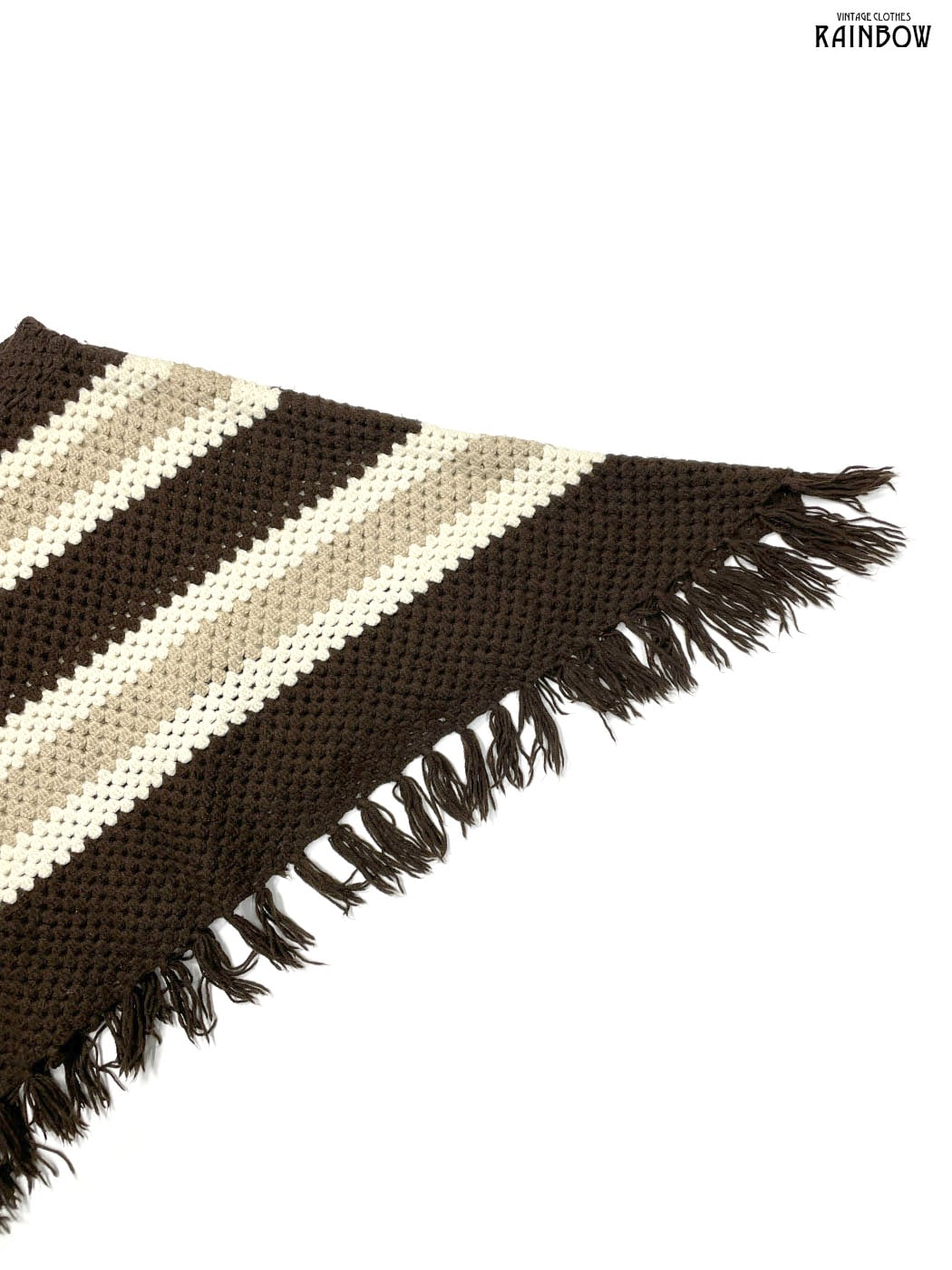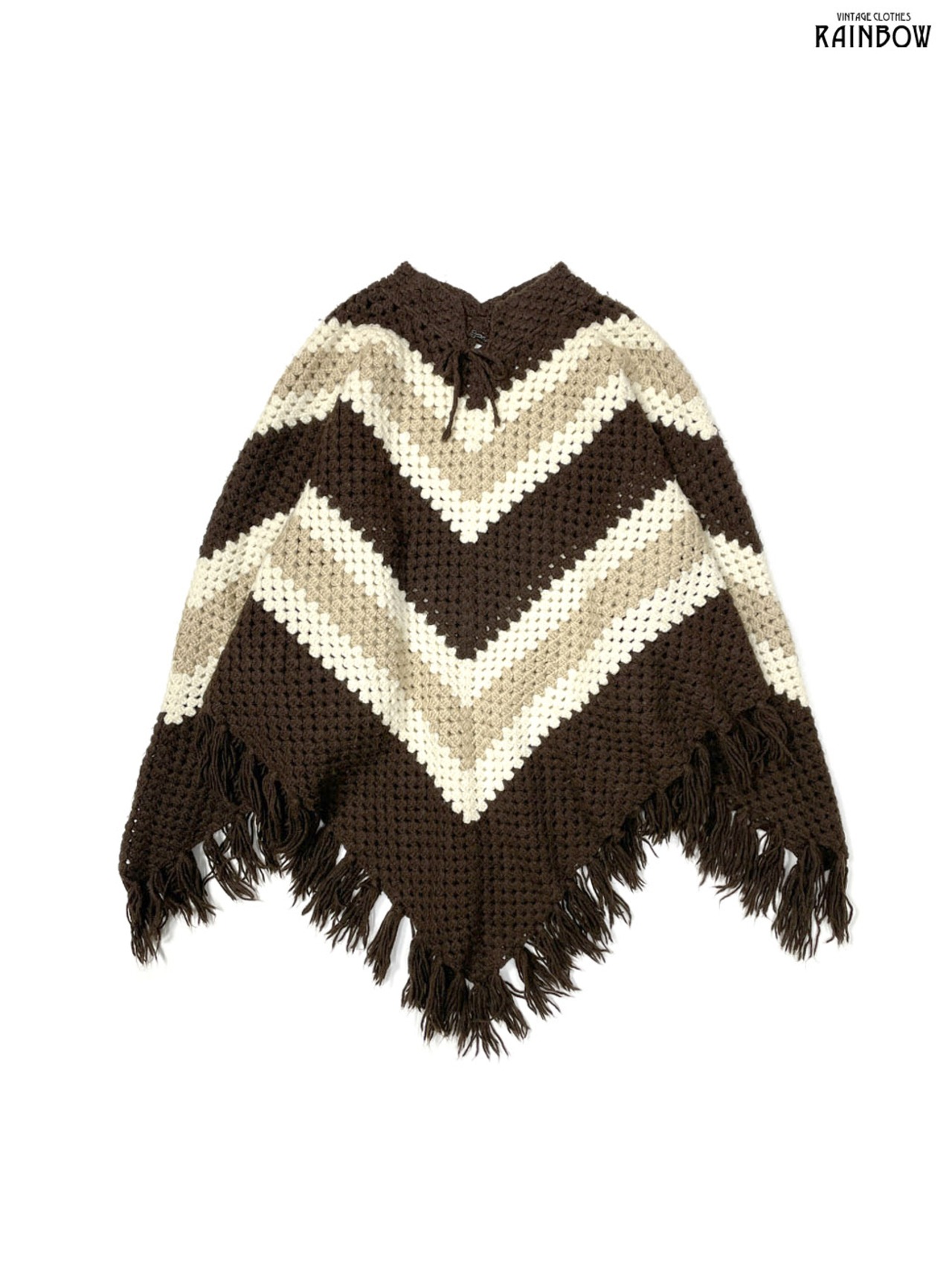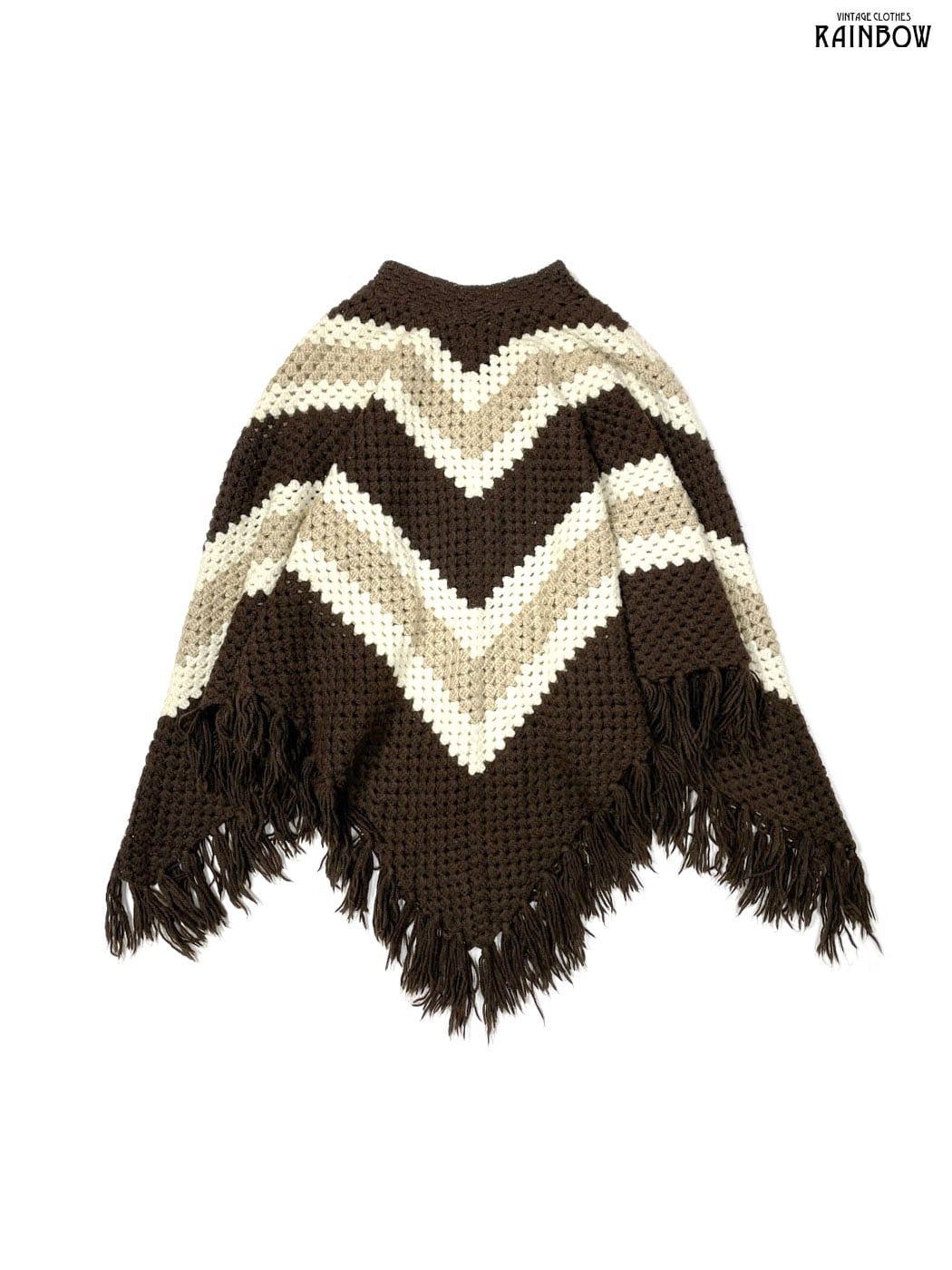 #アウター #羽織り #ロングスリーブ #茶 #総柄 #フリンジ #ニット地 #ポンチョ・ケープ