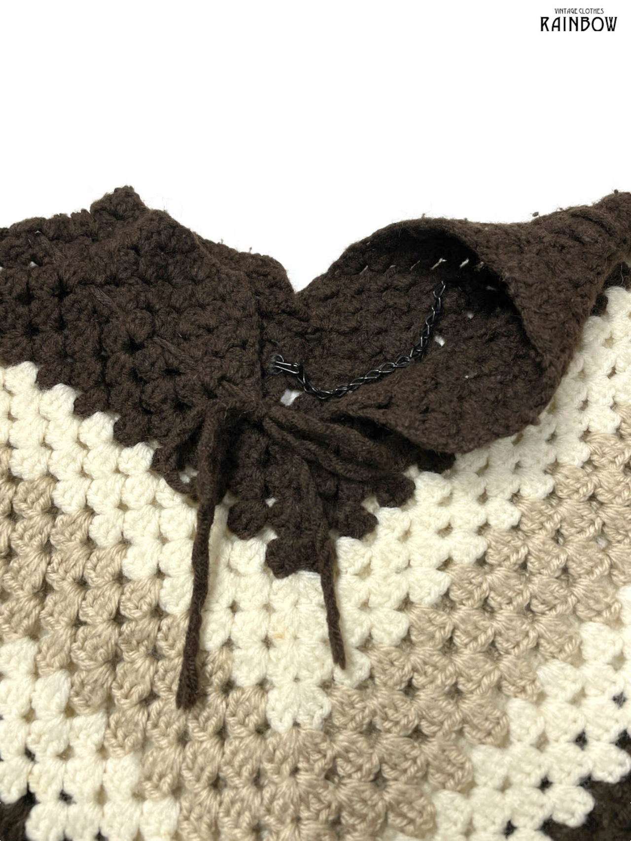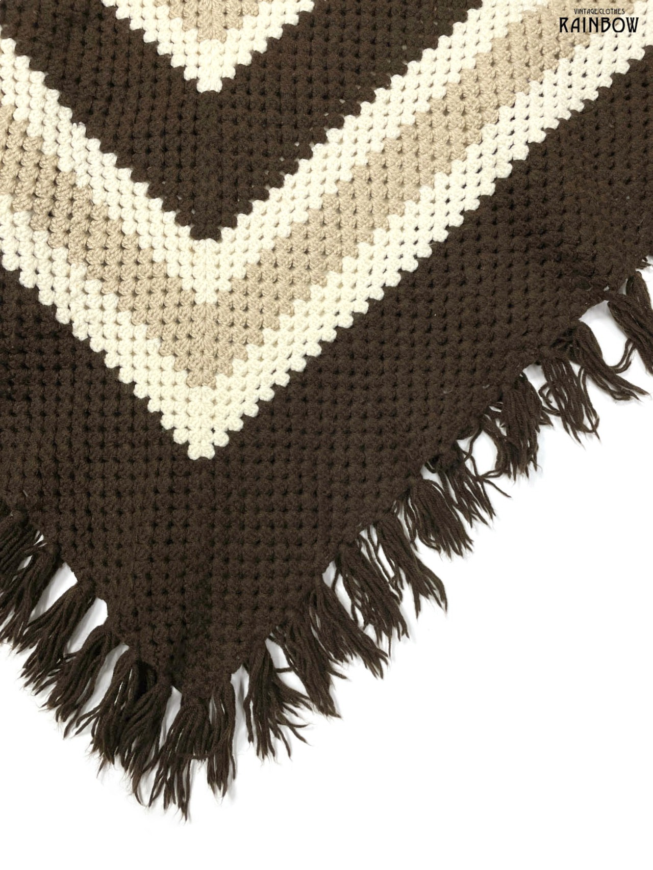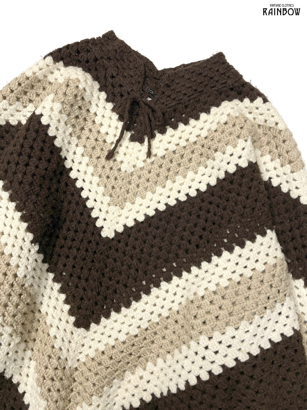 #アウター #羽織り #ロングスリーブ #茶 #総柄 #フリンジ #ニット地 #ポンチョ・ケープ