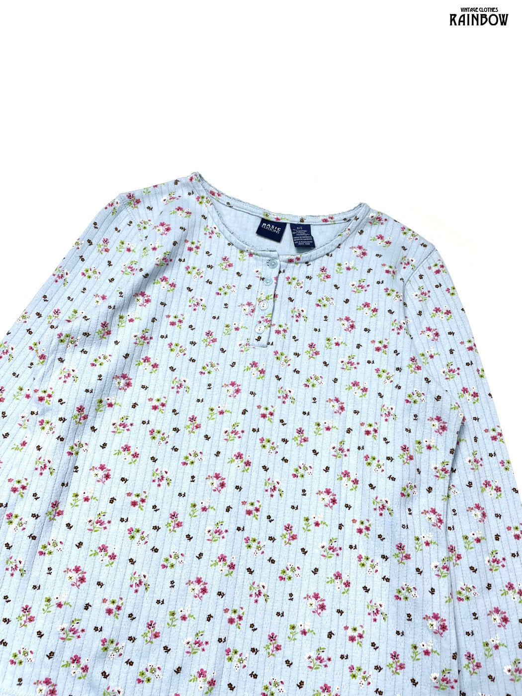 古着 BASIC EDITIONS ベーシックエディションズ 花柄 コットン 長袖 Tシャツ 青 水色 (ttu2601040)