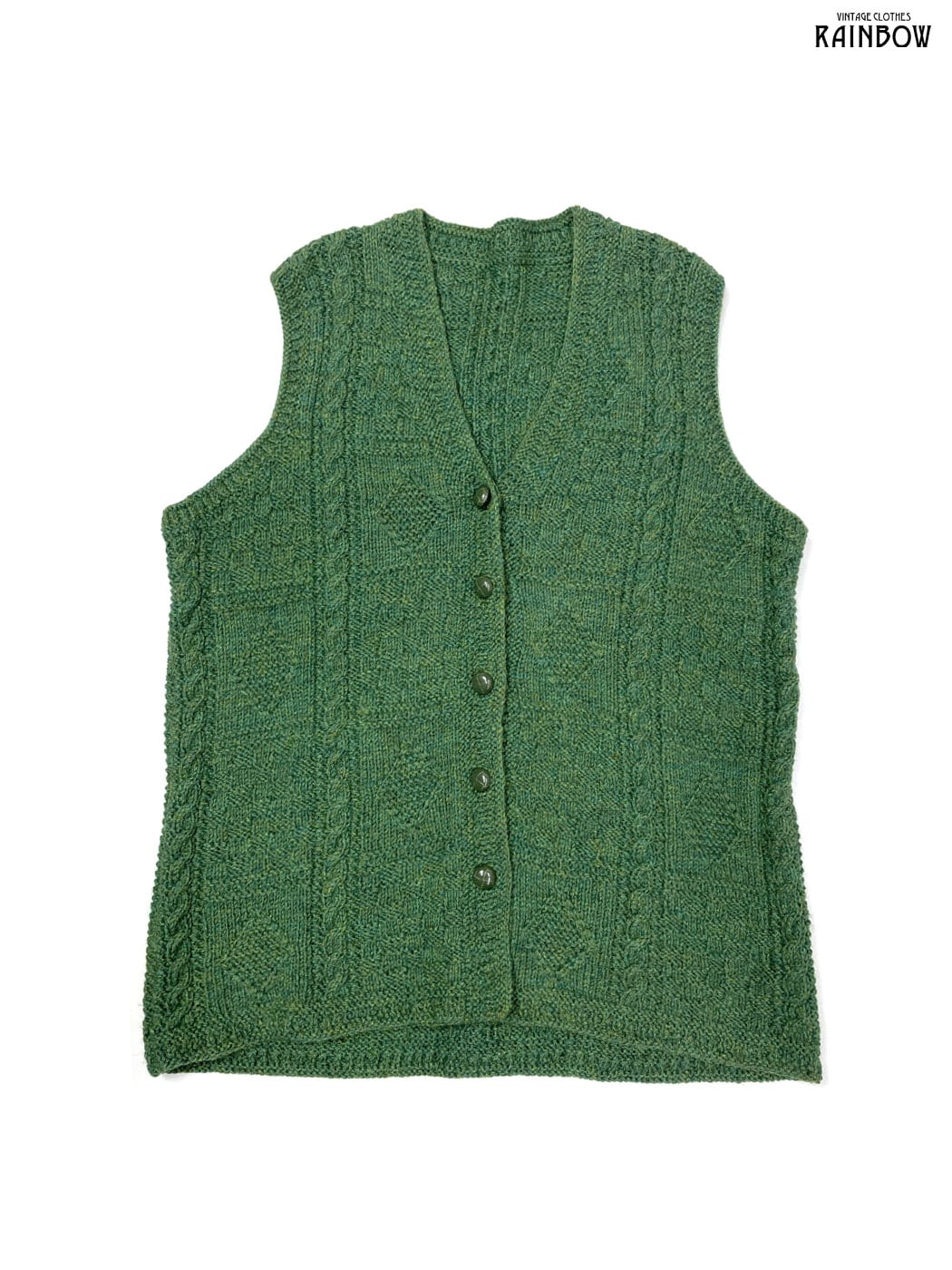 #トップス #ベスト #ノースリーブ #緑 #無地 #前開き #ヴィンテージ #ニット地 #ベスト