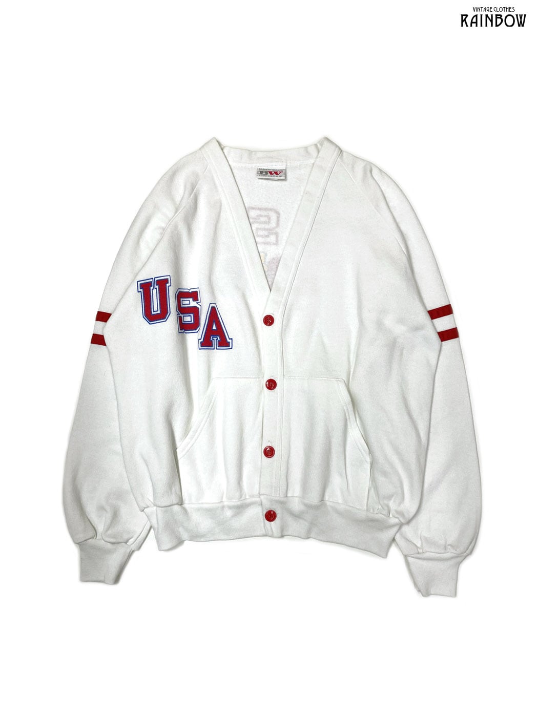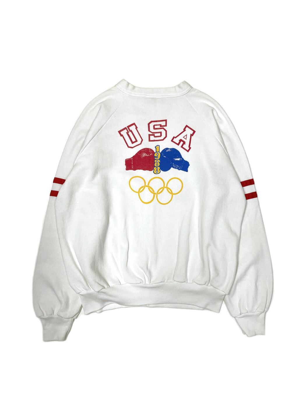 #アウター #ライトジャケット #ロングスリーブ #白 #赤 #プリントデザイン #バックプリント #usa #ボクシング #オリンピック #アメリカ製 #前開き #ガーリー #ヴィンテージ #スウェット地 #無地ライトジャケット