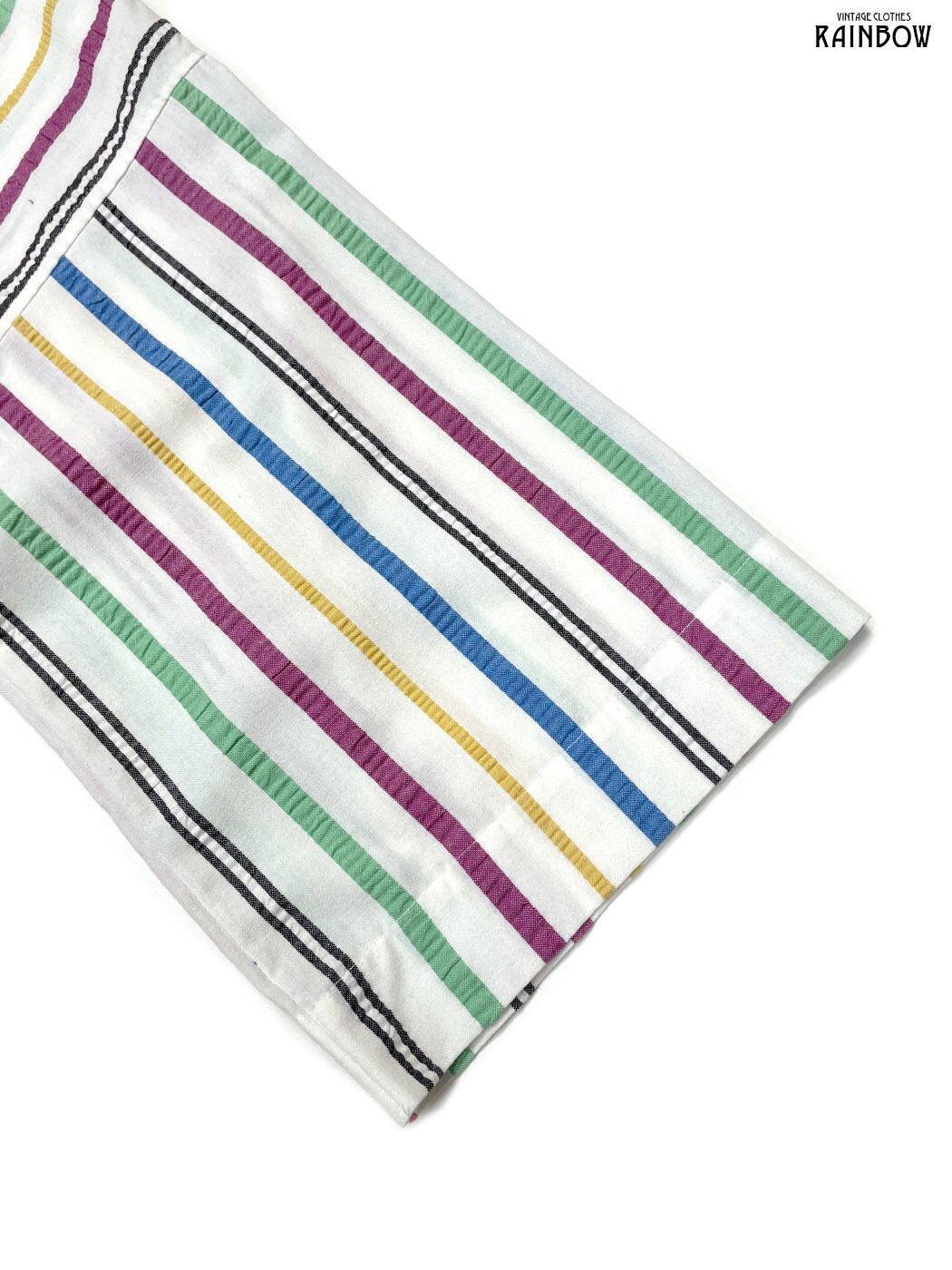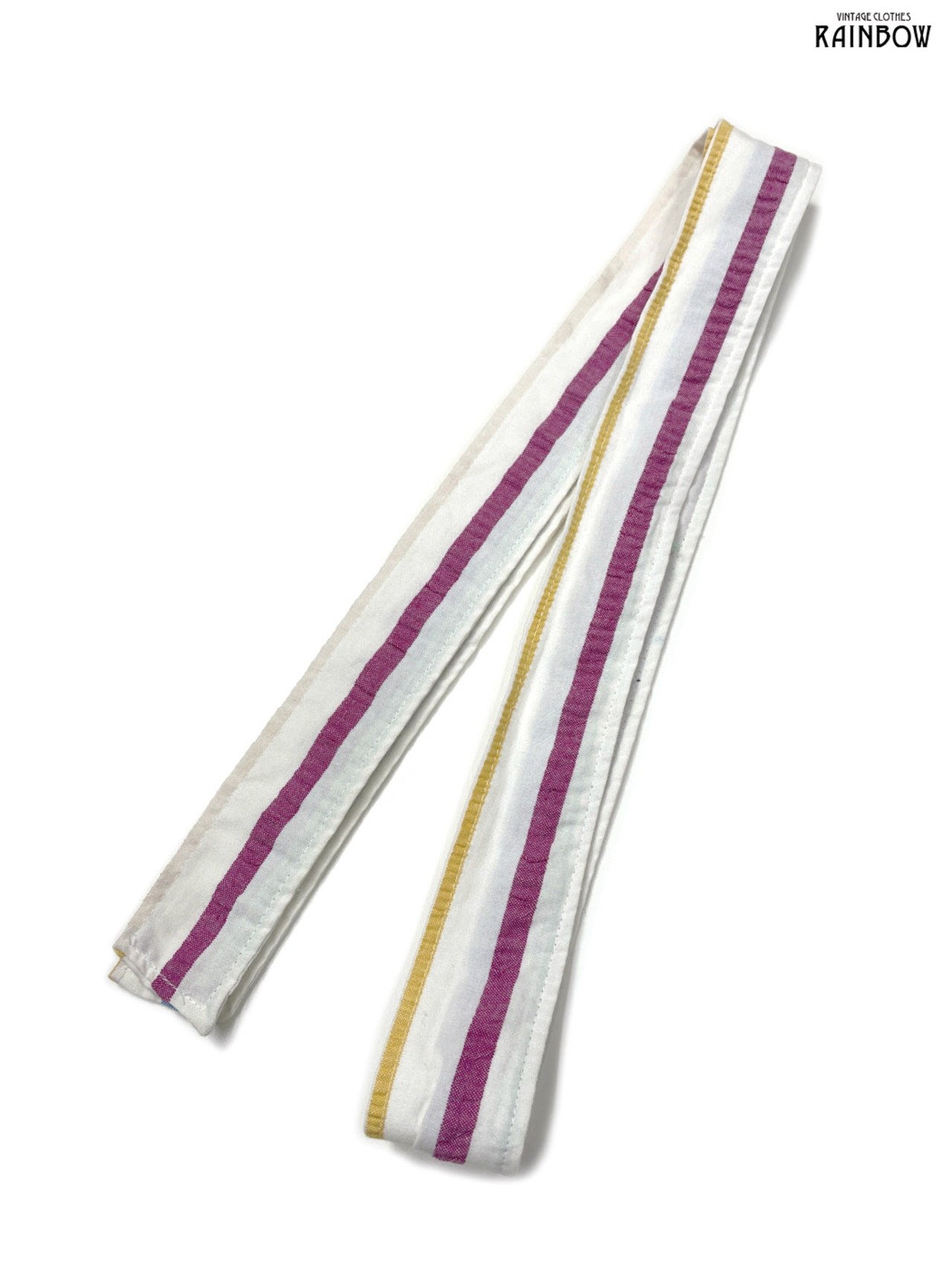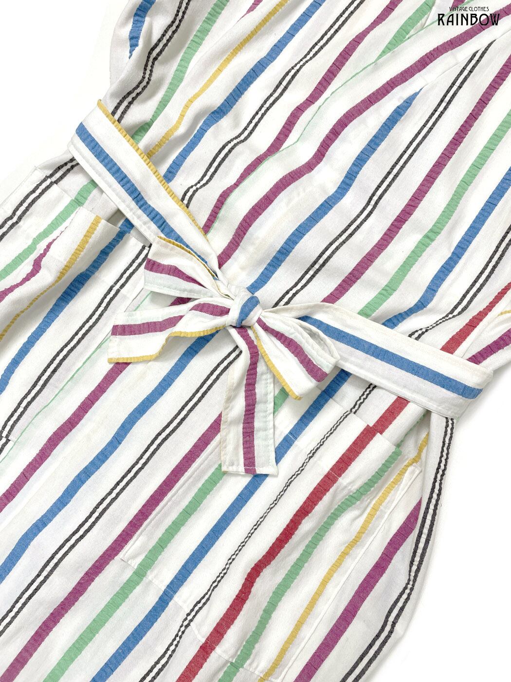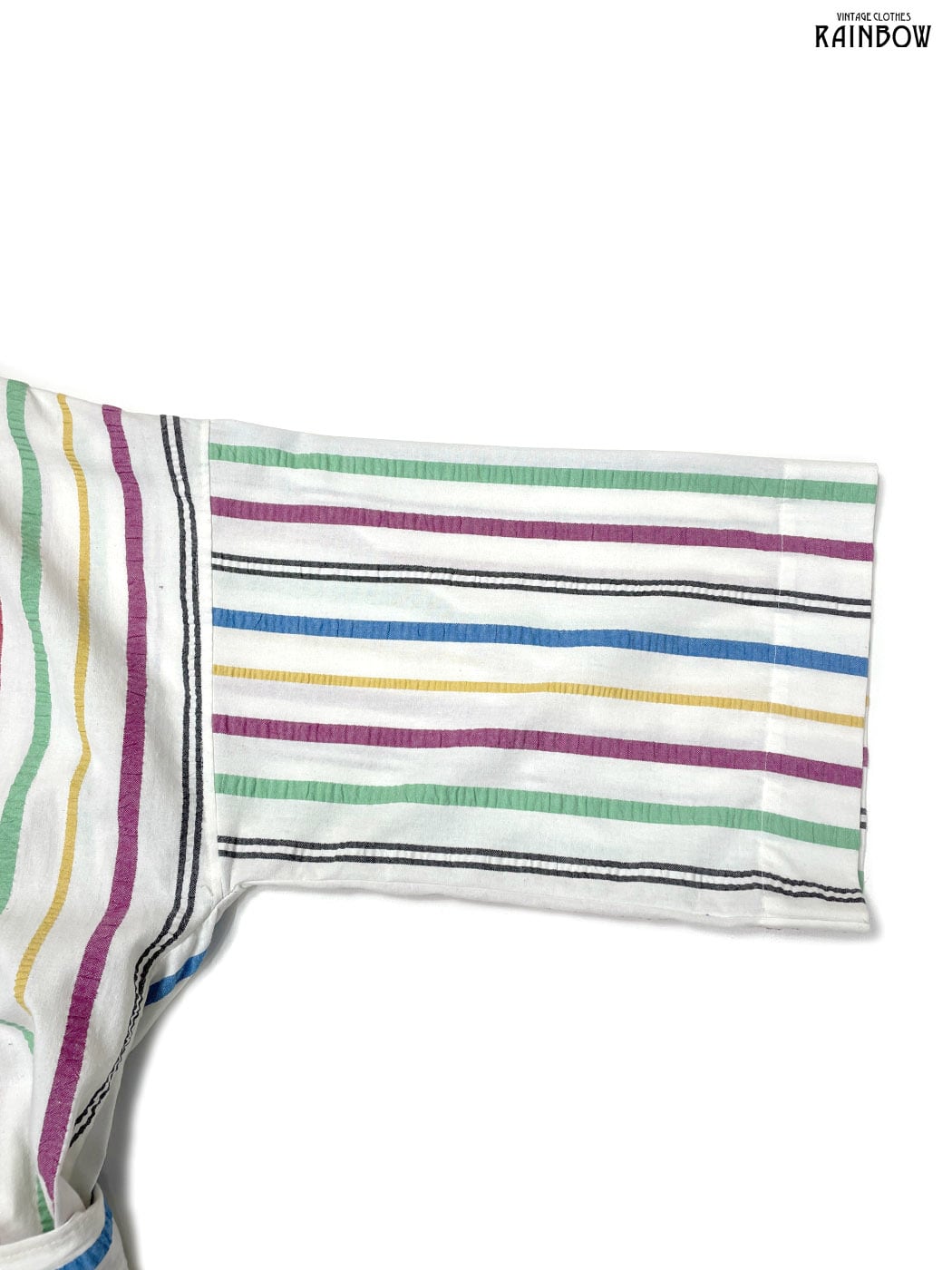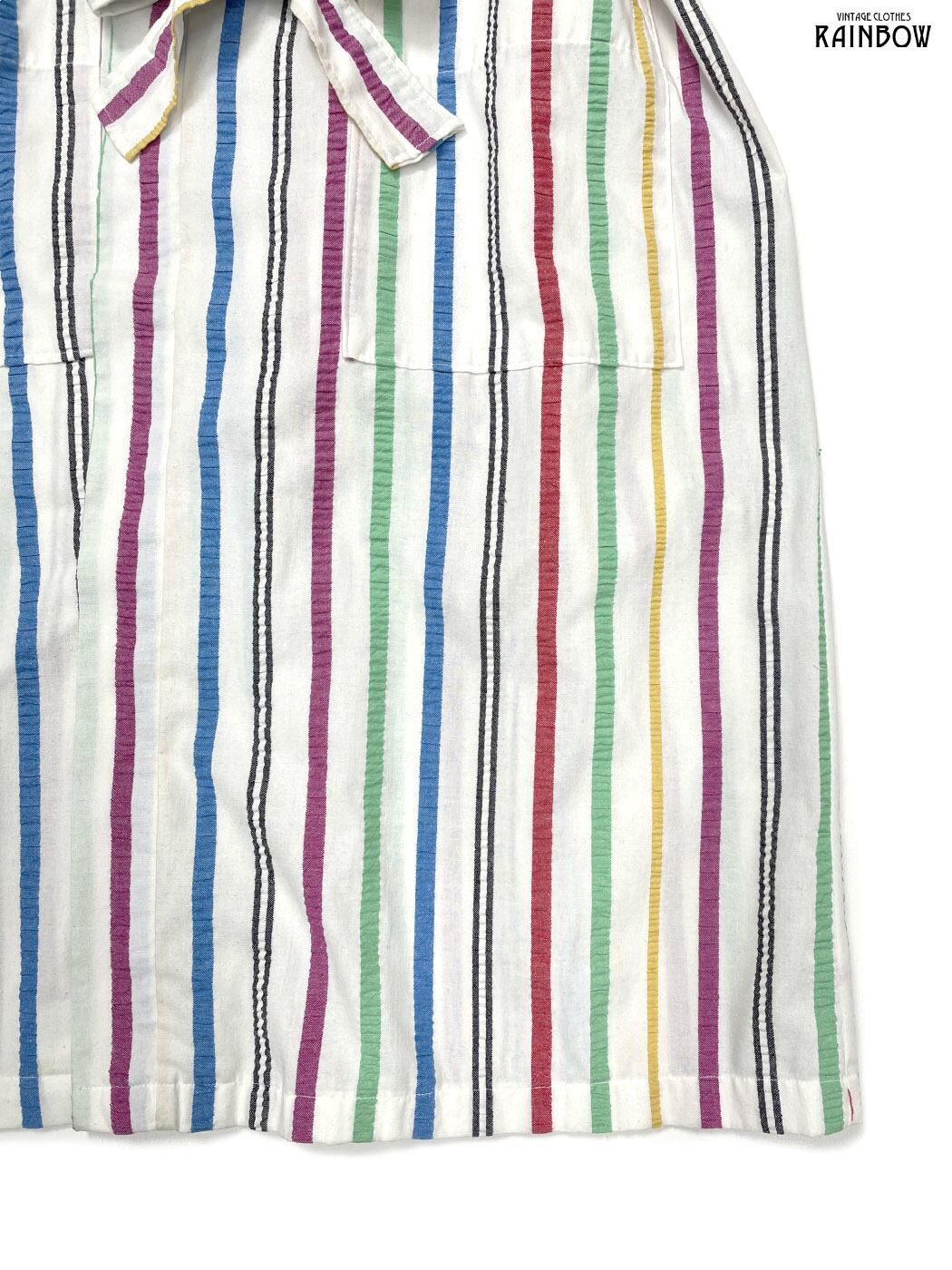 #アウター #羽織り #ロングスリーブ #ロング丈 #白 #カラフル #ストライプ柄 #アメリカ製 #リボン #ベルト付き #前開き #ガーリー #ヴィンテージ #コットン #柄羽織り