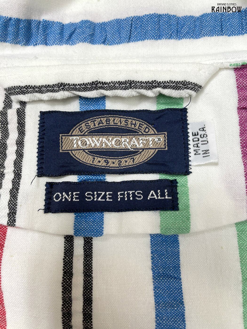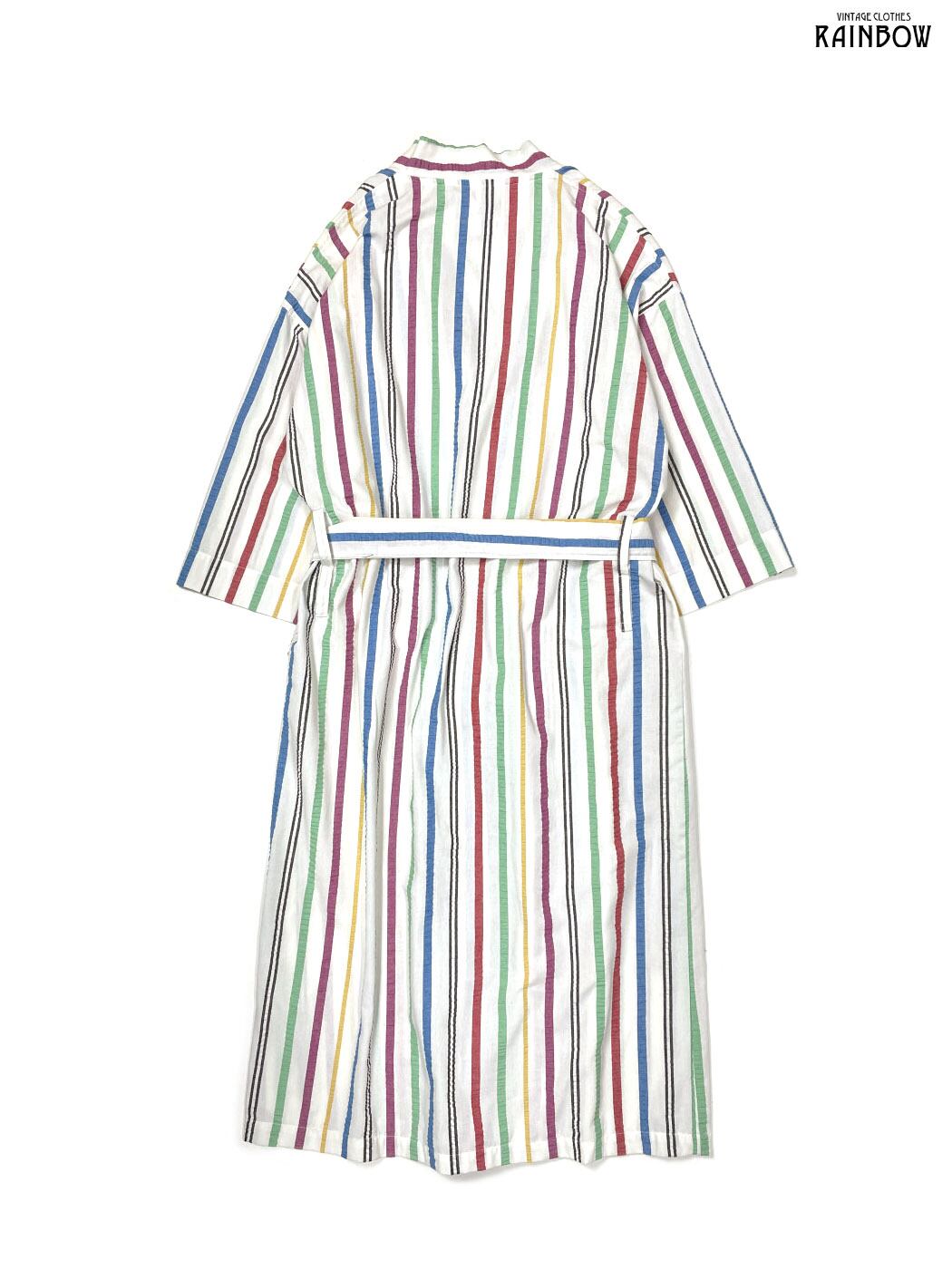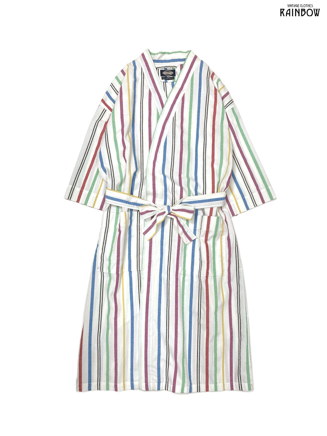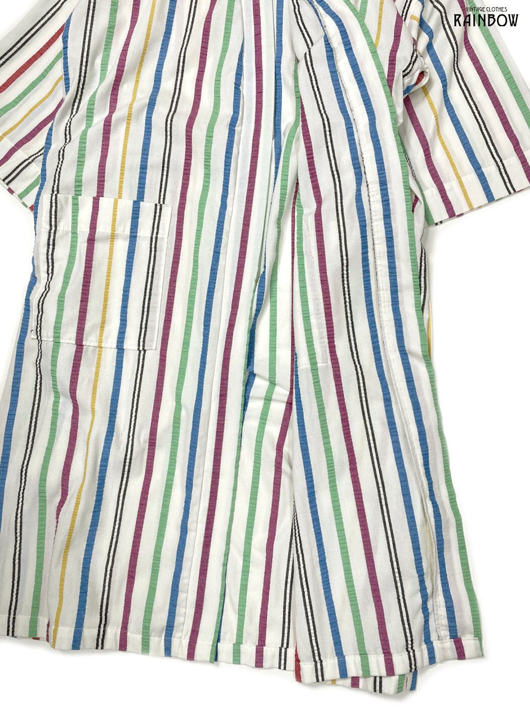 古着 TOWNCRAFT タウンクラフト アメリカ製 ベルト付き 前開き ストライプ柄 コットン ロング丈 長袖 アウター 羽織り 白 カラフル (ttu2511132)