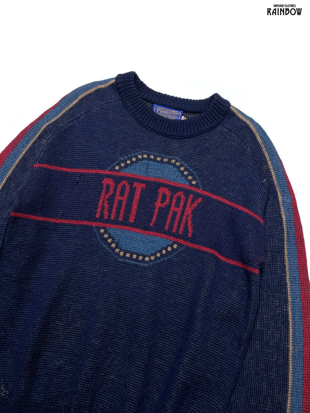 #ニット #セーター #ロングスリーブ #紺 #ロゴデザイン #アメリカ製 #ピュアウール #柄セーター