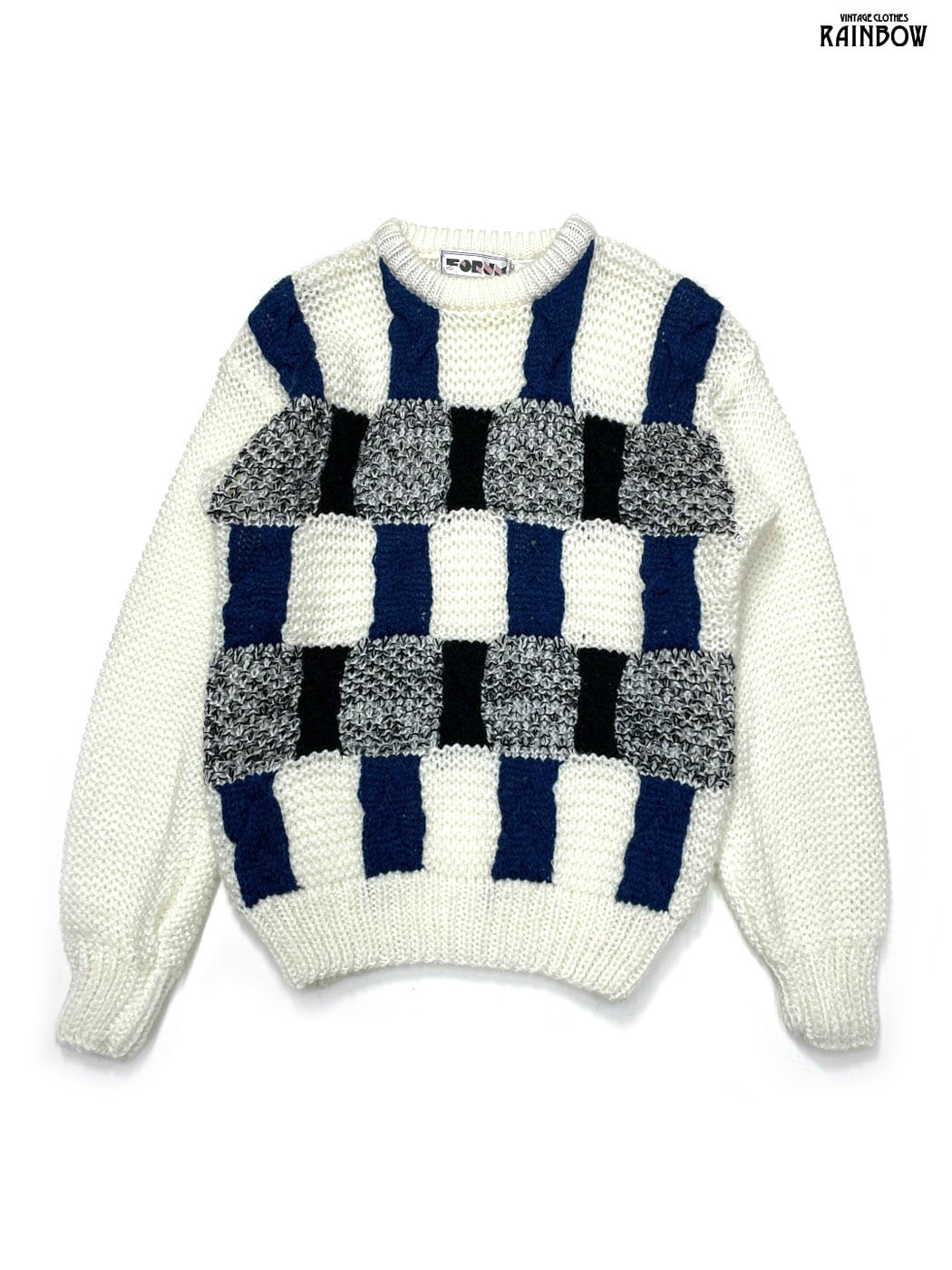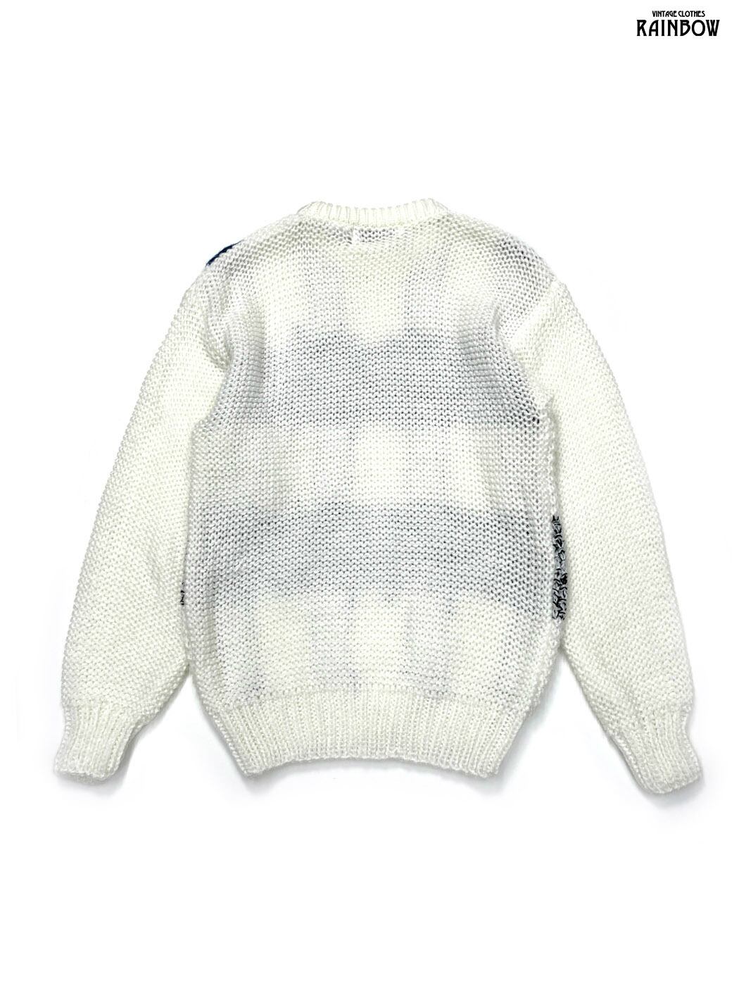 #ニット #セーター #ロングスリーブ #青 #生成り #総柄 #ニット地 #柄セーター