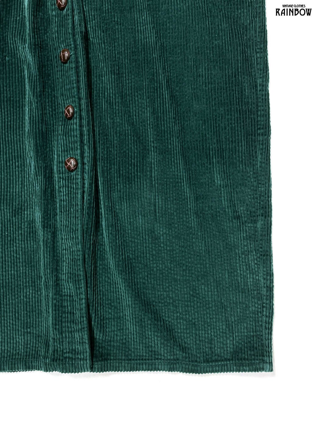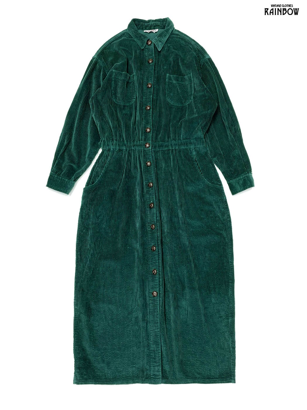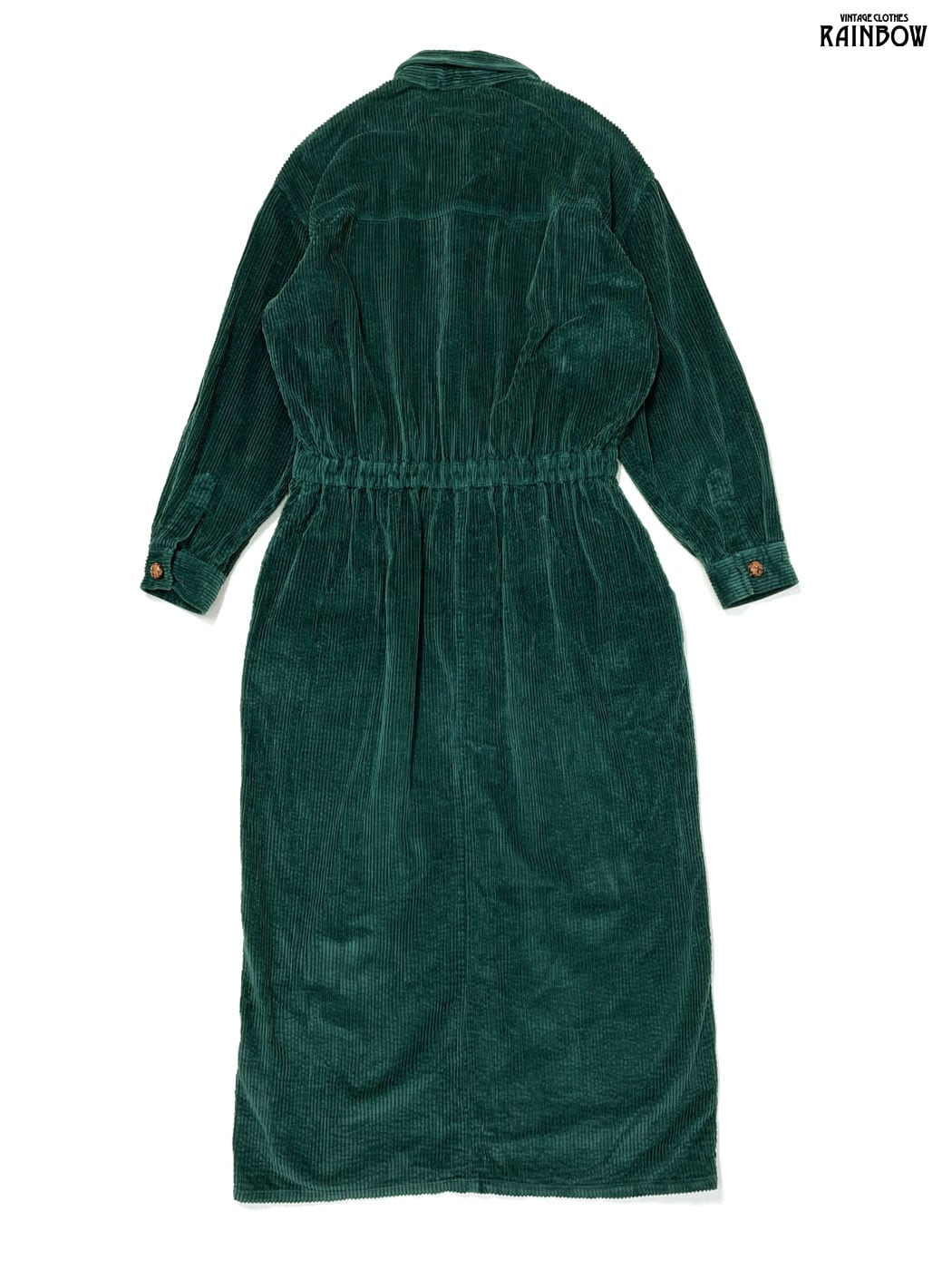 #ワンピース #ロングスリーブ #ウエスト切り替え #緑 #無地 #前開き #シンプル #コーデュロイ #コーデュロイワンピース