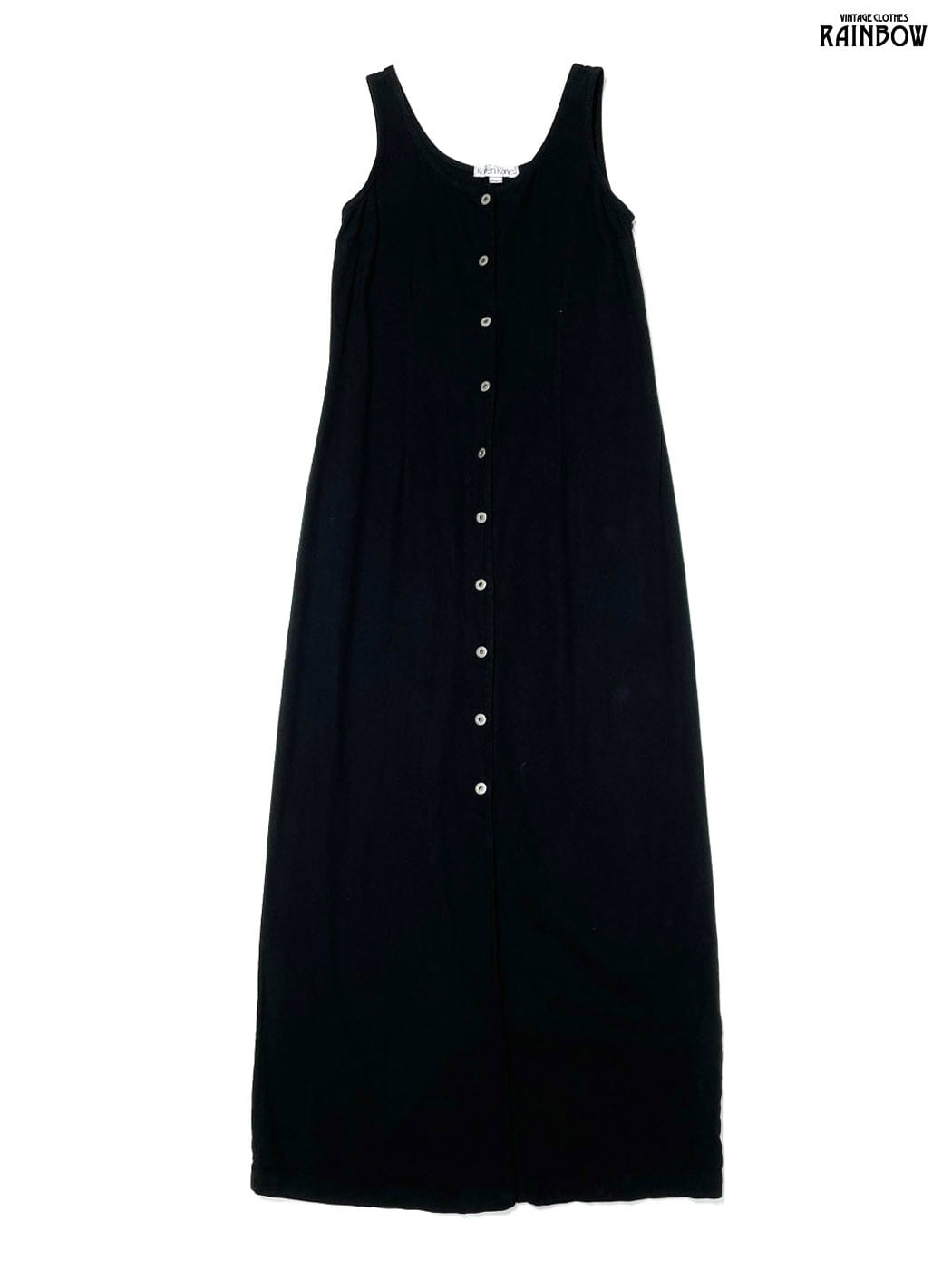 #ワンピース #ノースリーブ #ロング丈 #タイト #黒 #無地 #前開き #シック #コットン #ノースリーブ無地ワンピース
