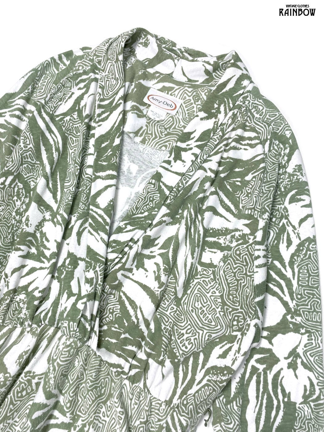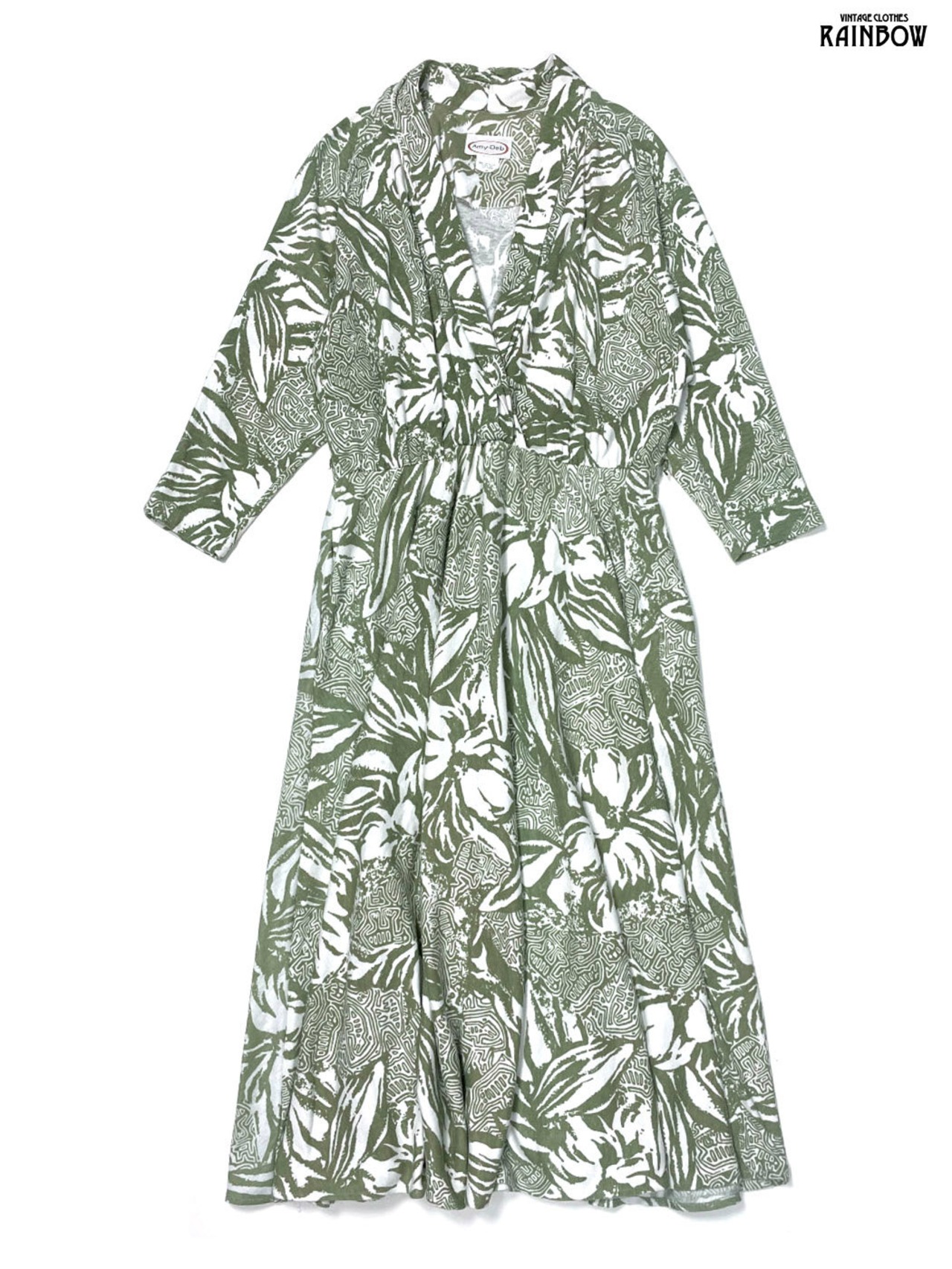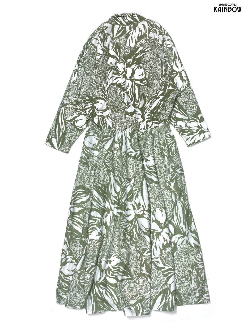 #ワンピース #ロングスリーブ #ロング丈 #ゴムウエスト #緑 #総柄 #カシュクール #カットソー地 #長袖総柄ワンピース