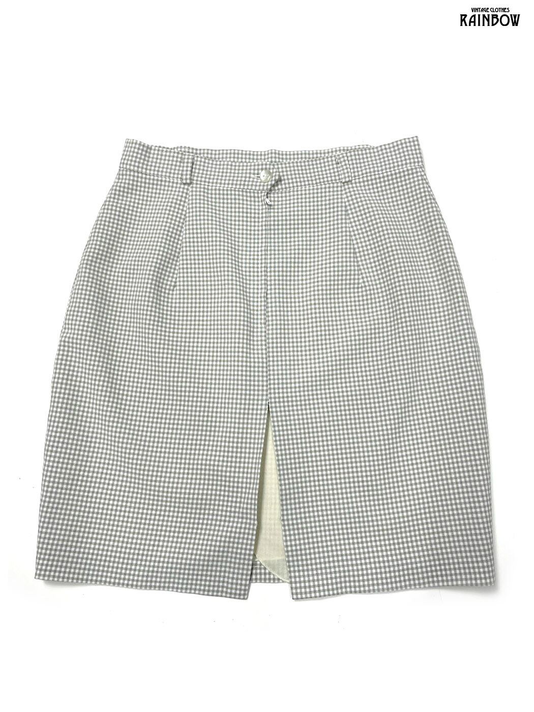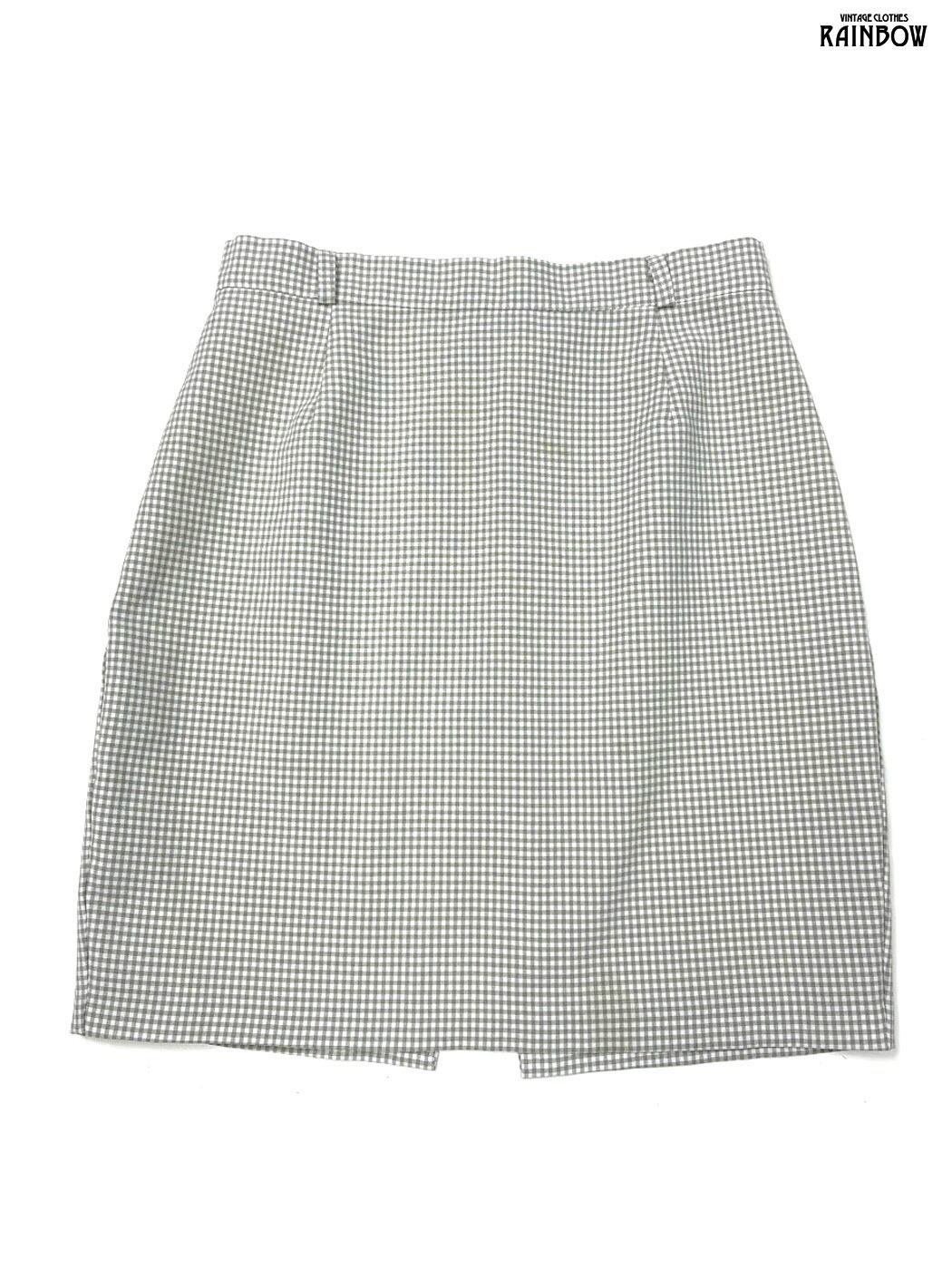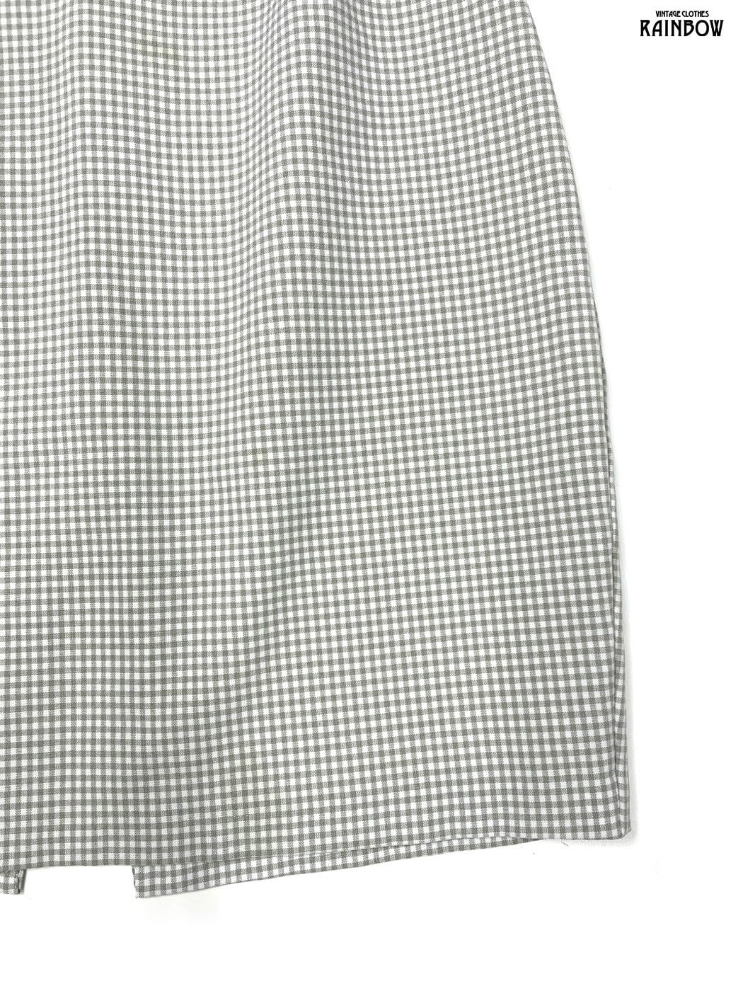 古着 スリット チェック柄 ギンガムチェック柄 ミニ丈 スカート グレー (btu2601003)
