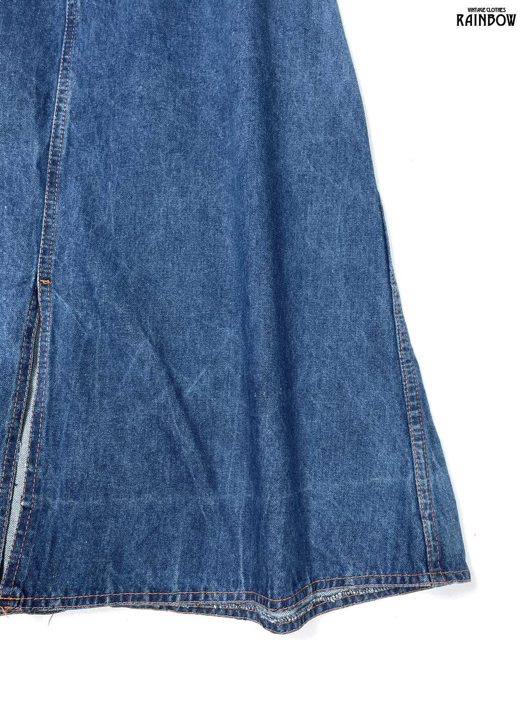 古着 TALONジップ 無地 デニム 膝丈 スカート 紺 (btu2601006)