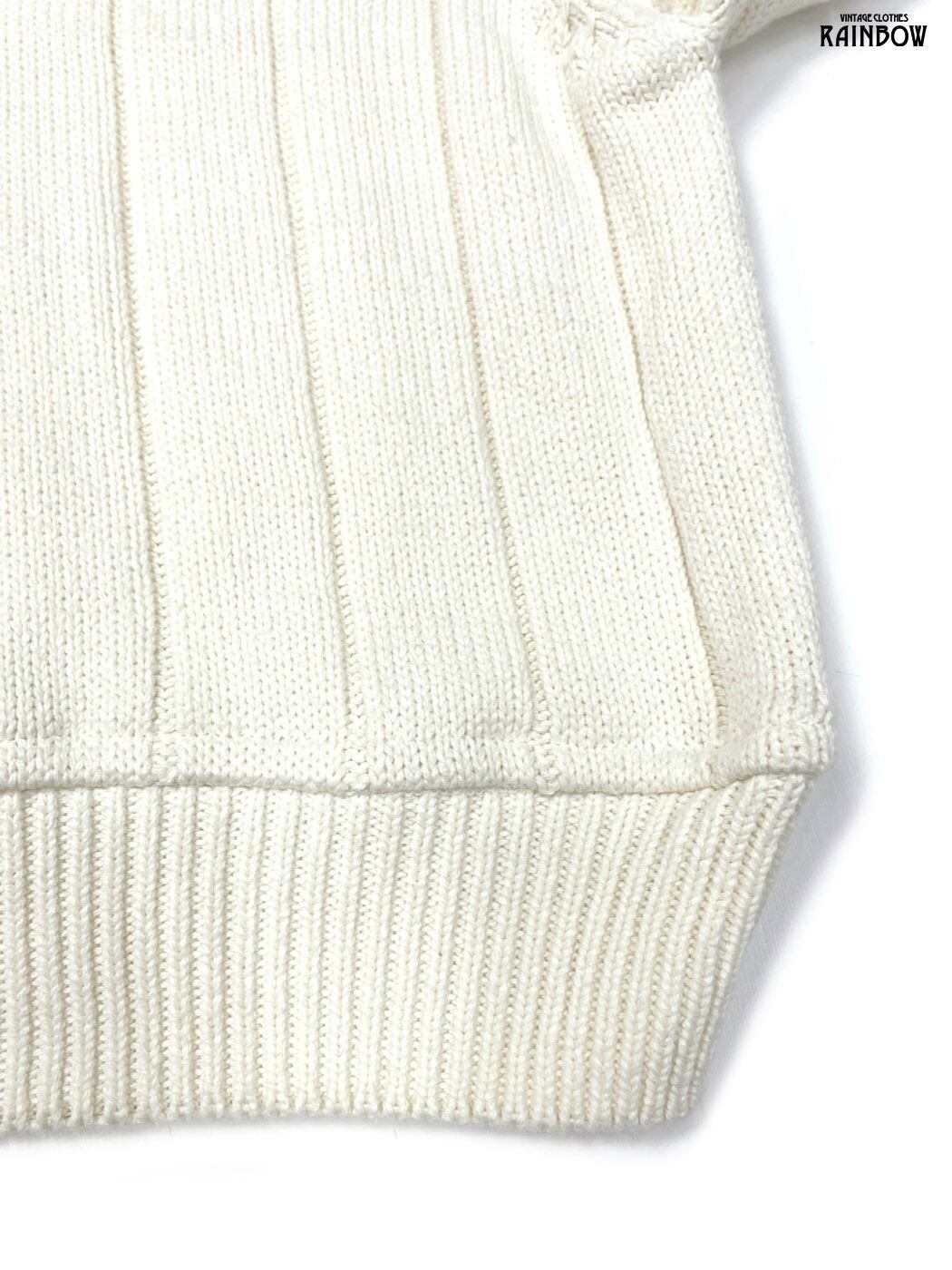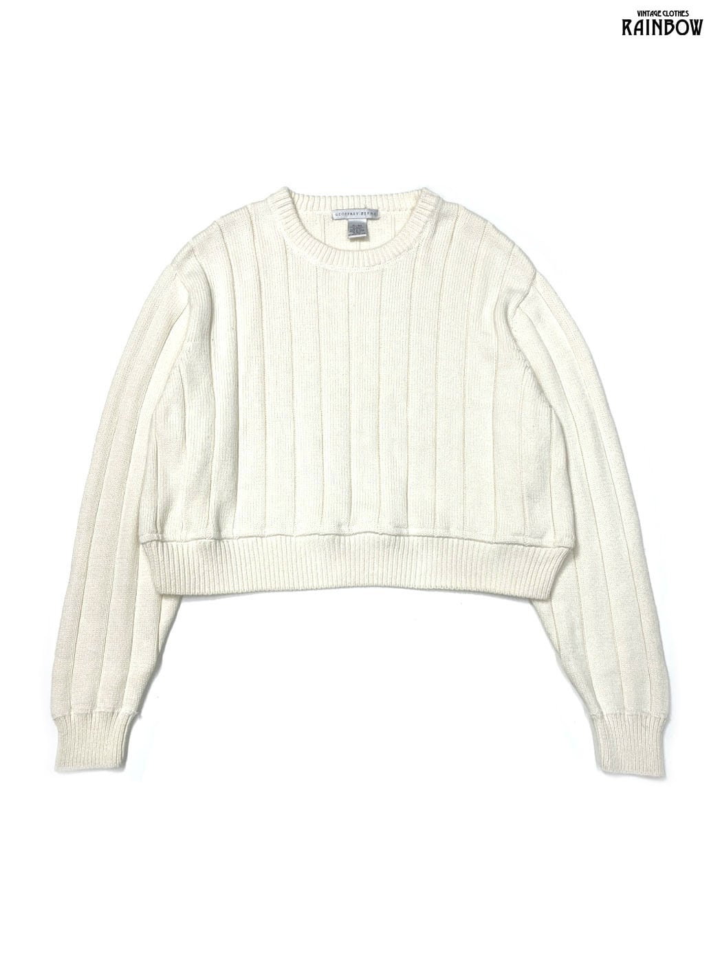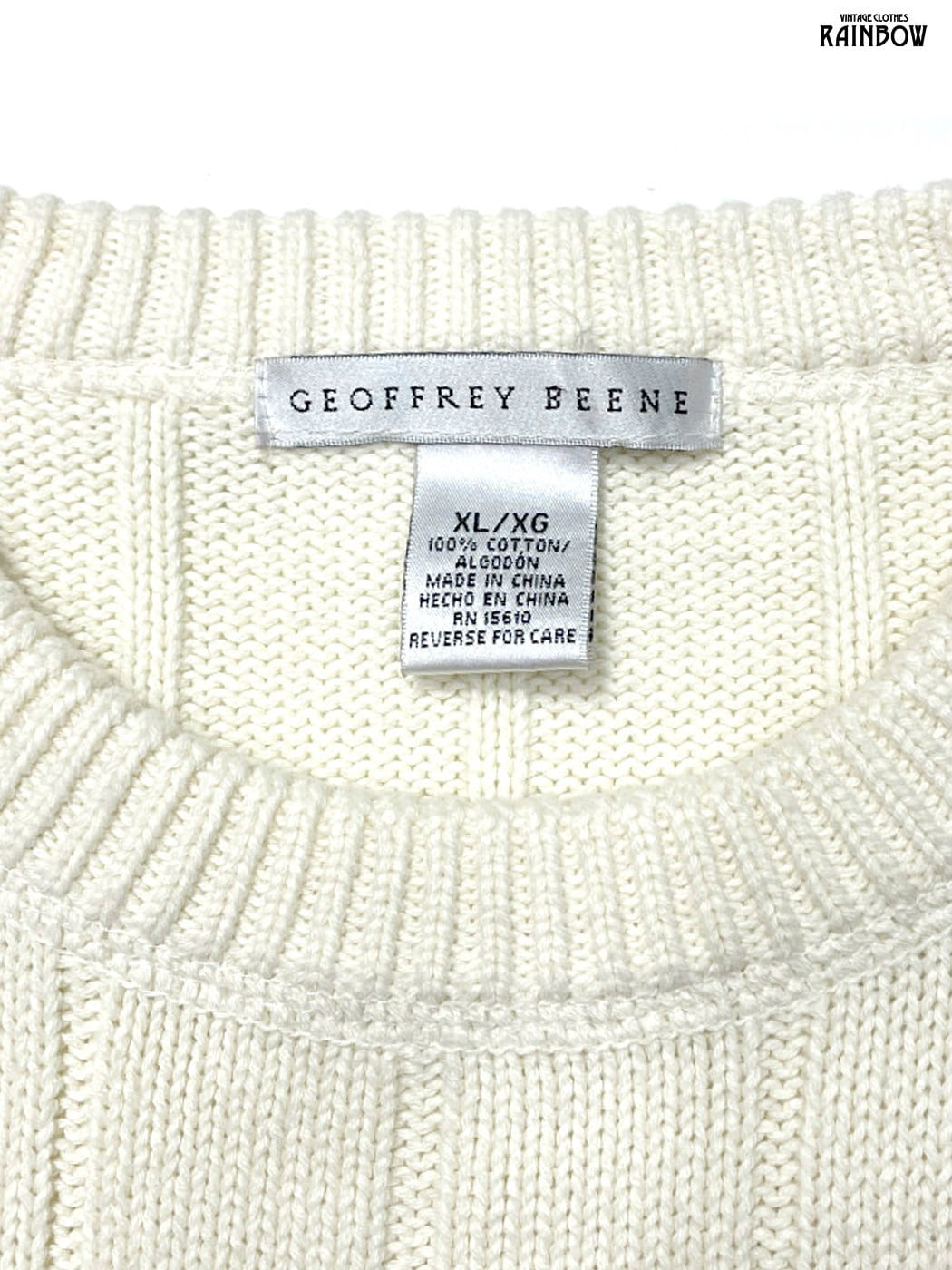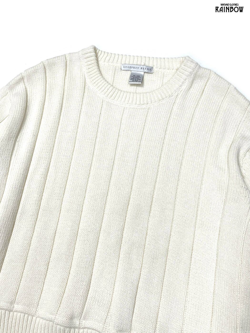 古着 GEOFFREY BEENE 無地 長袖 コットン ニット セーター アイボリー 生成り (ttu2601053)
