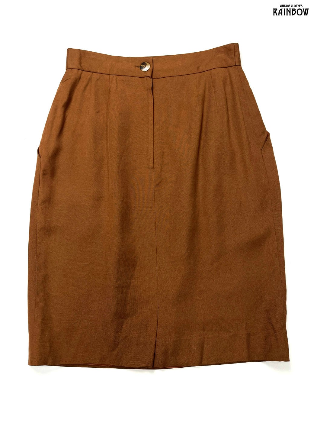 #スカート #膝丈 #タイト #茶 #無地 #スリット #シンプル #レーヨン #秋冬無地スカート