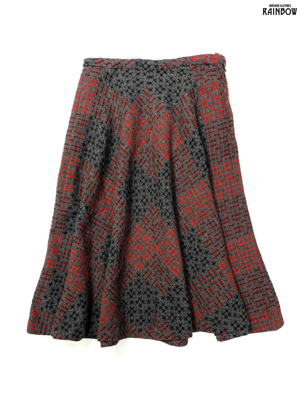 #スカート #膝丈 #フレア #赤 #グレー #チェック柄 #TALONジップ #ウール #秋冬チェック柄スカート