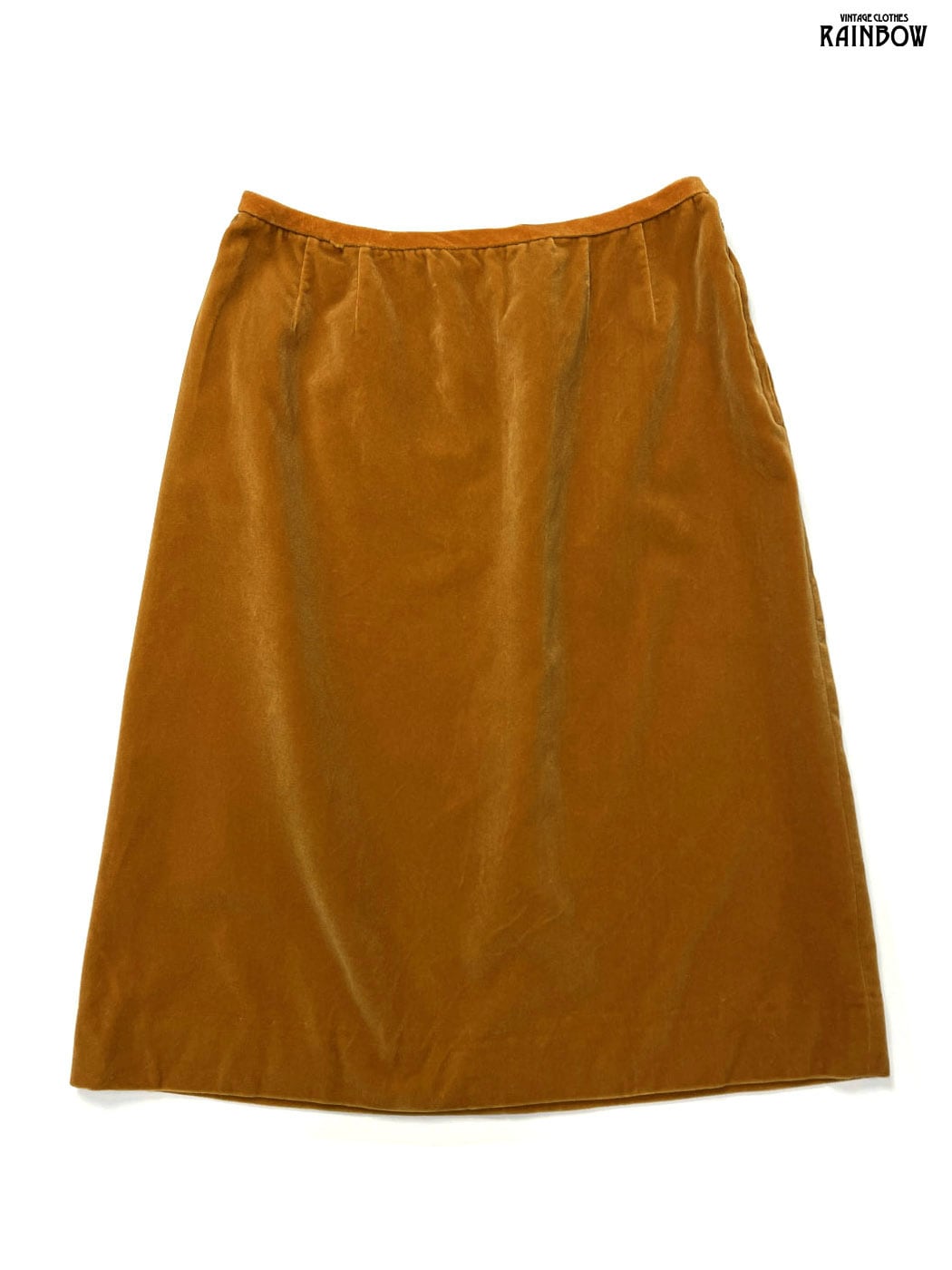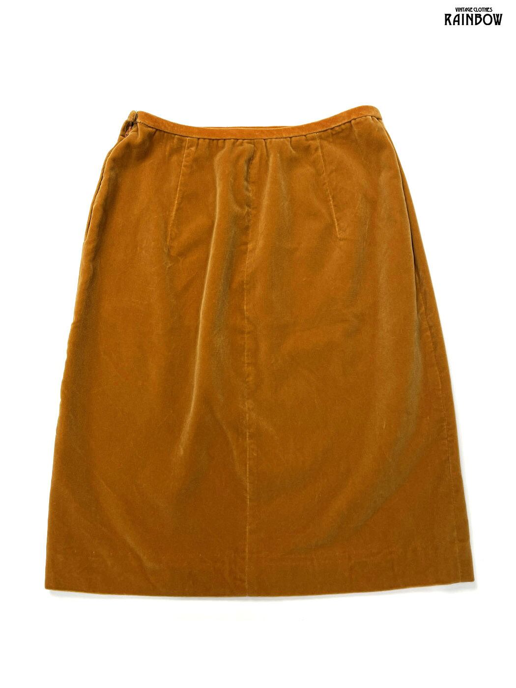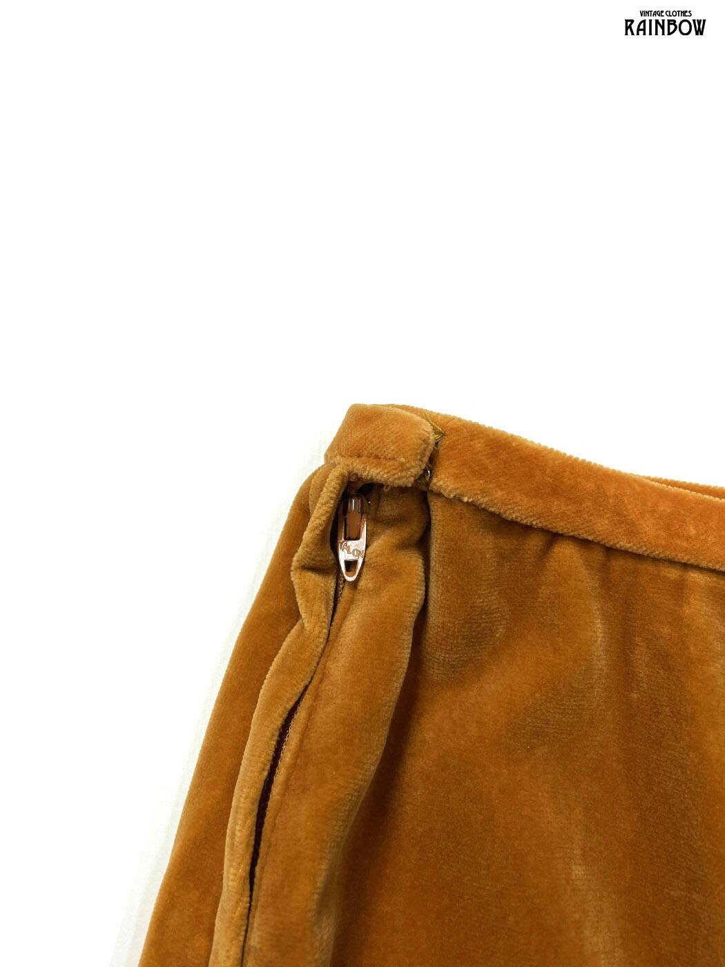 #スカート #膝丈 #茶 #オレンジ #無地 #TALONジップ #シンプル #ベロア #ベロアスカート