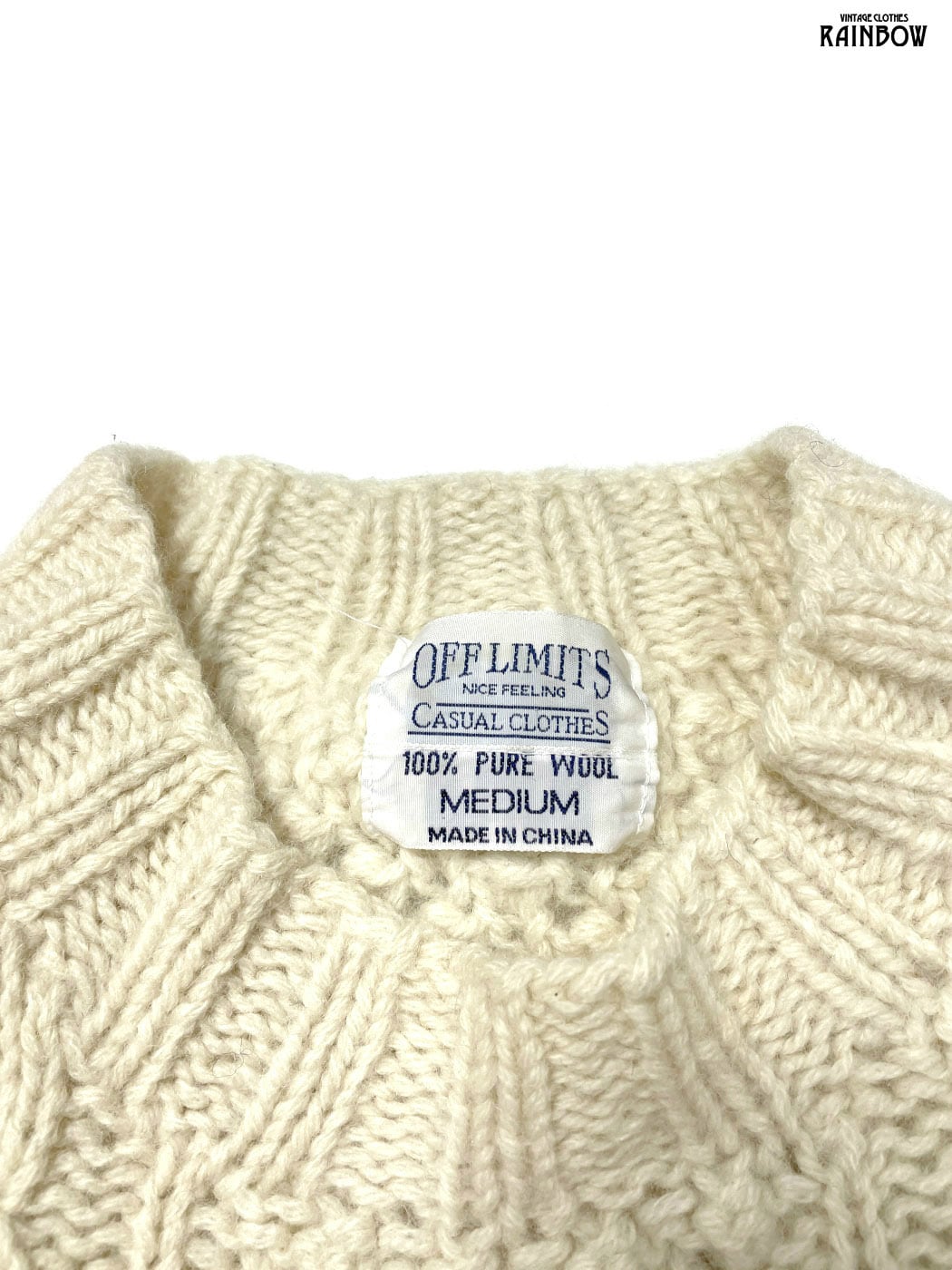 #ニット #セーター #ロングスリーブ #ベージュ #無地 #ケーブル編み #ナチュラル #ピュアウール #フィッシャーマンニット
