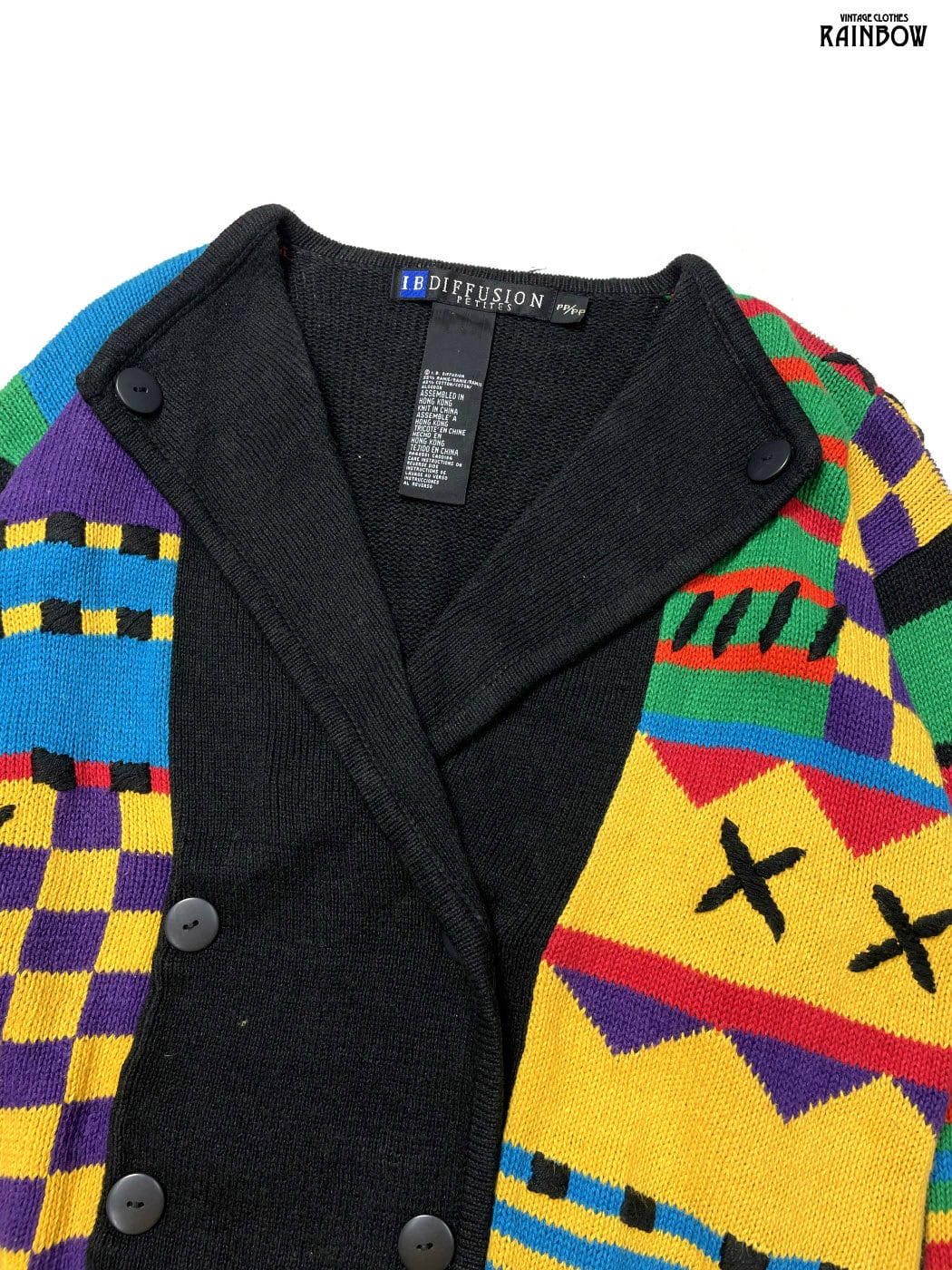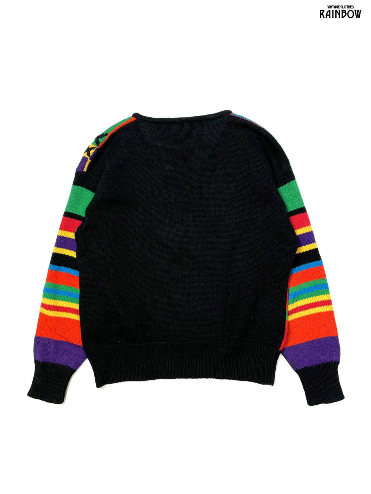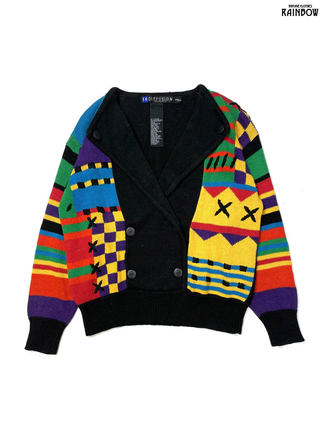 古着 I.B.DIFFUSION 総柄 コットン ラムウール 長袖 ニット カーディガン 黒 カラフル (ttu2512012)