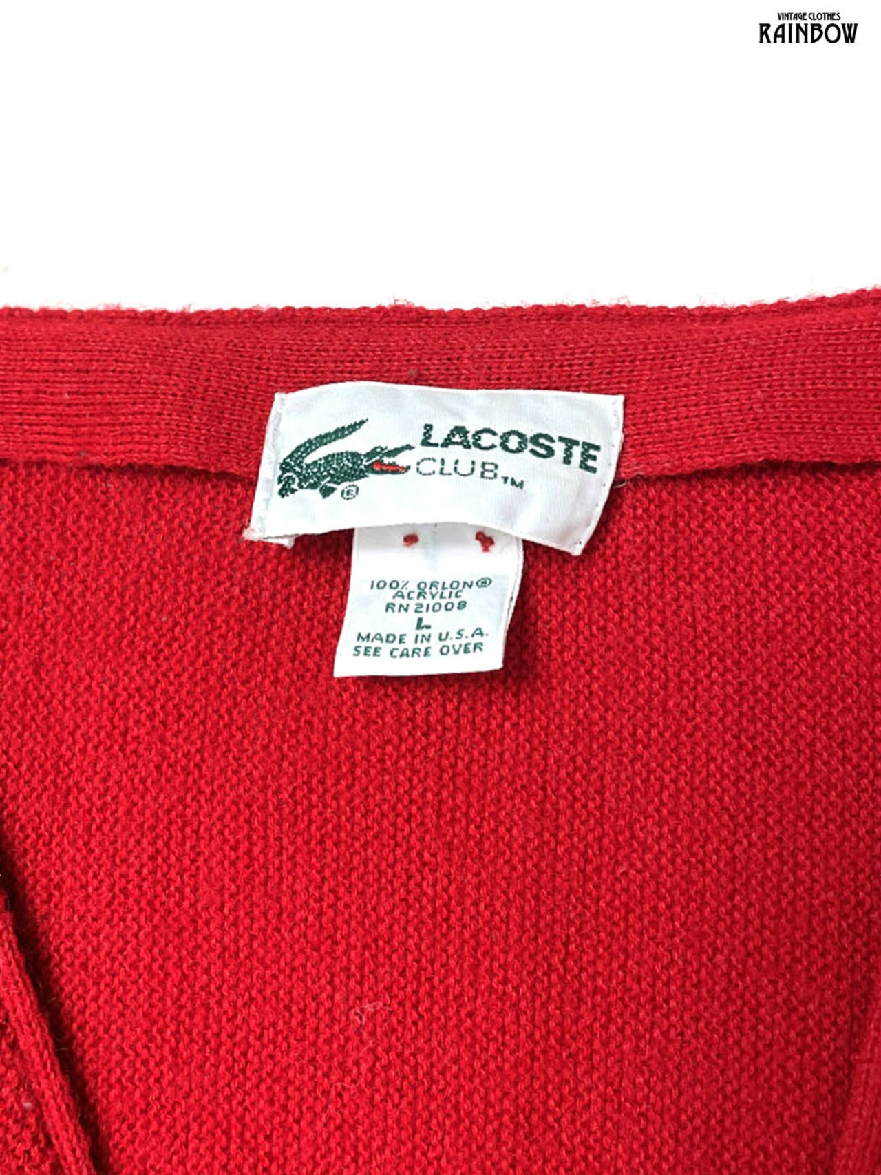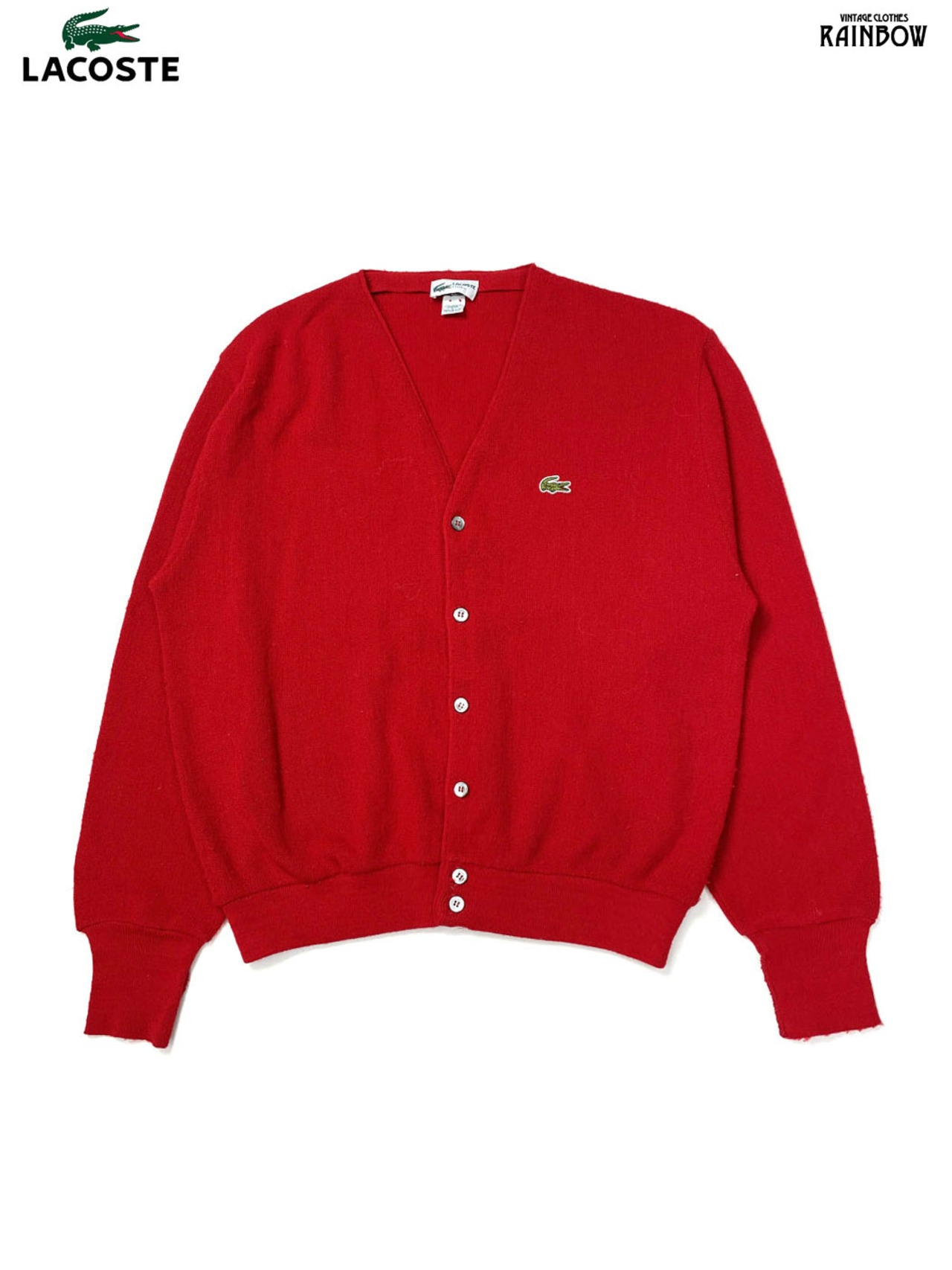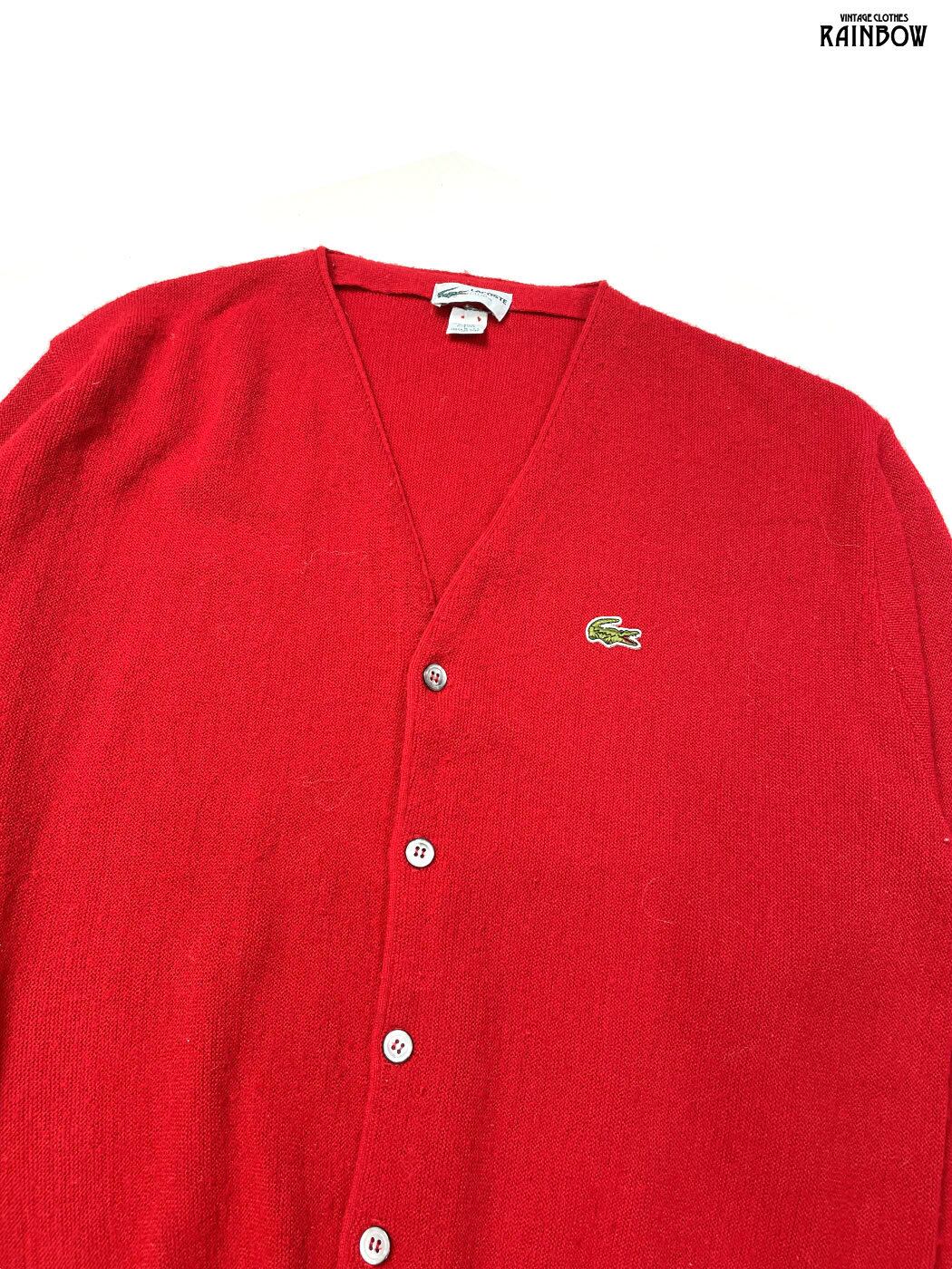 古着 LACOSTE ラコステ アメリカ製 無地 ワンポイント コットン 長袖 ニット カーディガン 赤 (ttu2512016)