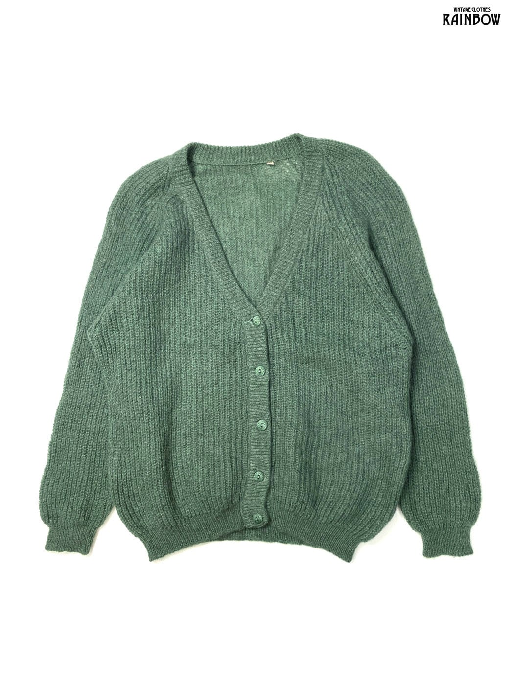 #ニット #カーディガン #ロングスリーブ #緑 #無地 #シンプル #無地カーディガン