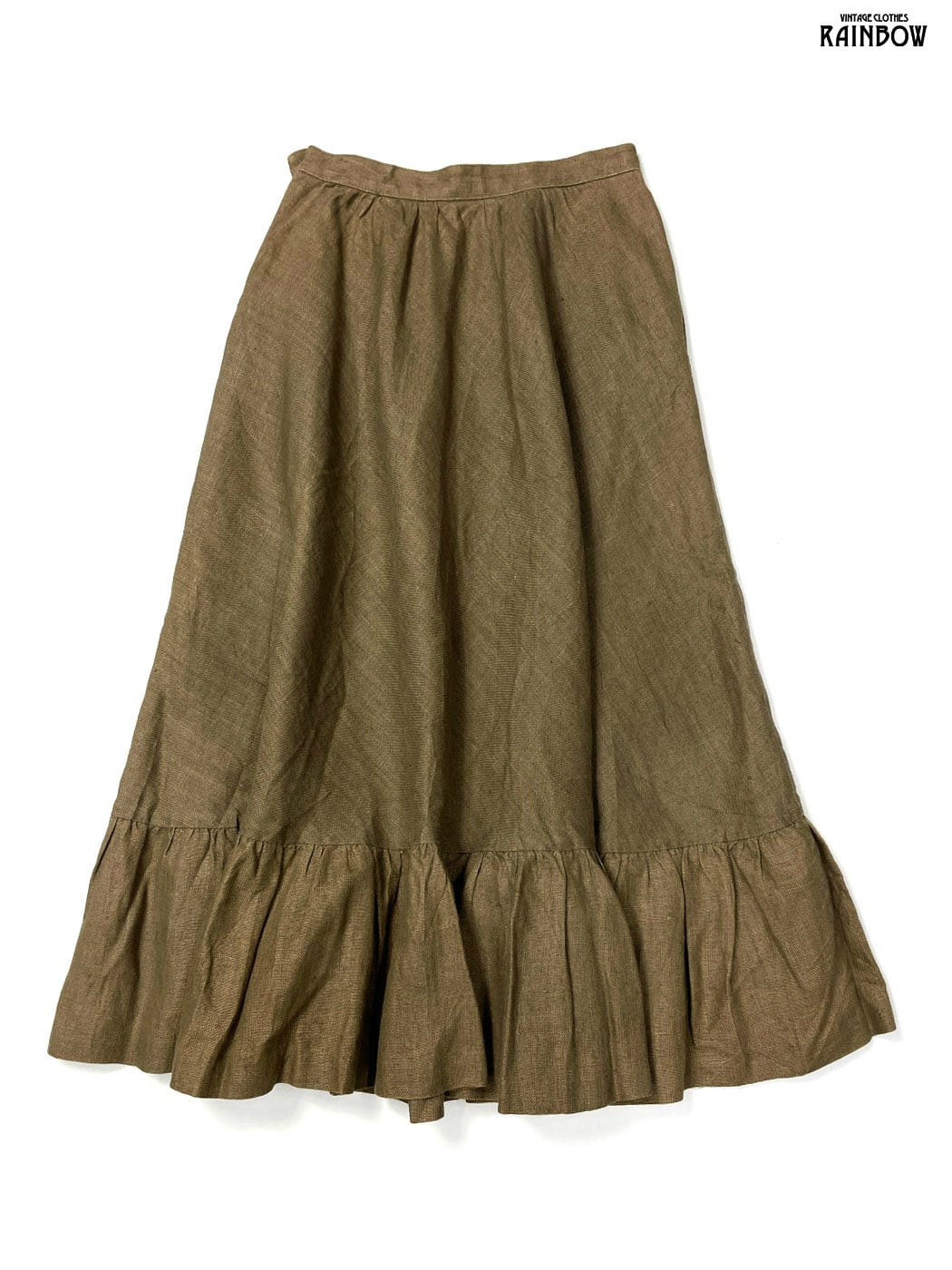 #スカート #ロング丈 #フレア #茶 #カーキ #無地 #シンプル #リネン #レーヨン #リネンスカート