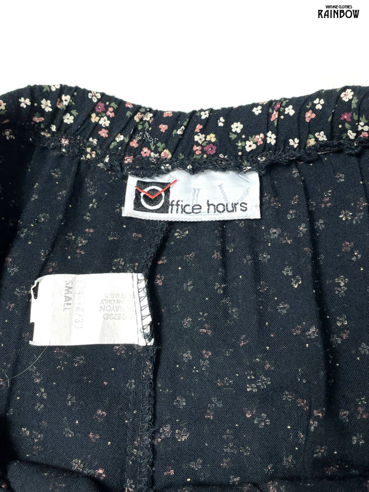 #パンツ #ロング丈 #黒 #アメリカ製 #花柄 #リボン #クラシック #レーヨン #柄パンツ