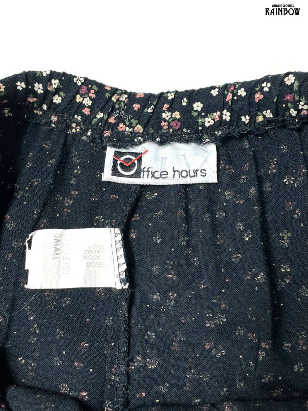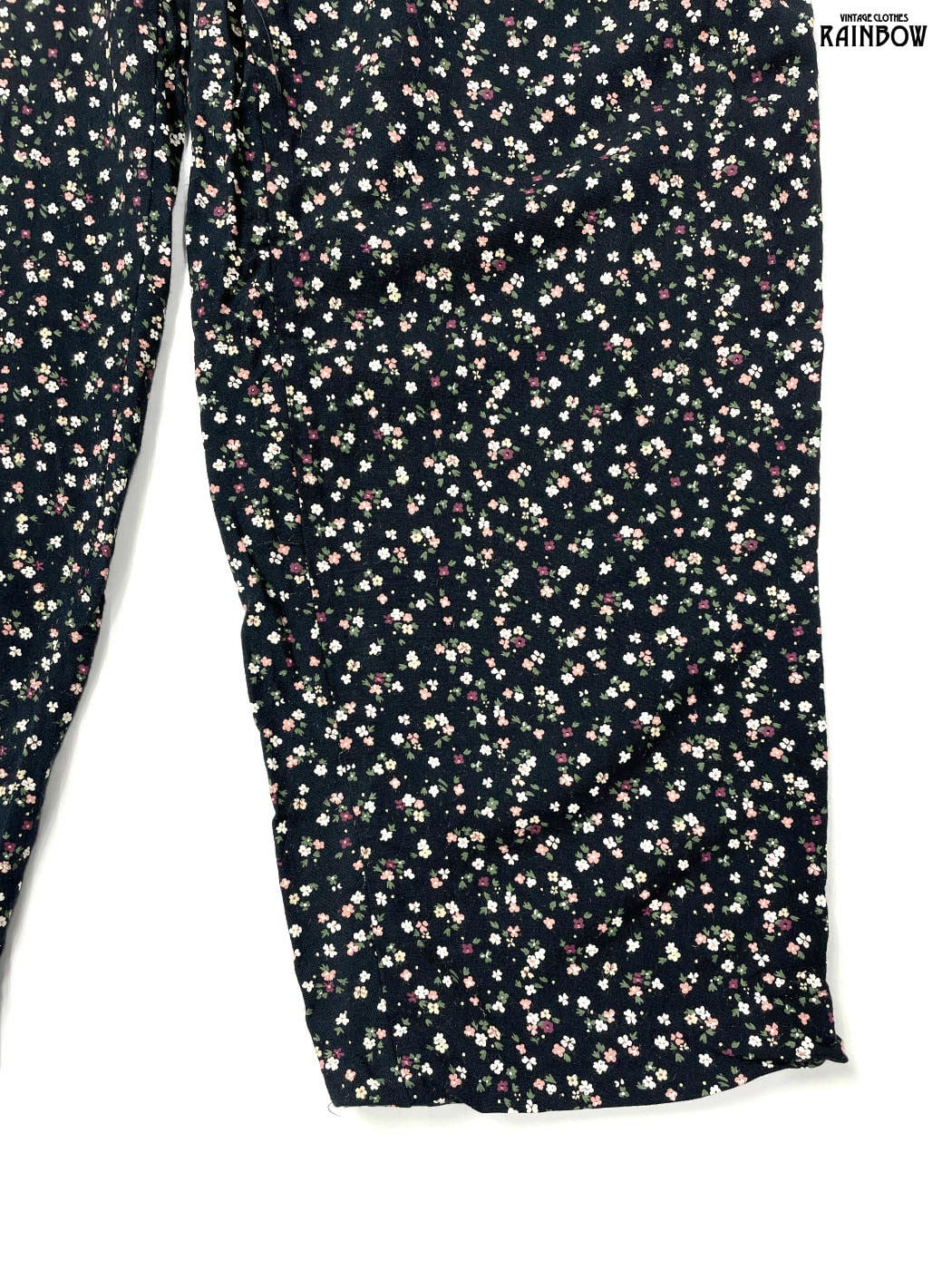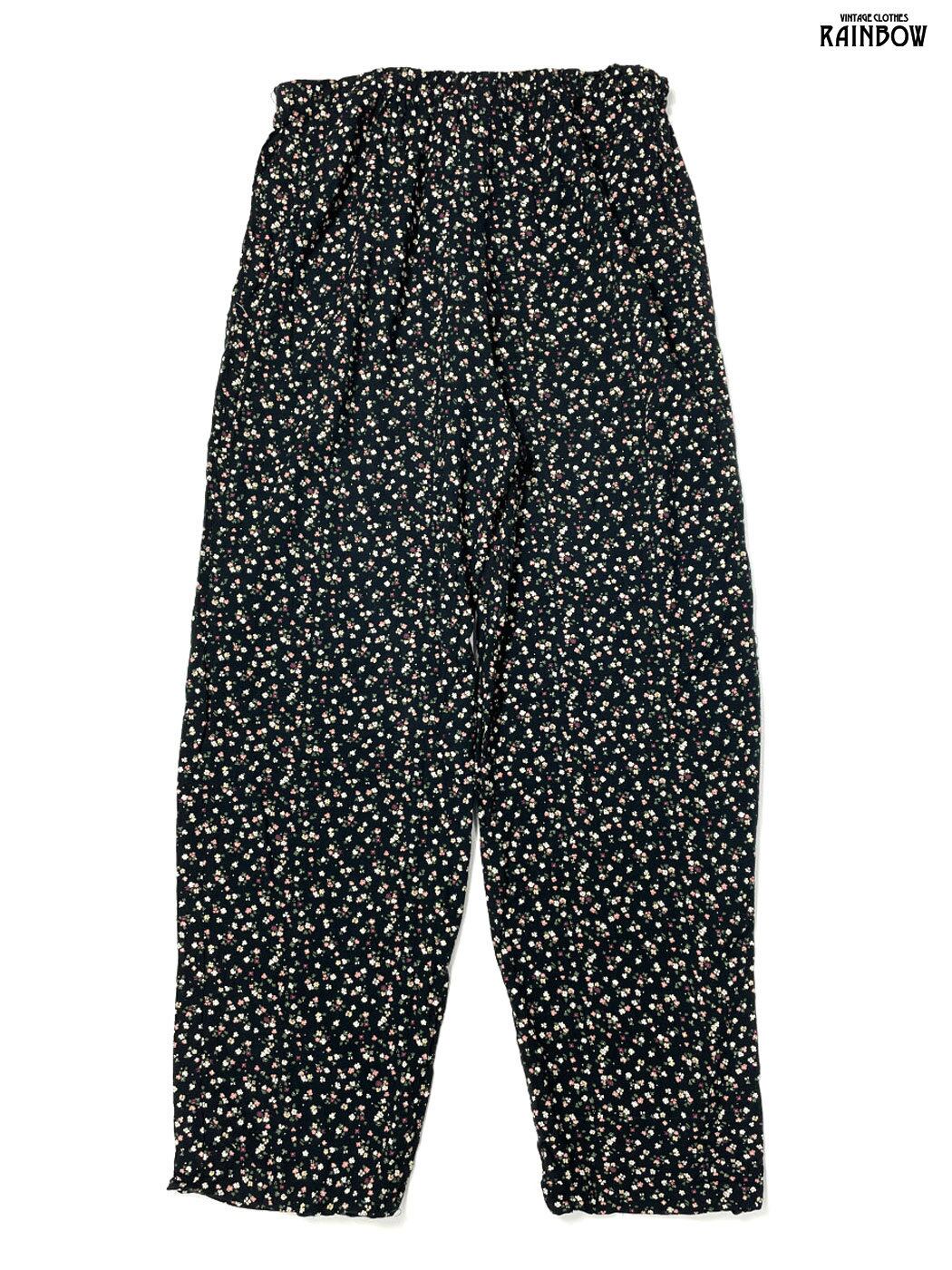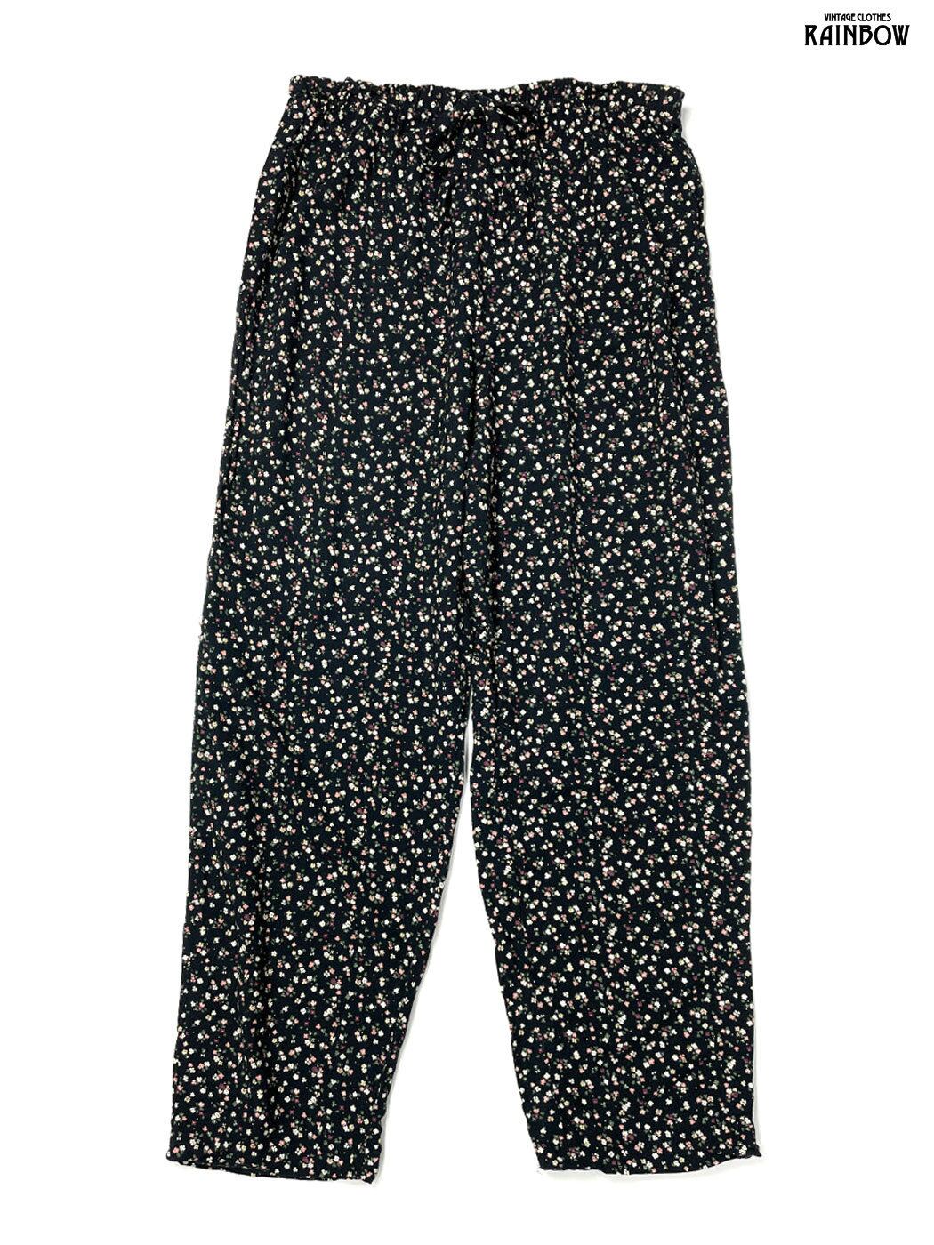 古着 アメリカ製 リボン 花柄 ロング丈 パンツ 黒 (btu2601027)