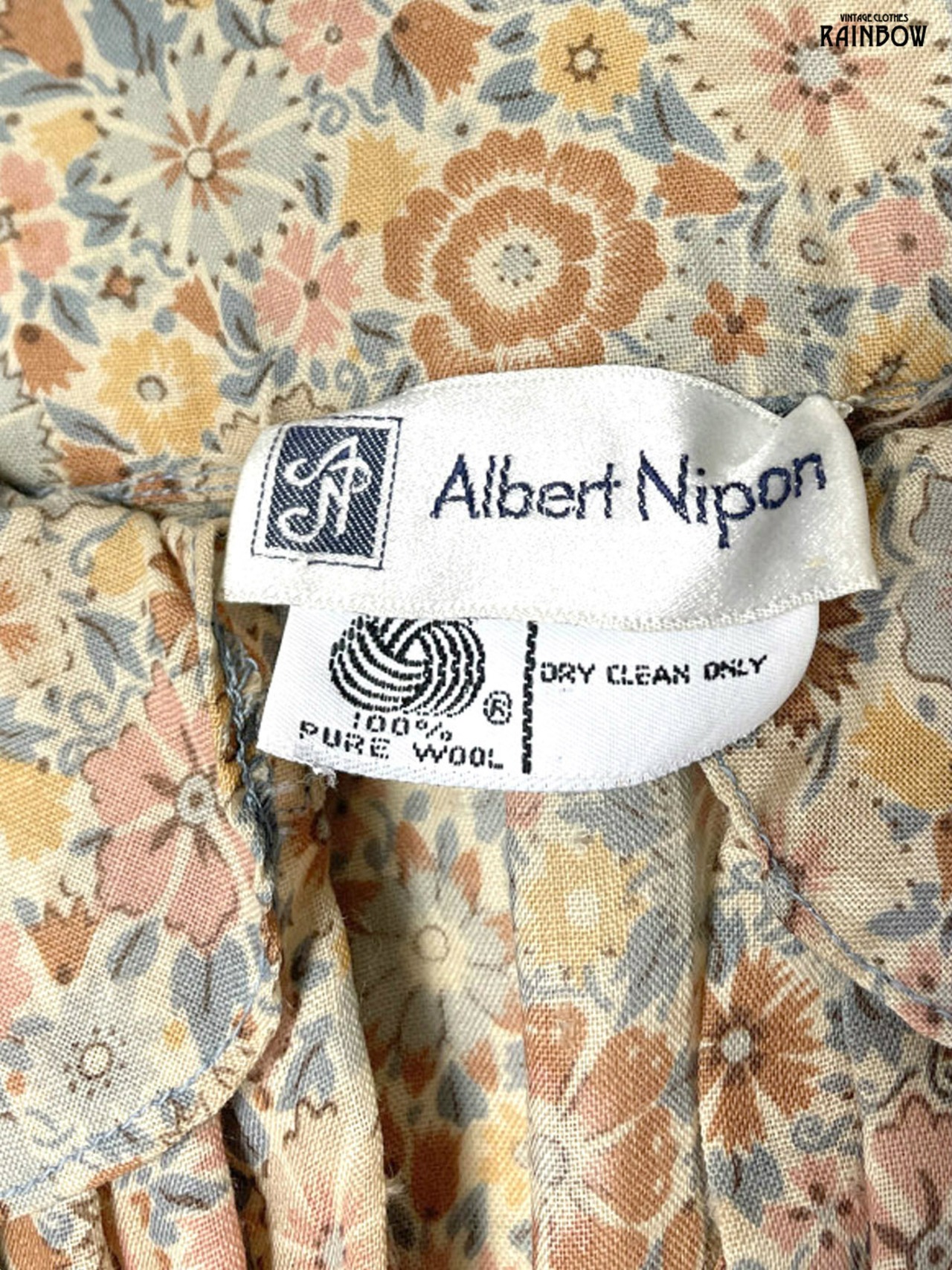 古着 Albert Nipon 花柄 ピュアウール100% ロング丈 長袖 ワンピース ベージュ (otu2601022)