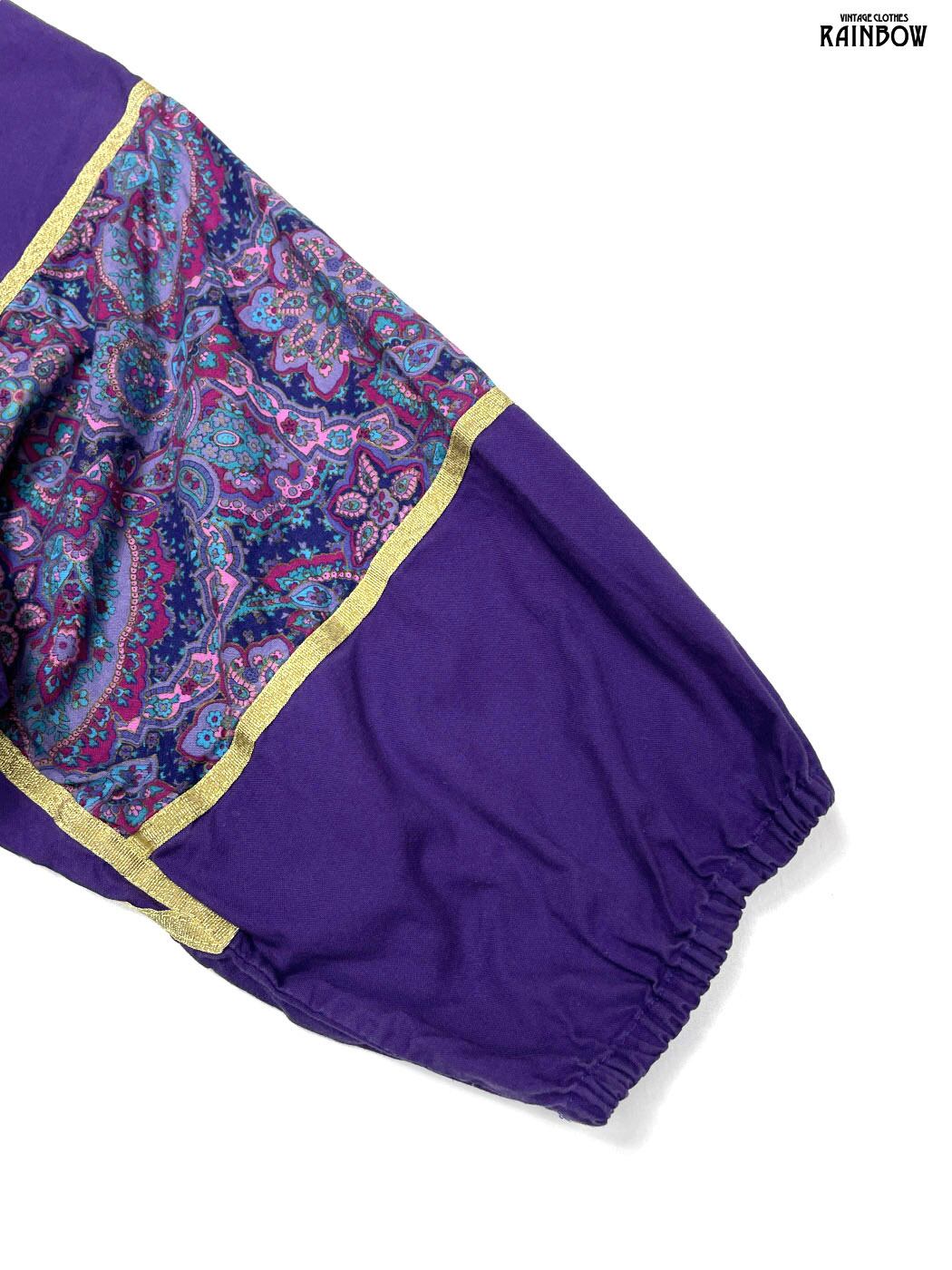 古着 総柄 ペイズリー柄 コットン ロング丈 七分袖 ワンピース 紫 (otu2601029)