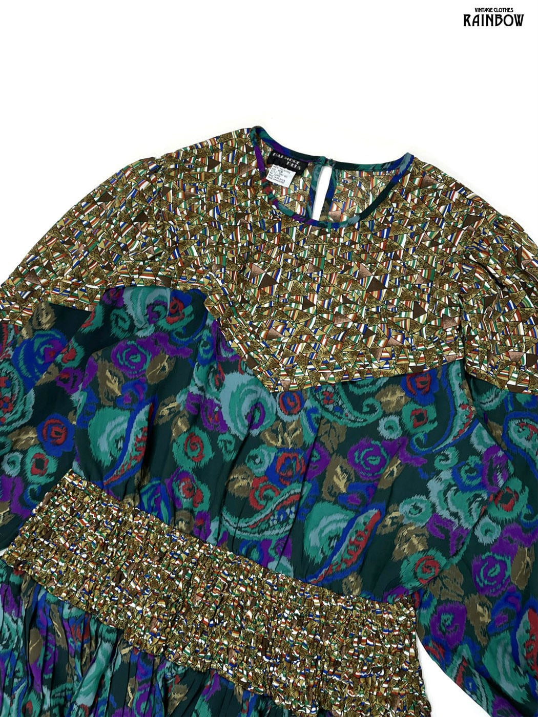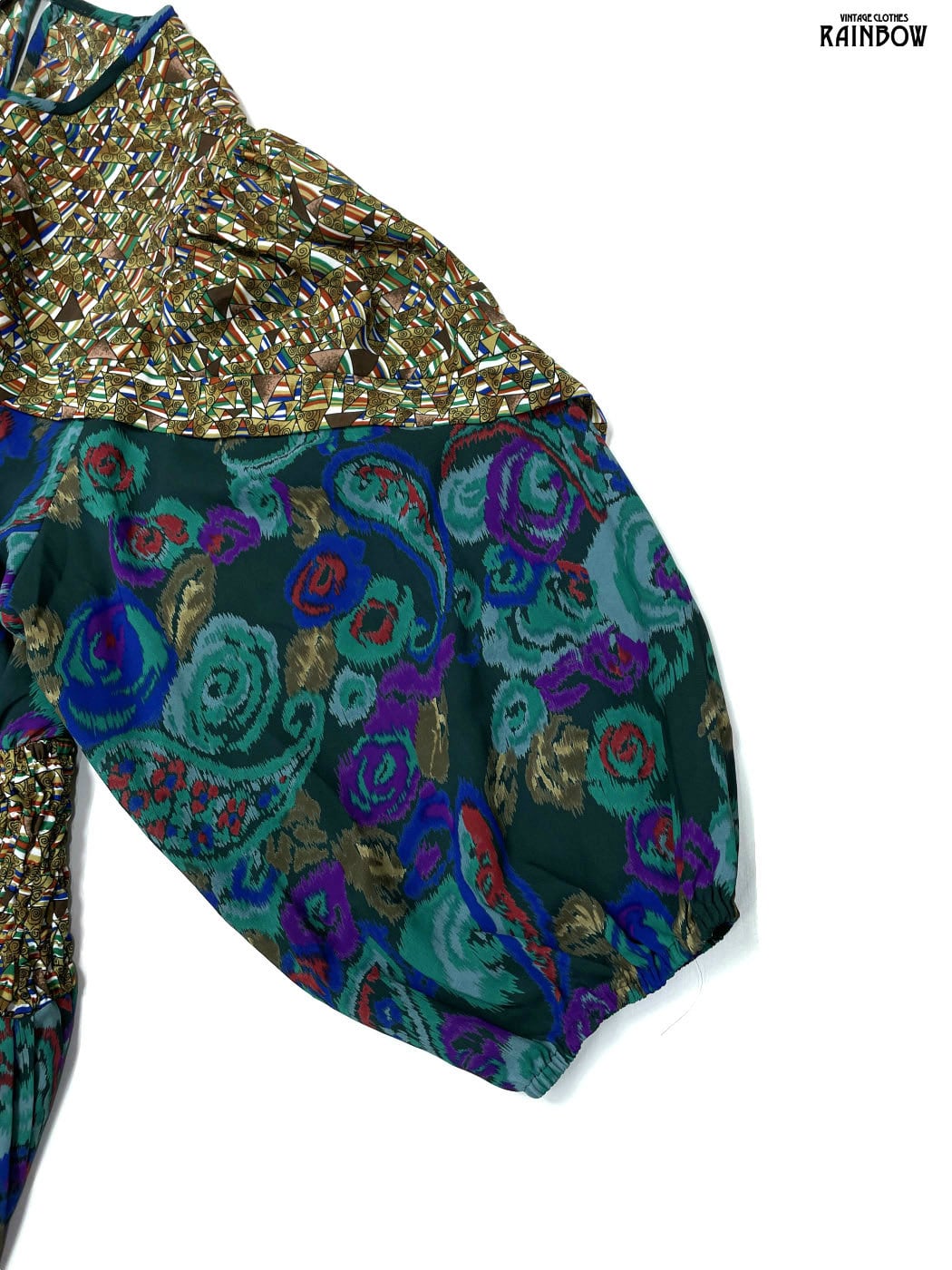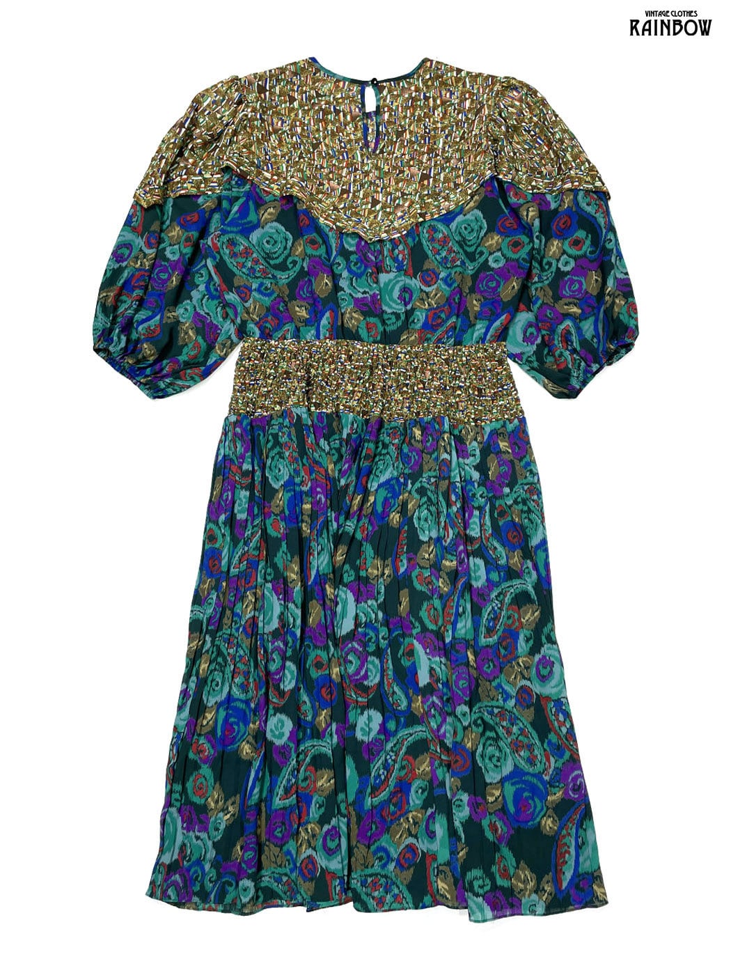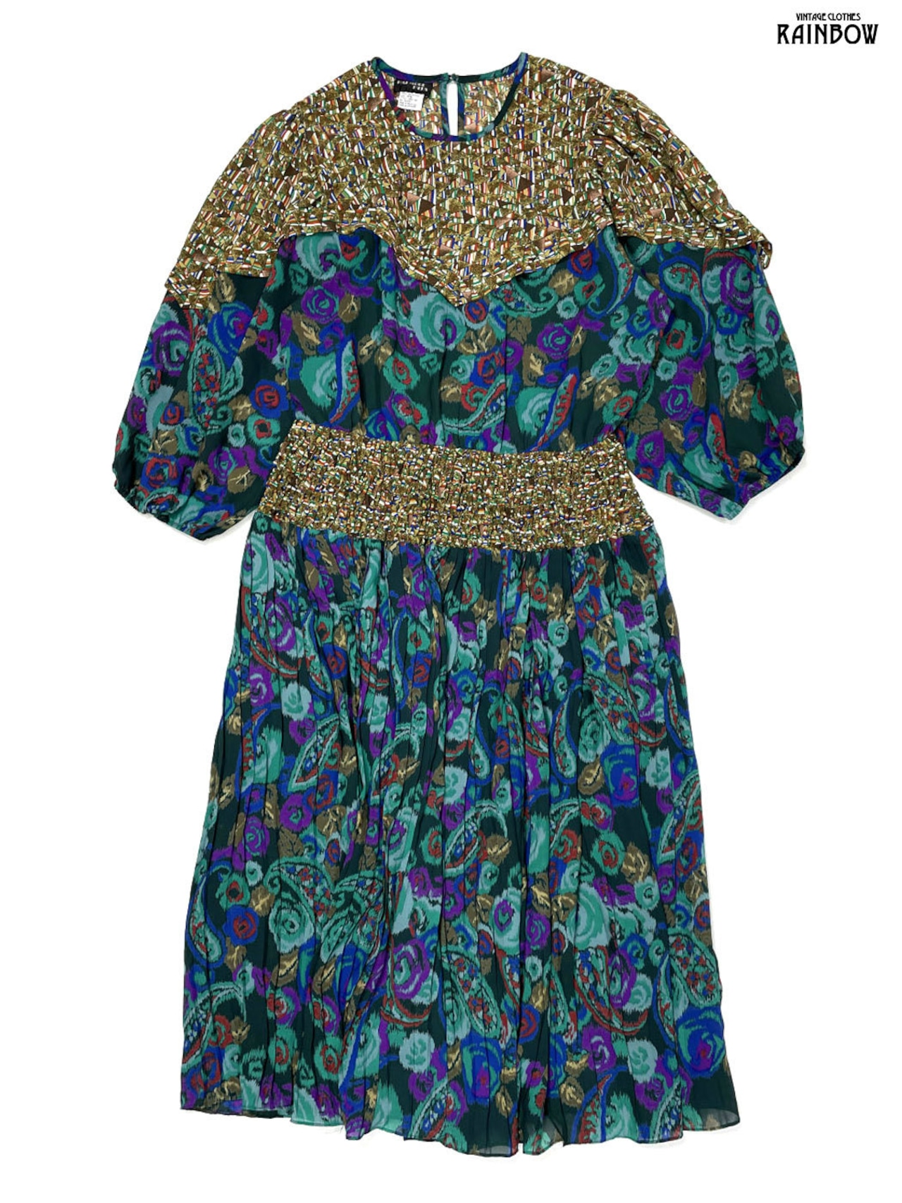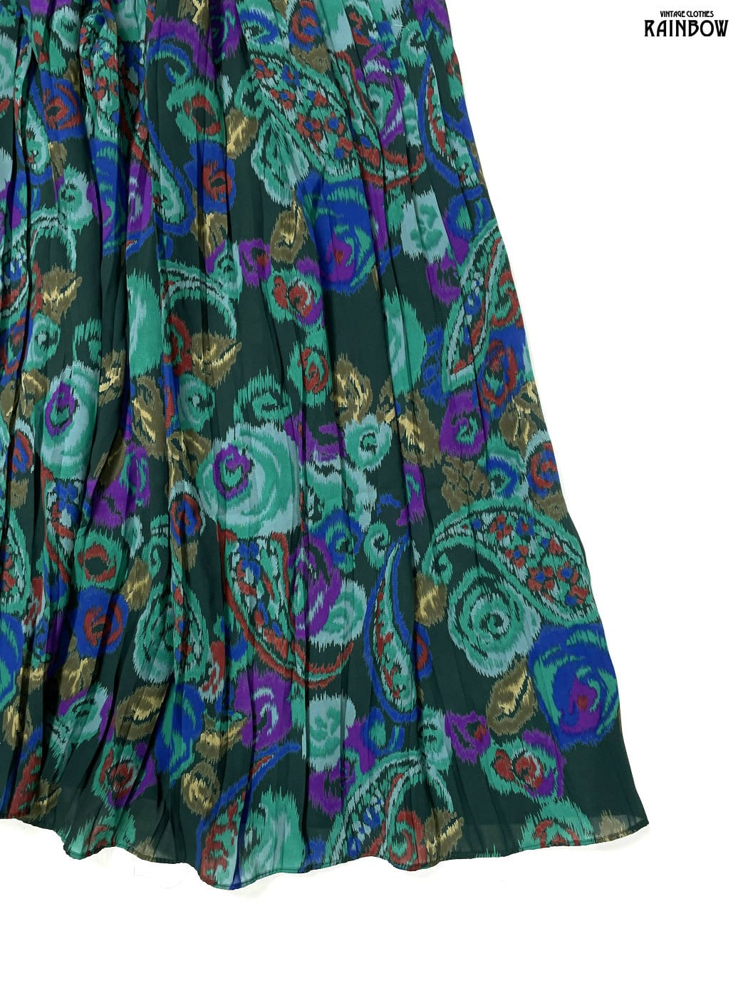 #ワンピース #ロングスリーブ #ロング丈 #プリーツ #緑 #総柄 #クラシック #長袖総柄ワンピース