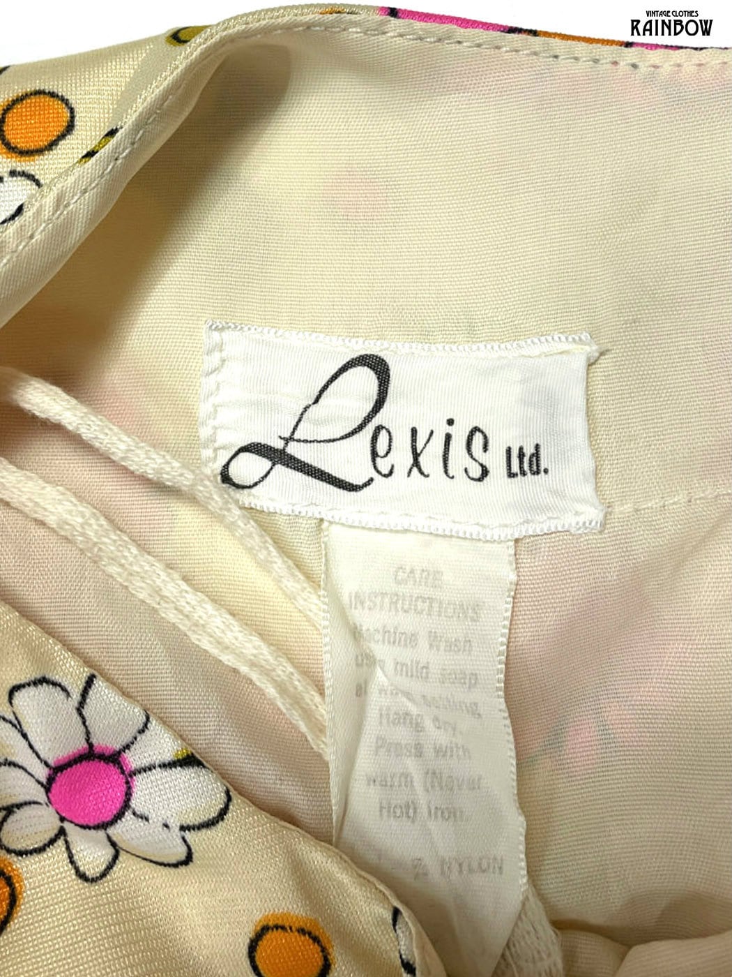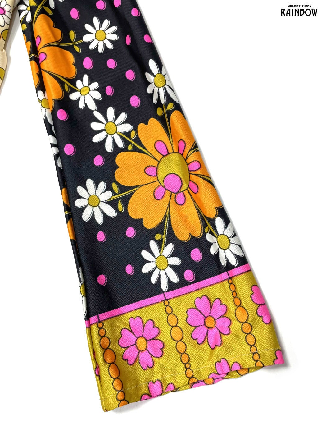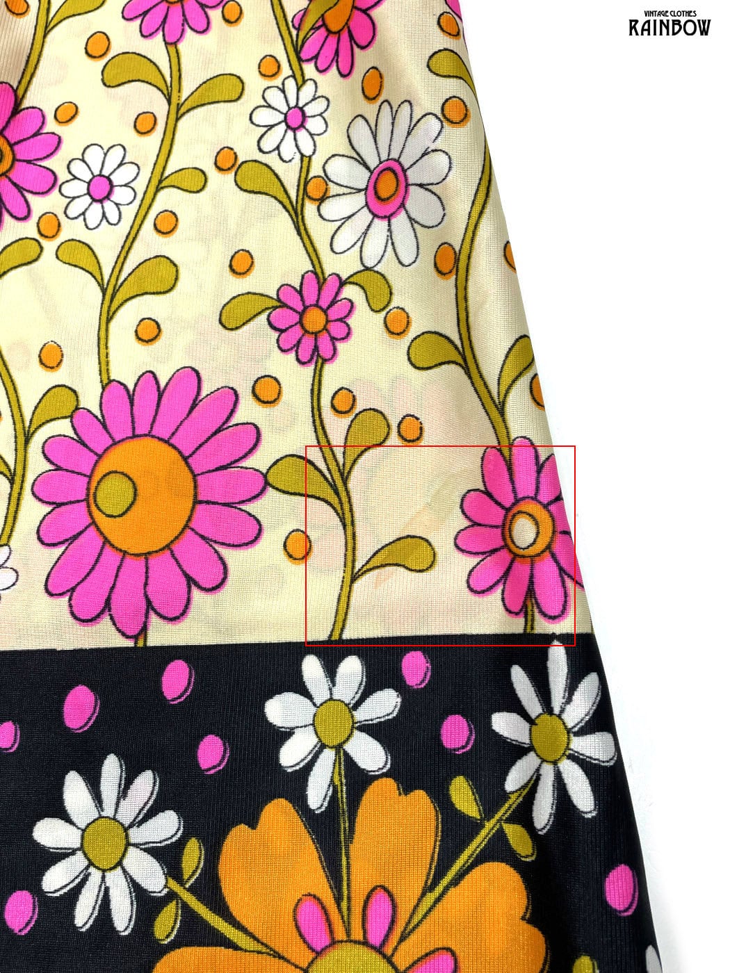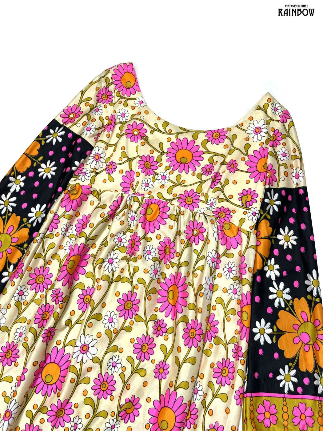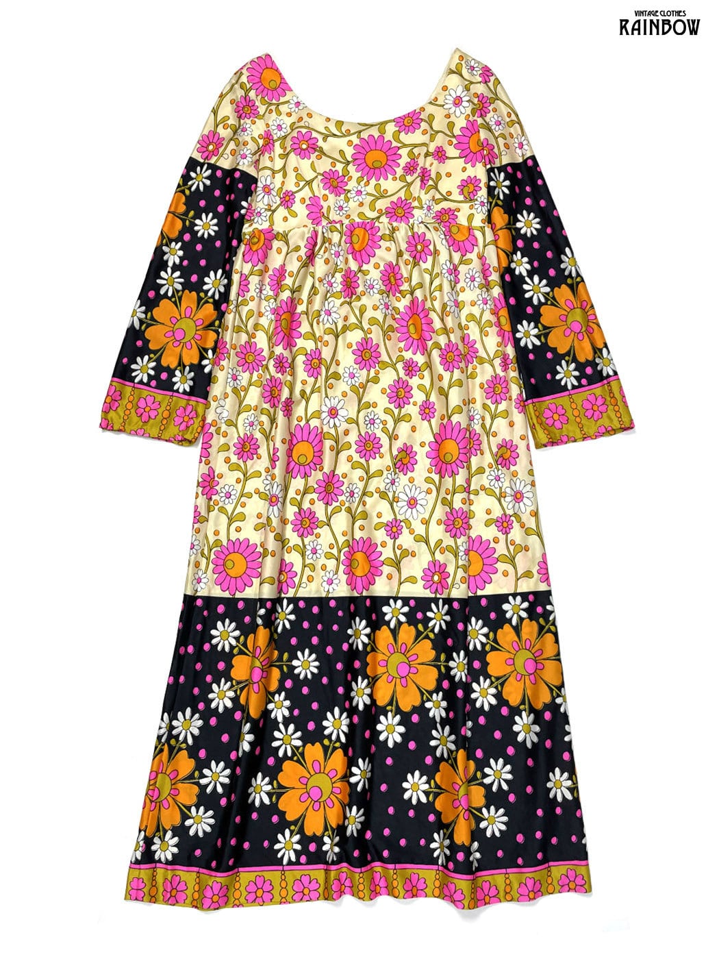 古着 花柄 ナイロン ロング丈 長袖 ワンピース ピンク ベージュ (otu2601037)