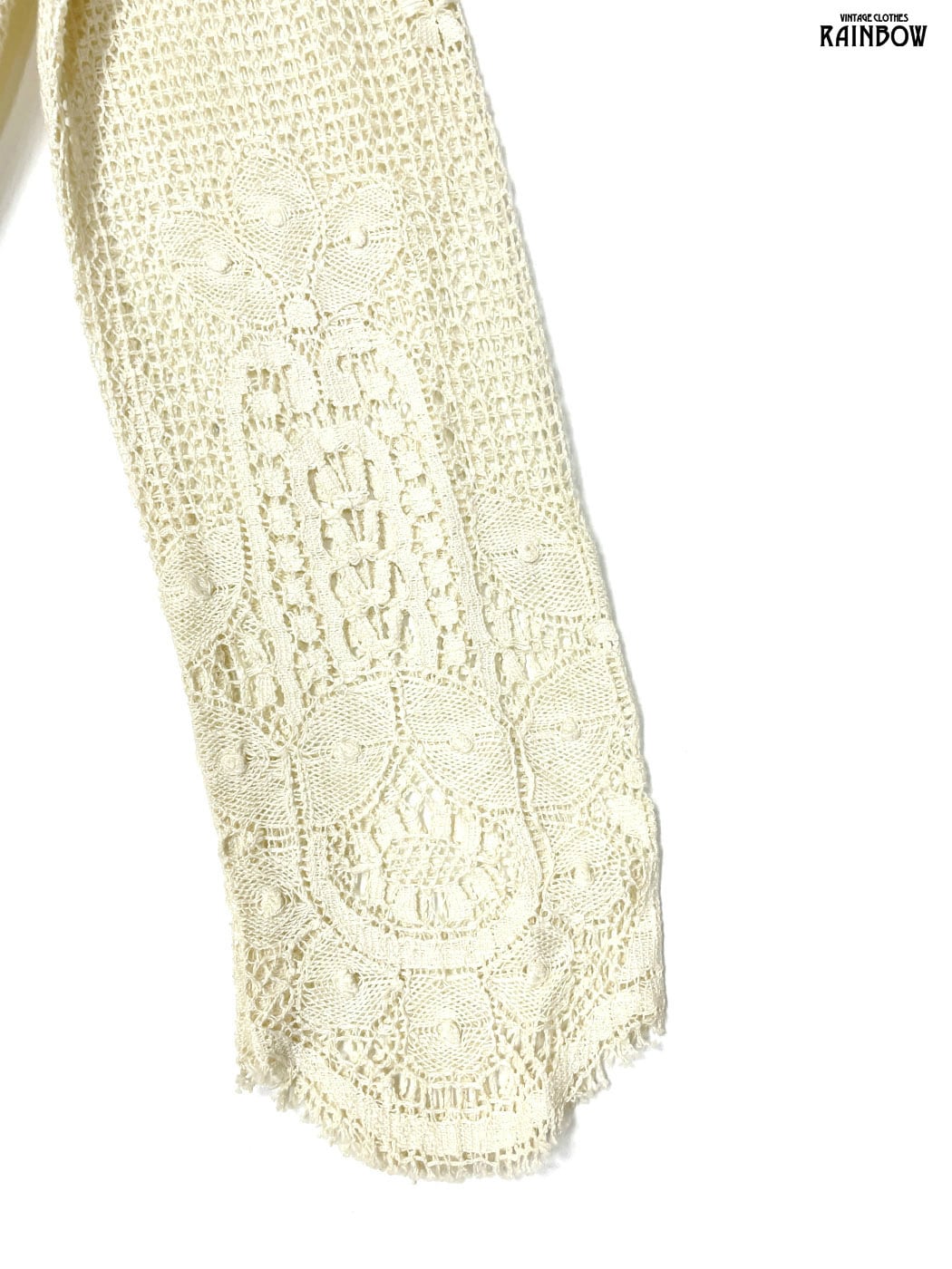 古着 アメリカ製 ユニオンメイド 無地 総レース ロング丈 長袖 ワンピース ベージュ 生成り (otu2601042)