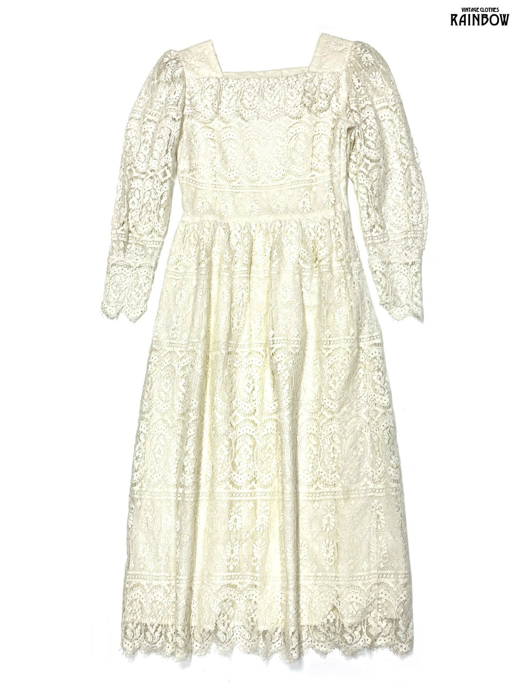 #ワンピース #ロングスリーブ #ロング丈 #ウエスト切り替え #ベージュ #生成り #無地 #アメリカ製 #ナチュラル #総レース #総レースワンピース