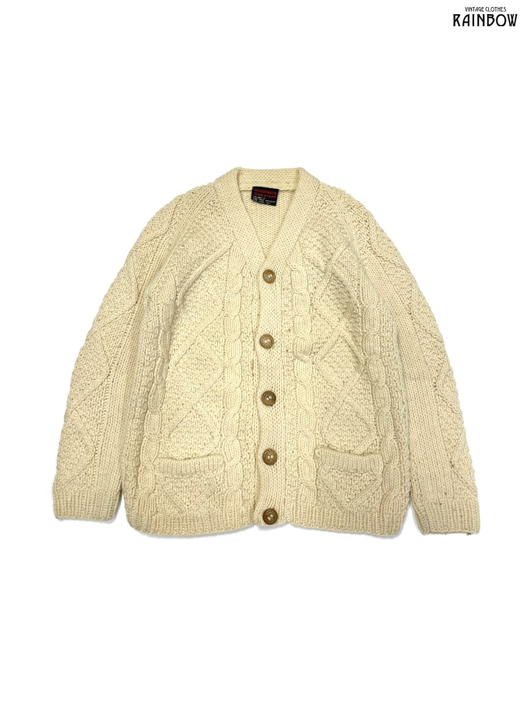 #ニット #カーディガン #ロングスリーブ #ベージュ #無地 #vネック #前開き #ポルトガル製 #ハンドニット #アラン #ナチュラル #ヴィンテージ #ウール #ピュアウール #無地カーディガン