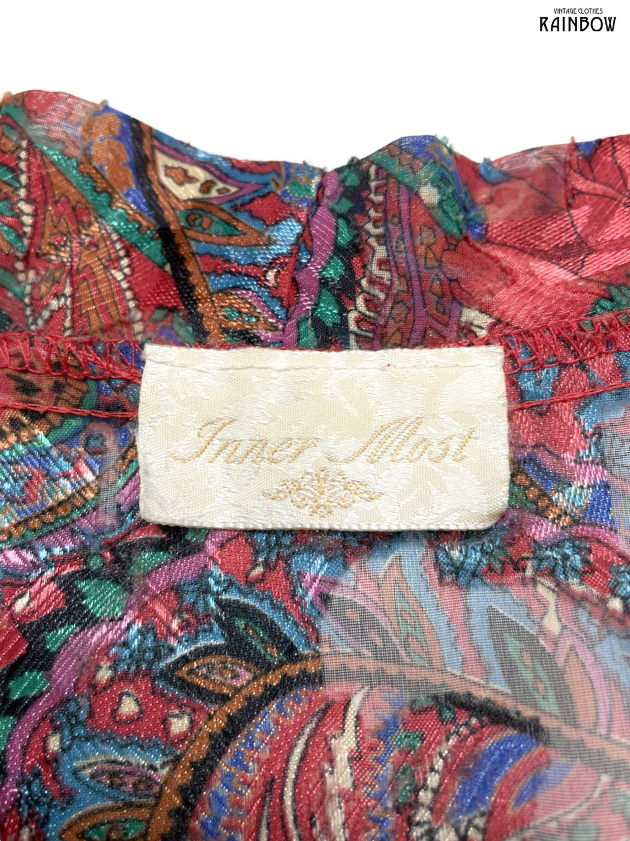 #アウター #羽織り #ロングスリーブ #赤 #緑 #花柄 #リボン #ベルト付き #前開き #ガーリー #ヴィンテージ #柄羽織り