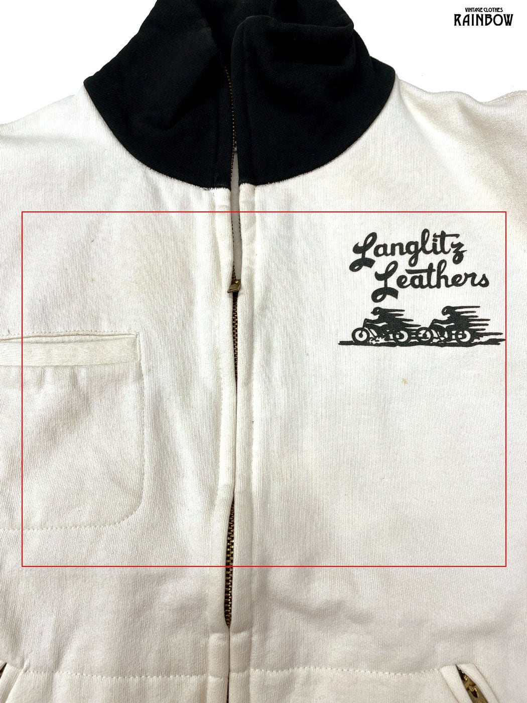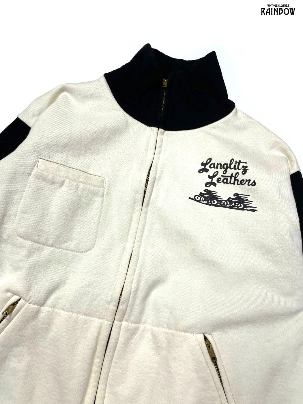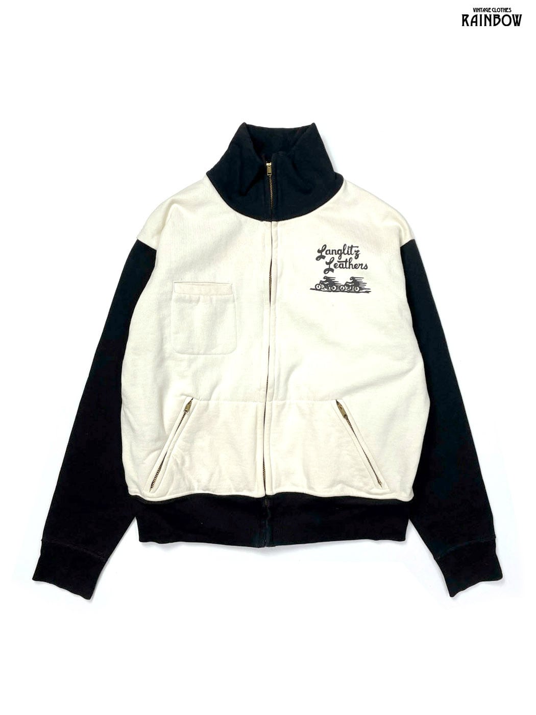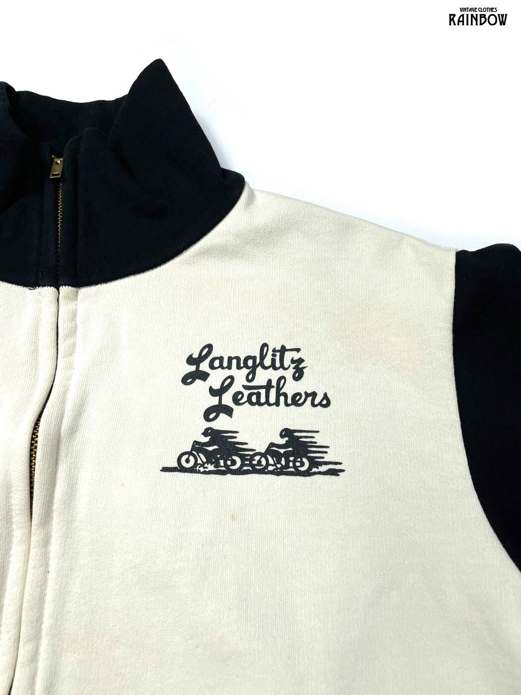 古着 Langlitz Leathers ラングリッツレザー アメリカ製 ブランドロゴ バックプリント コットン100% 長袖 スウェット アウター ライトジャケット ベージュ (ttu2512034)