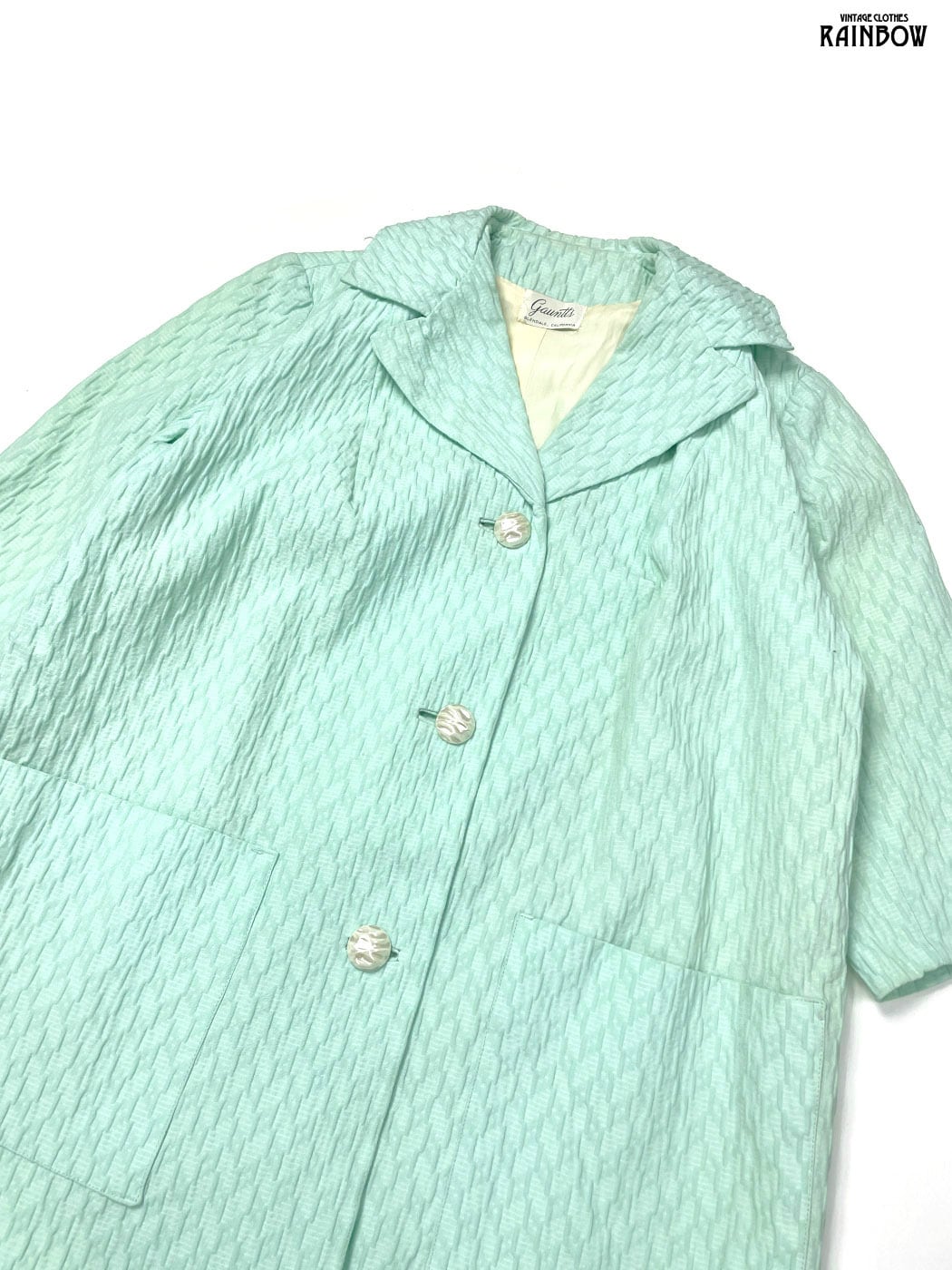 古着 シワ加工 無地 コットン 長袖 アウター ライトコート ライトグリーン (ttu2601077)