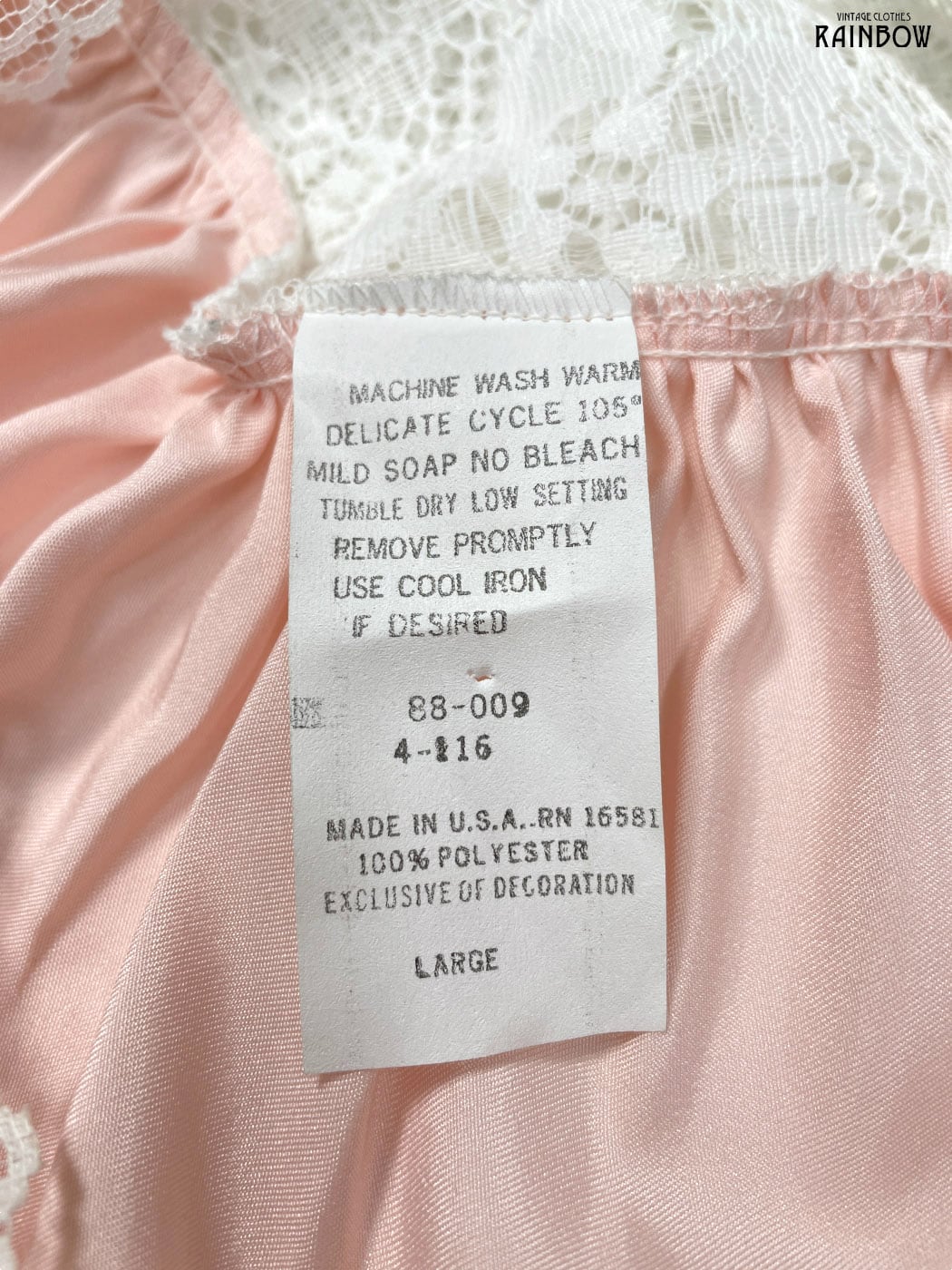 古着 アメリカ製 フリル レース 無地 長袖 ブラウス サーモンピンク (ttu2601080)