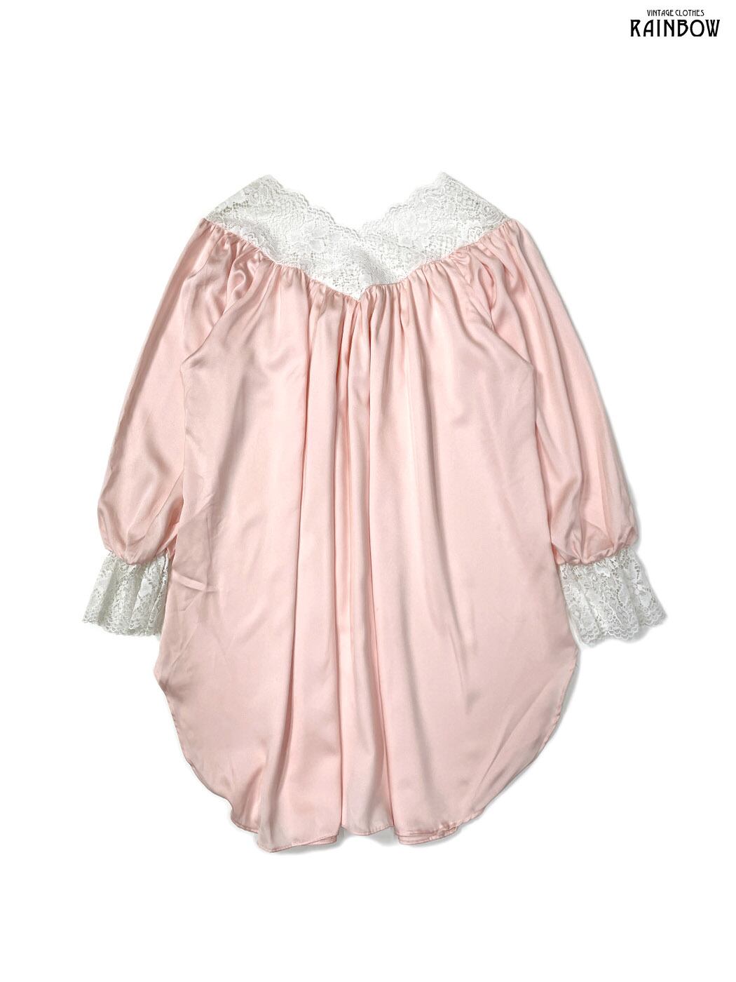 #ブラウス #bブラウス #ロングスリーブ #ピンク #無地 #アメリカ製 #フリル #レース #ガーリー #レースシャツ