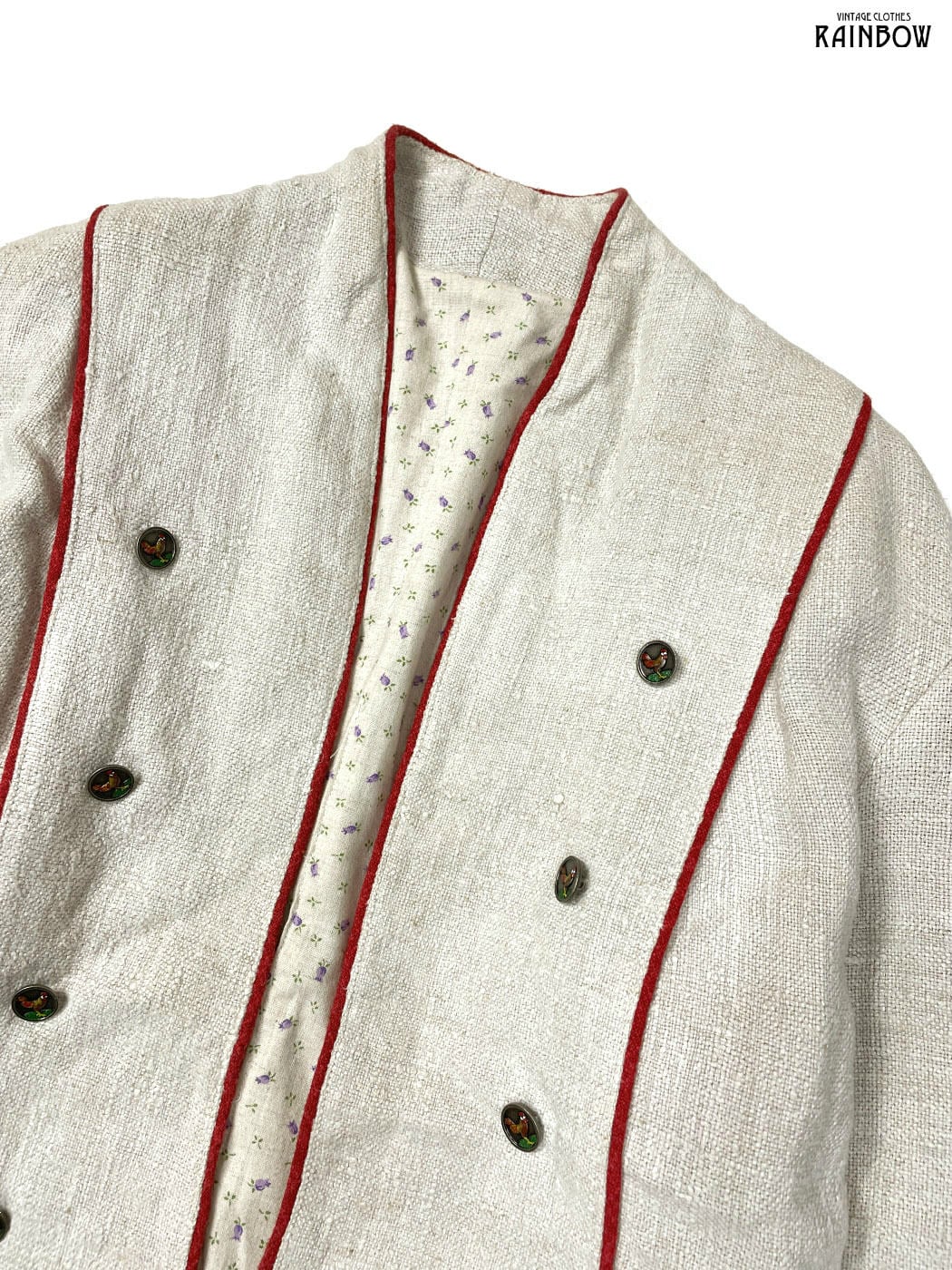 #アウター #羽織り #ロングスリーブ #ベージュ #無地 #ニワトリ #前開き #ナチュラル #ヴィンテージ #リネン #無地羽織り