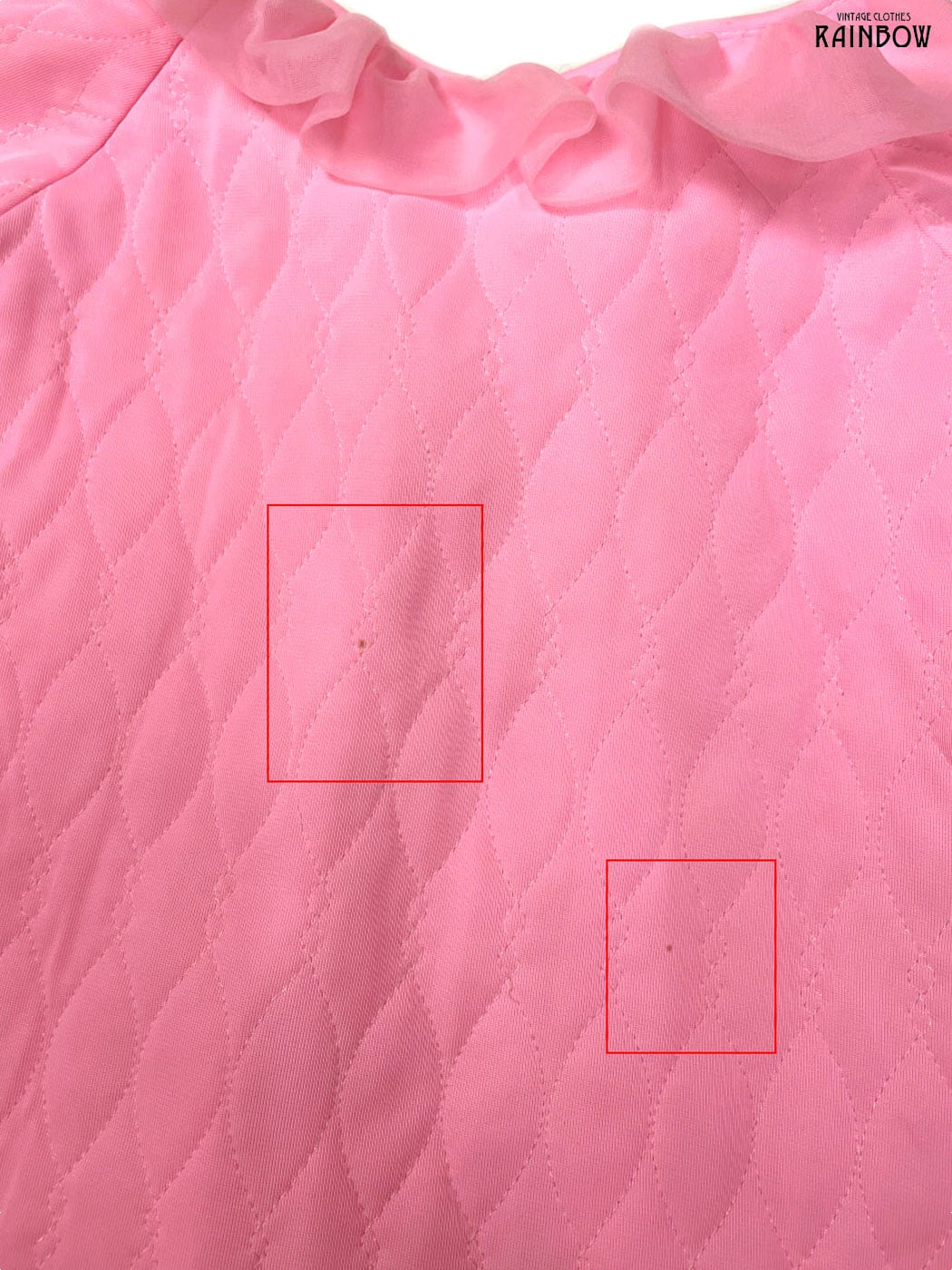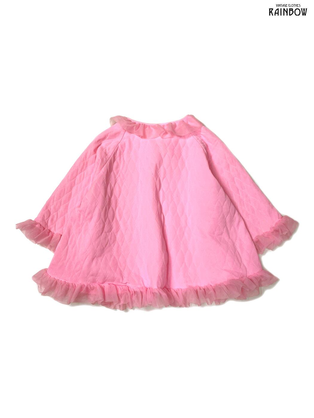 古着 フリル リボン 前開き 無地 キルティング 五分袖 アウター 羽織り 蛍光ピンク (ttu2601083)