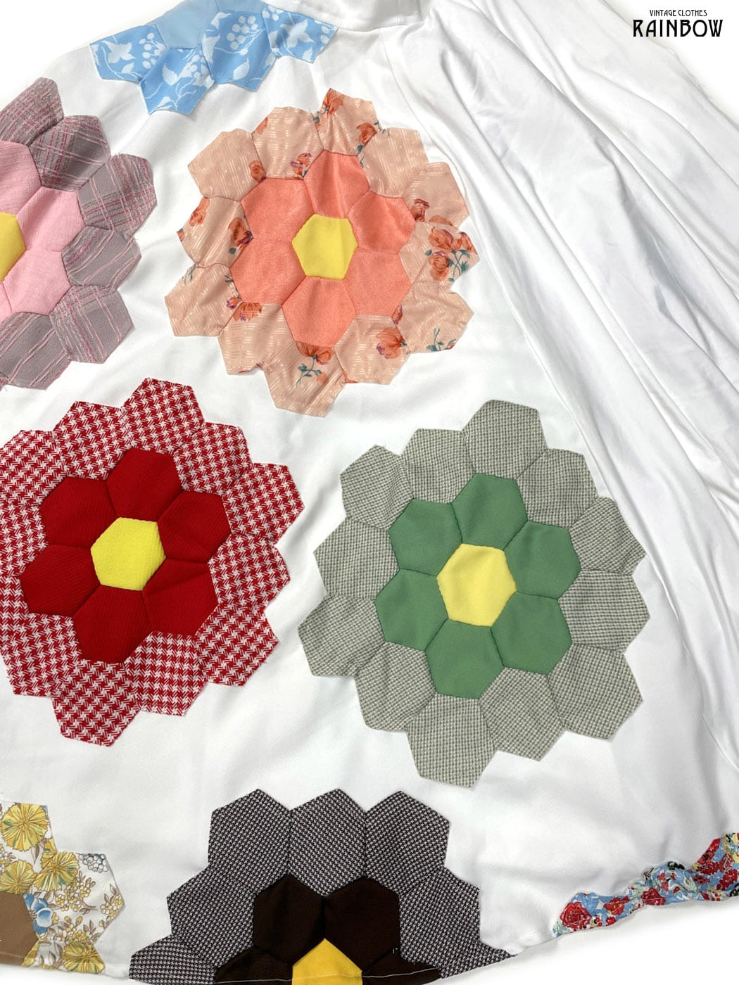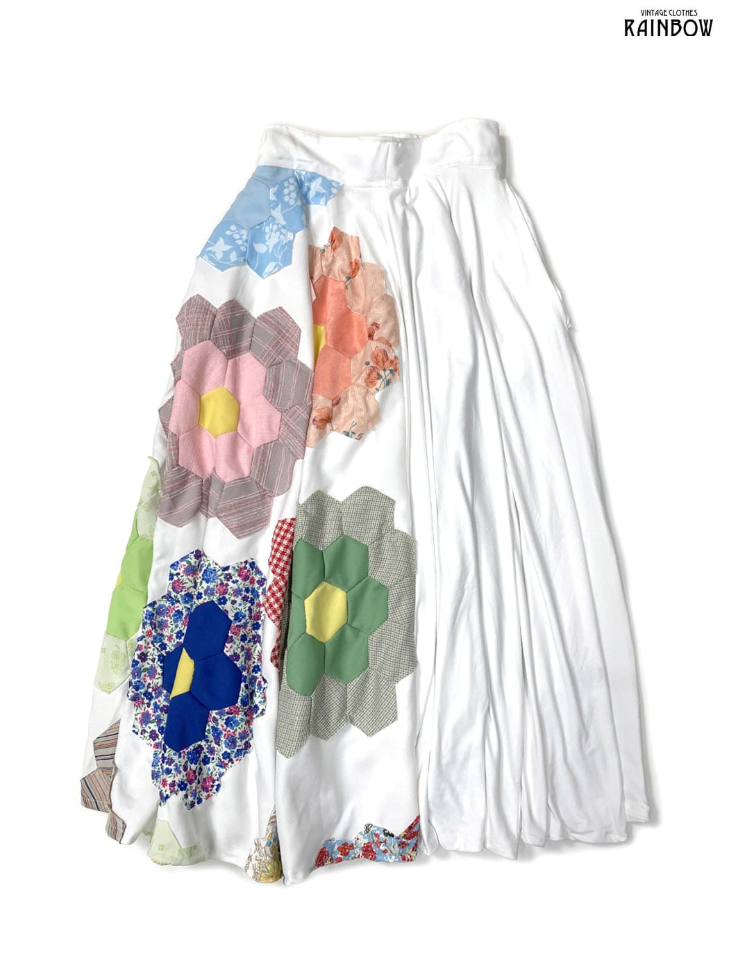 古着 パッチワーク 花柄 ロング丈 スカート 白 (btu2601039)