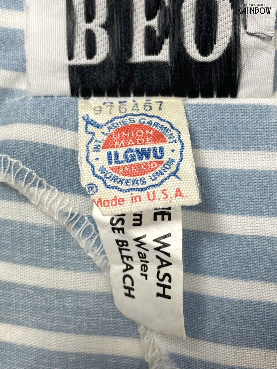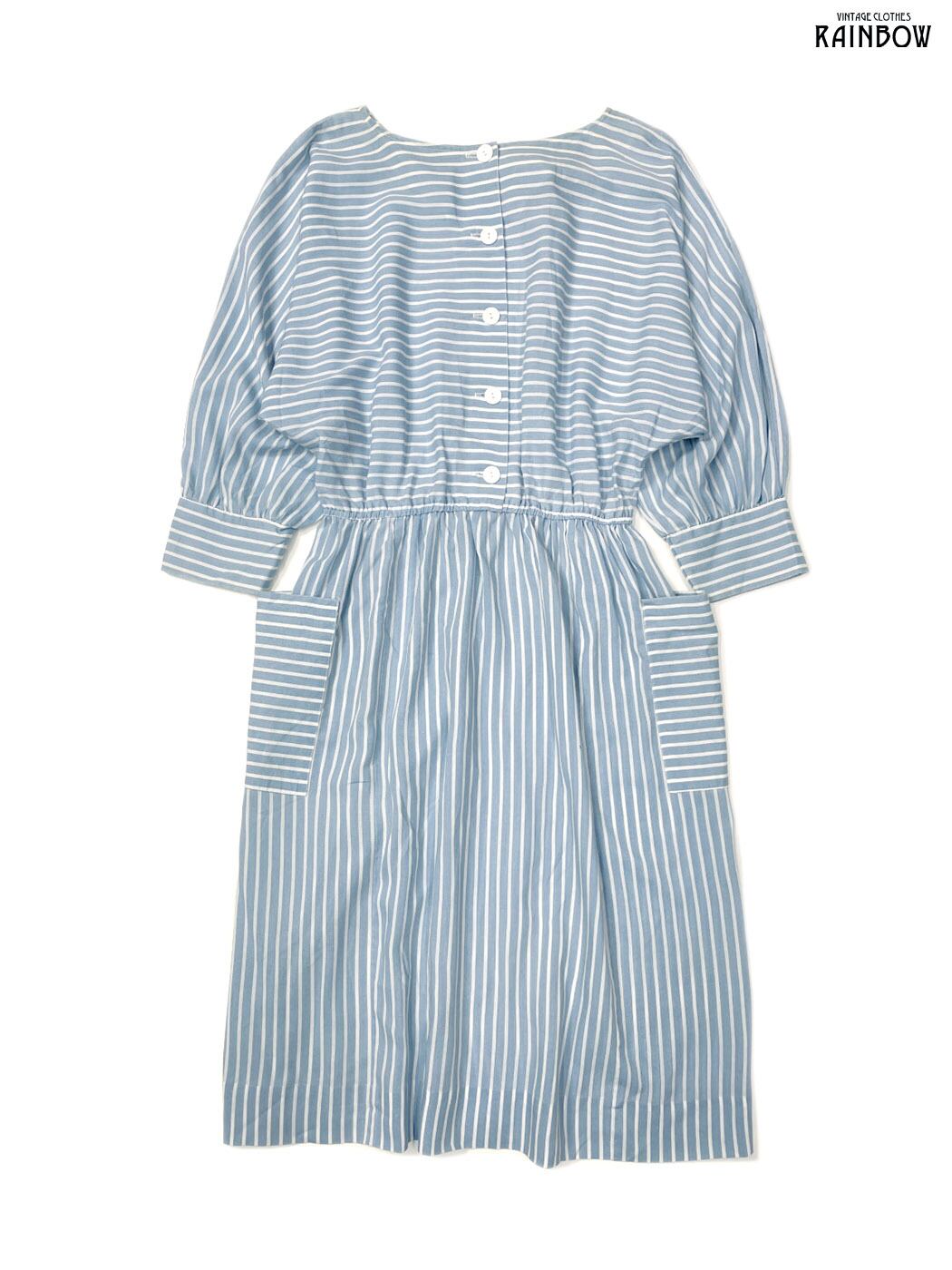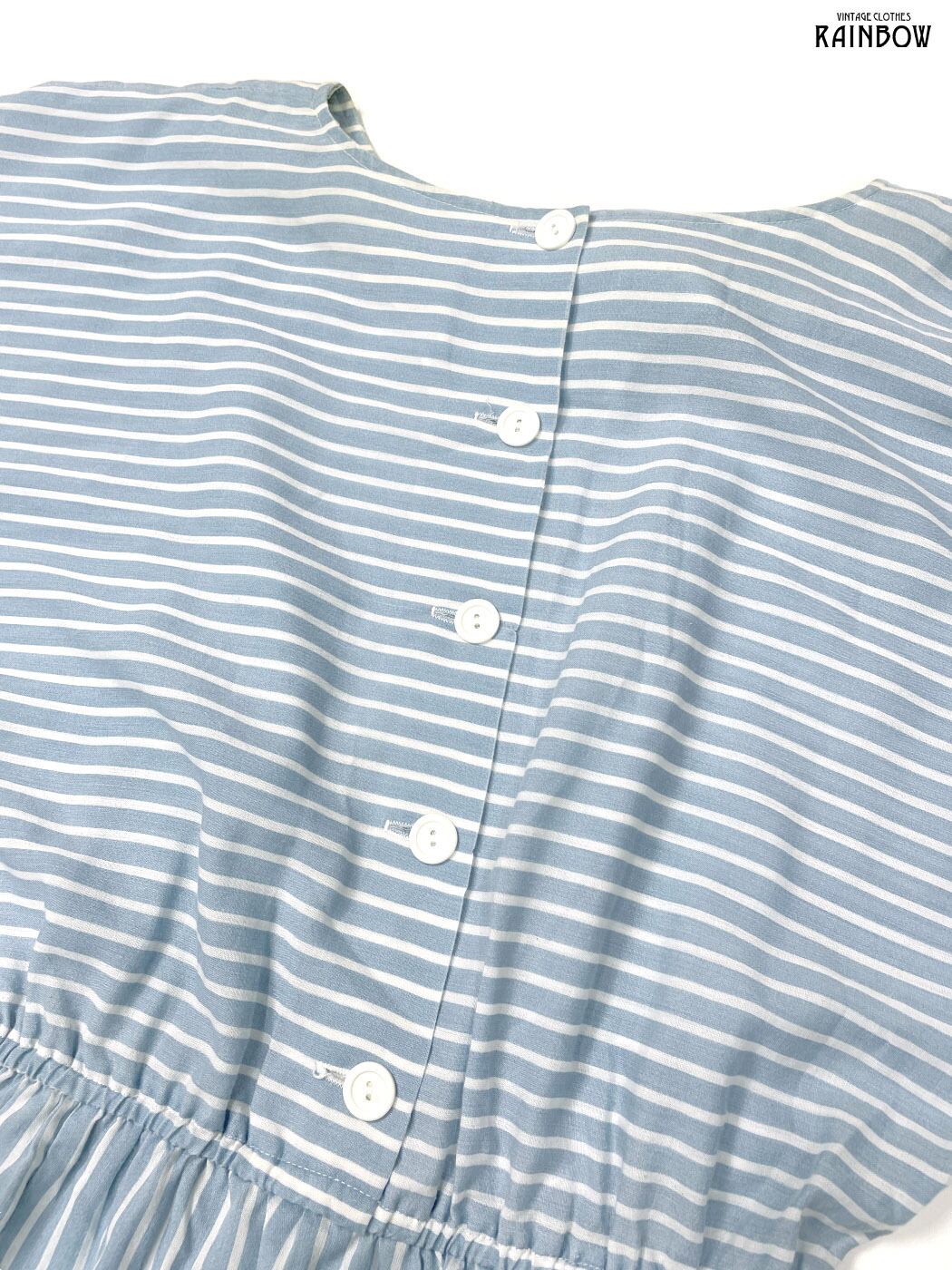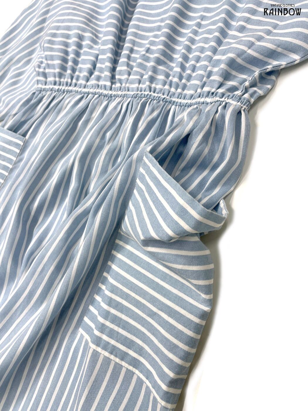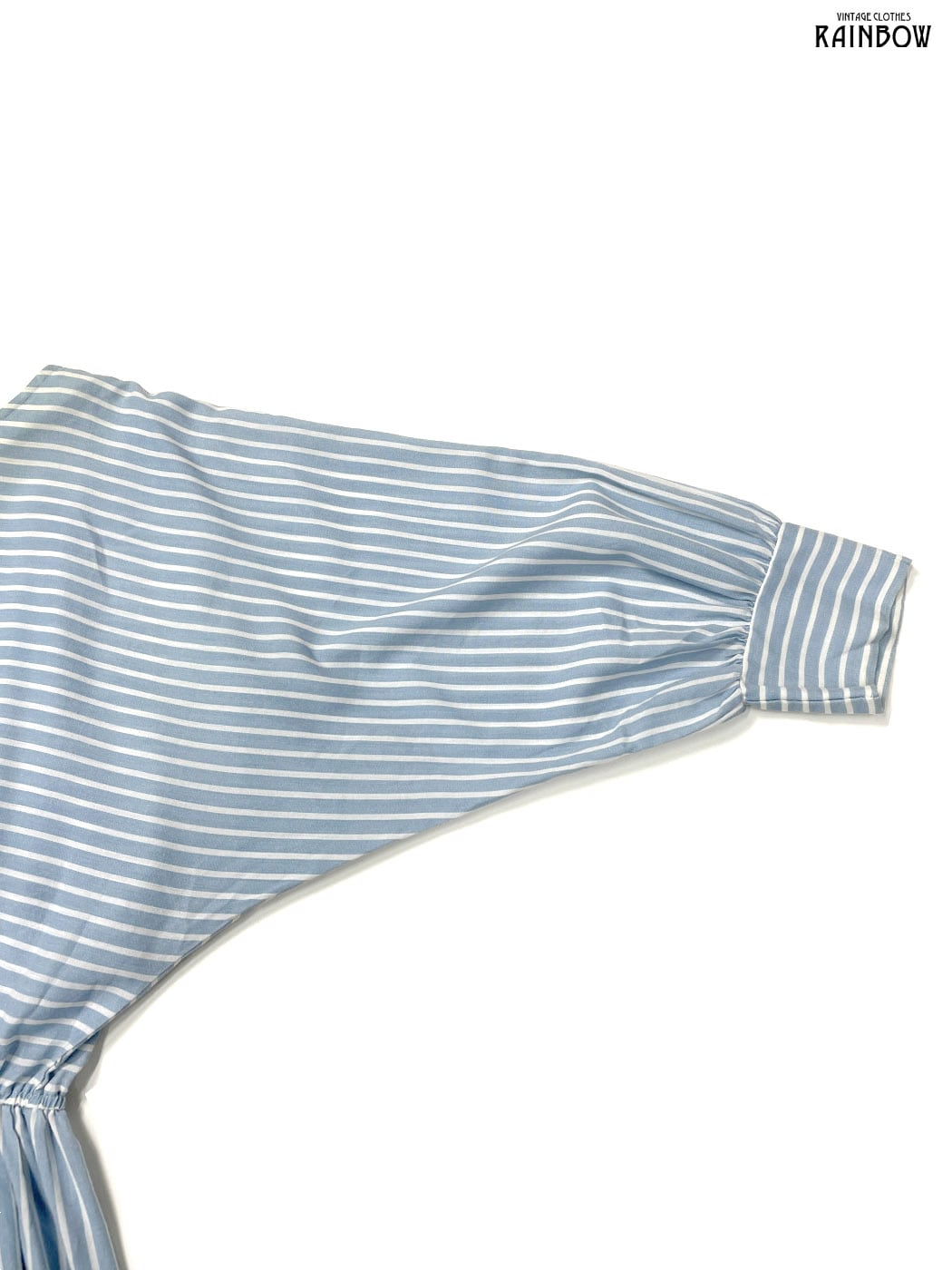 #ワンピース #ロングスリーブ #ロング丈 #ストレート #ゴムウエスト #白 #水色 #ボーダー柄 #アメリカ製 #ユニオンメイド #ガーリー #レーヨン #長袖ボーダー柄ワンピース